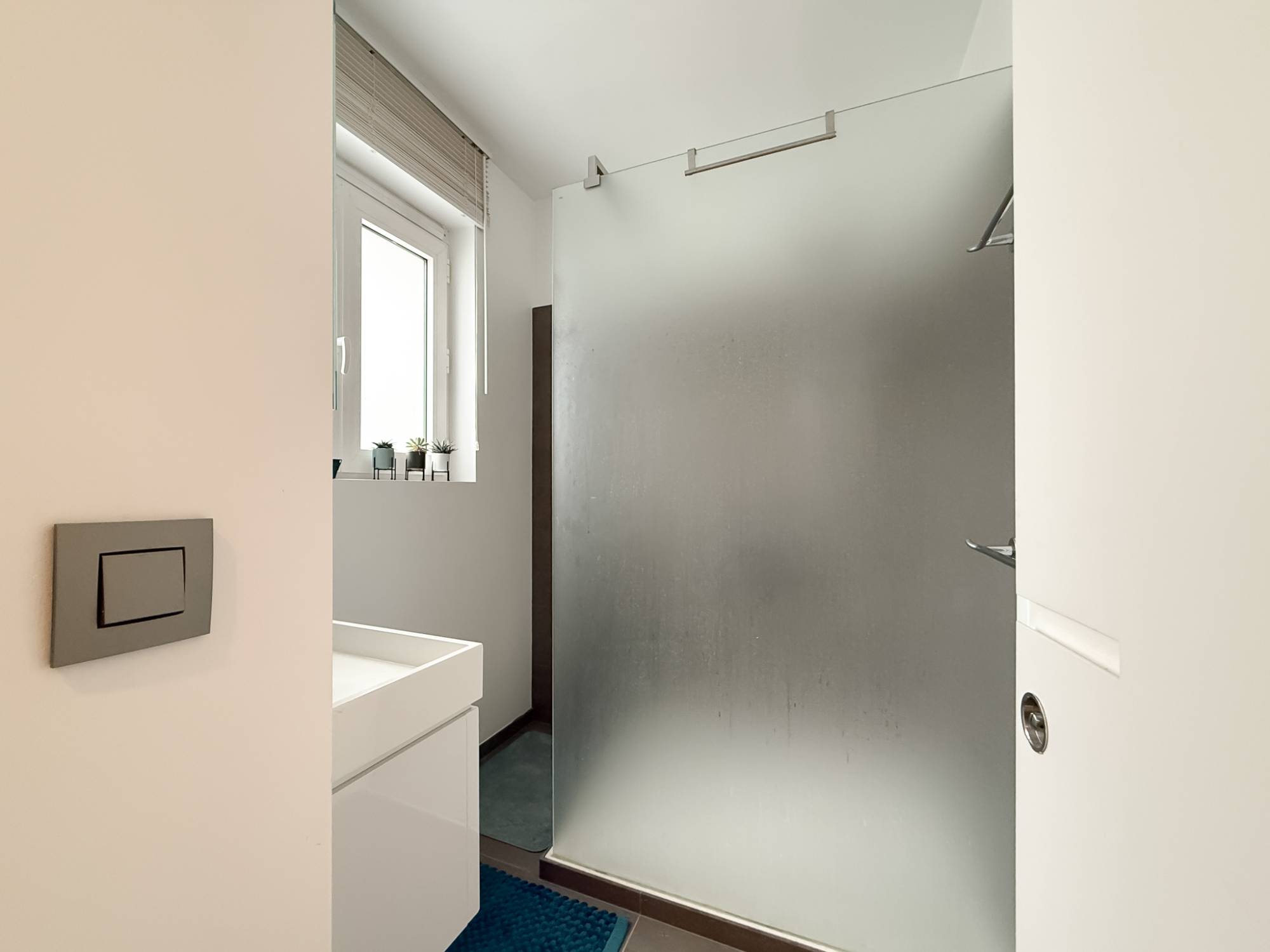 Het appartement omvat een inkomhal met gastentoilet, een lichtrijke leefruimte met open keuken en een aangenaam uitzicht richting zee. De ruime slaapkamer geeft uit op een rustig terras aan de achterzijde, perfect voor een moment van ontspanning. Verder beschikt het appartement over een moderne douchekamer en een privatieve kelderberging.