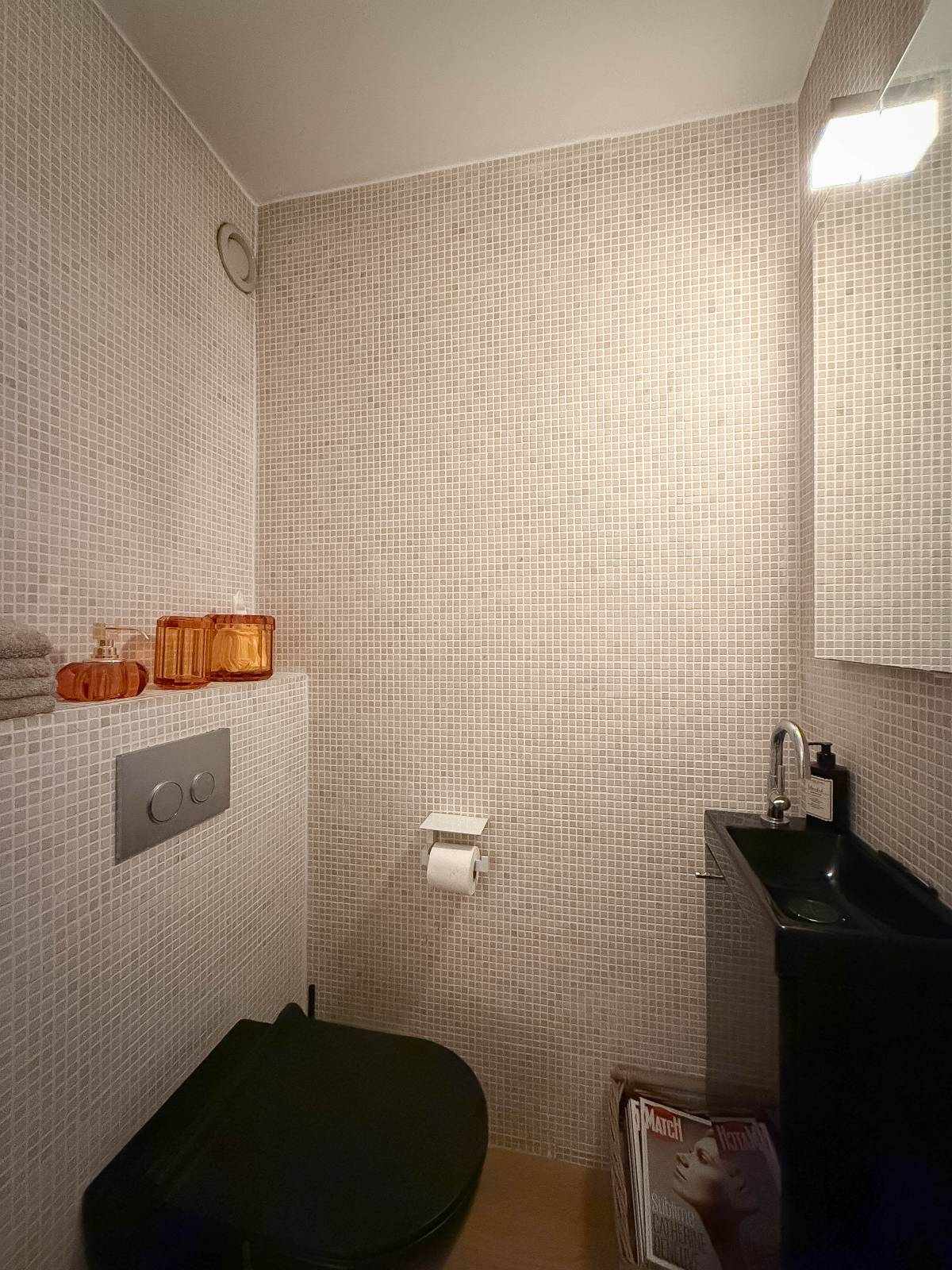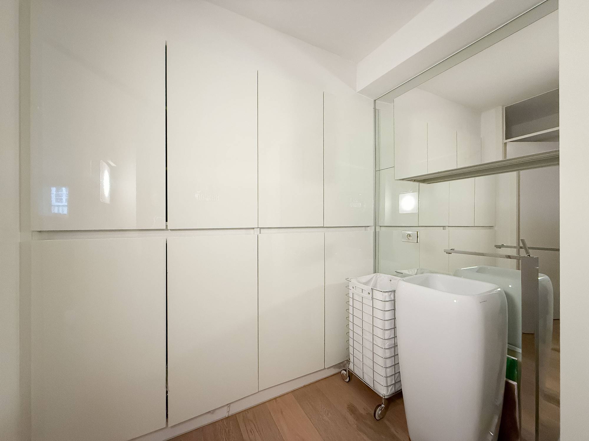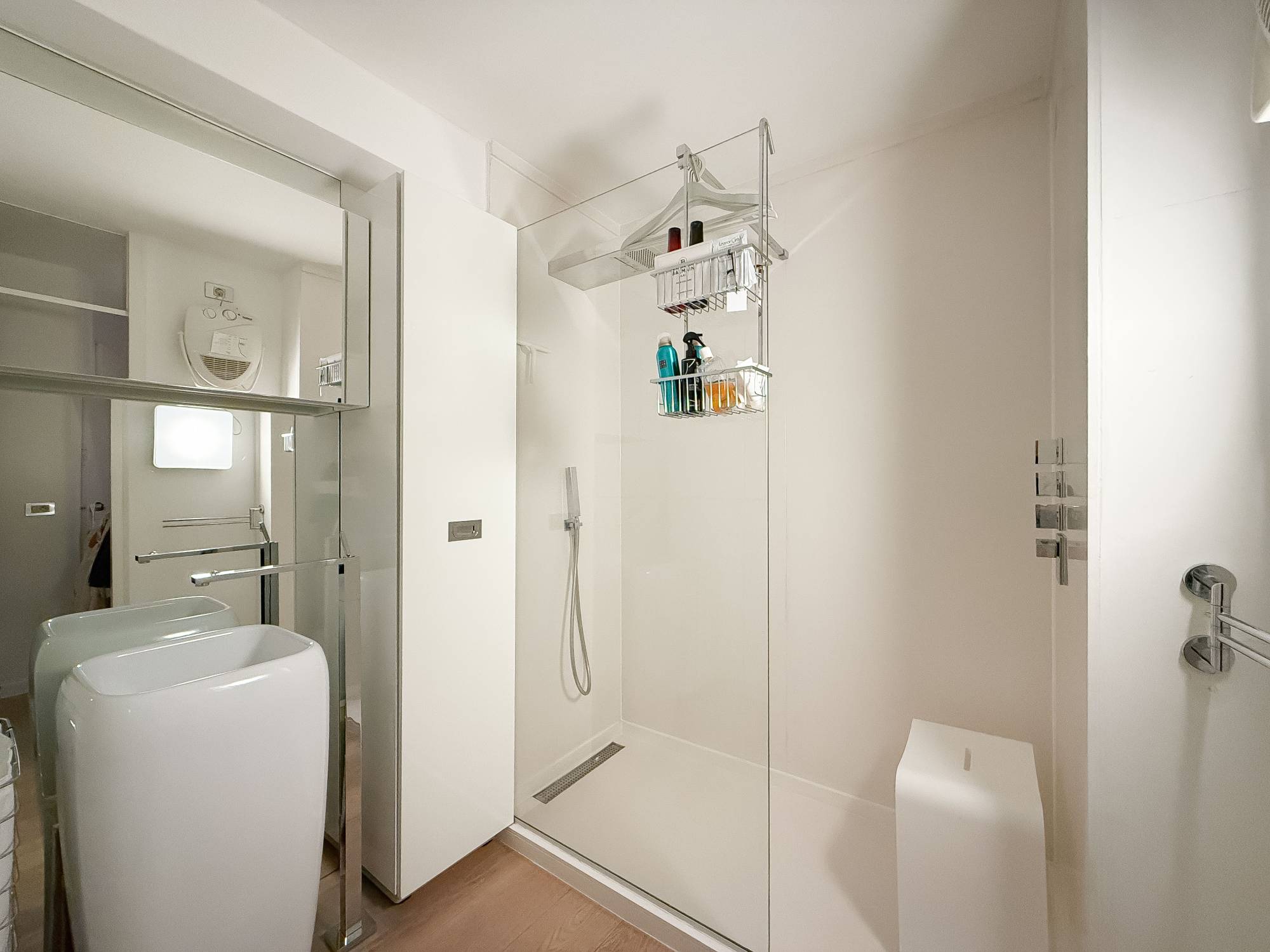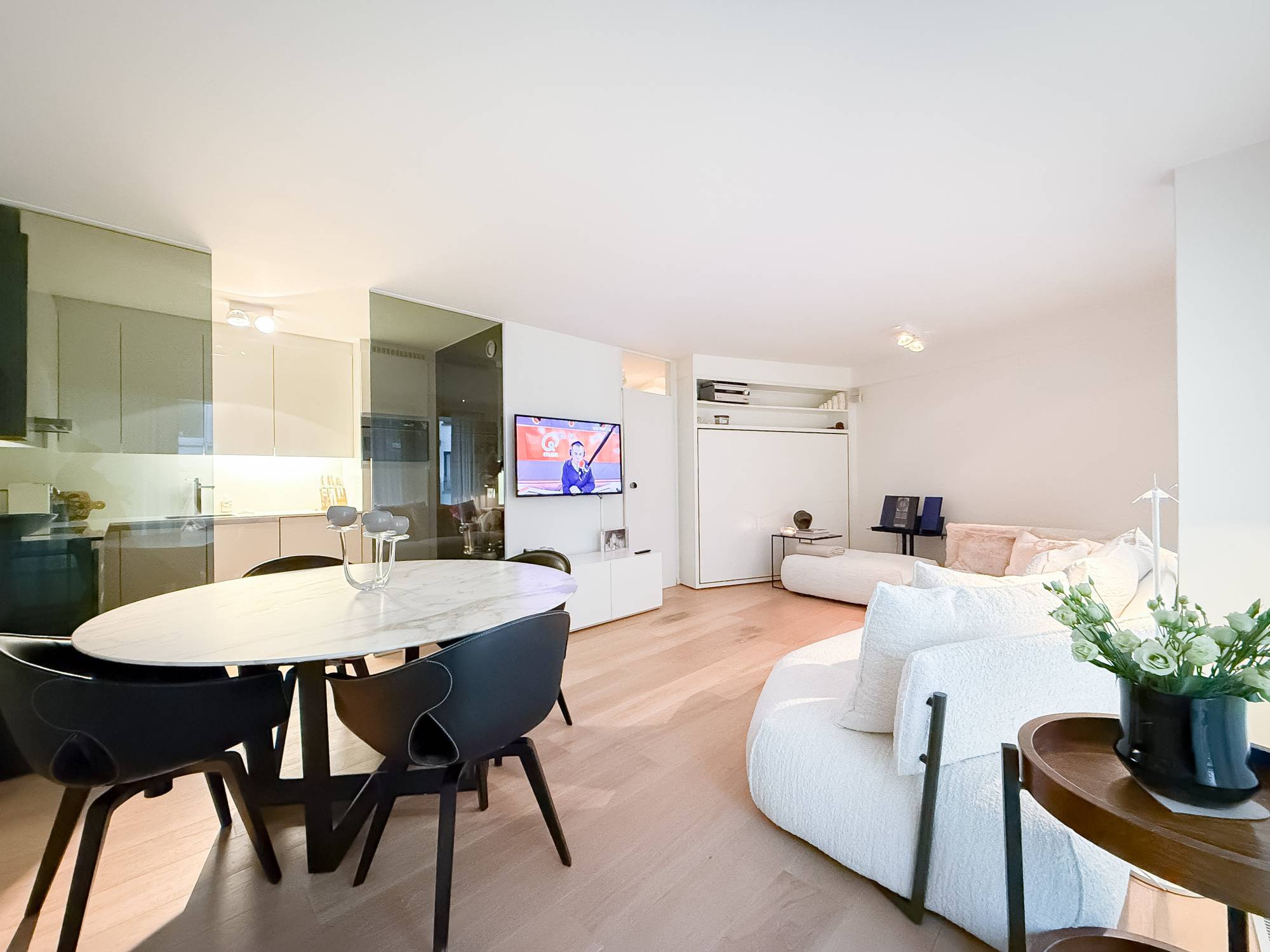 De eethoek is verbonden met de keuken die is uitgerust met alle moderne huishoudtoestellen. Aan de achterzijde van het appartement bevindt zich een volwaardige slaapkamer met ingemaakte kasten. Aansluitend vindt u een ruime douchekamer, compleet met een inloopdouche en een lavabomeubel.
