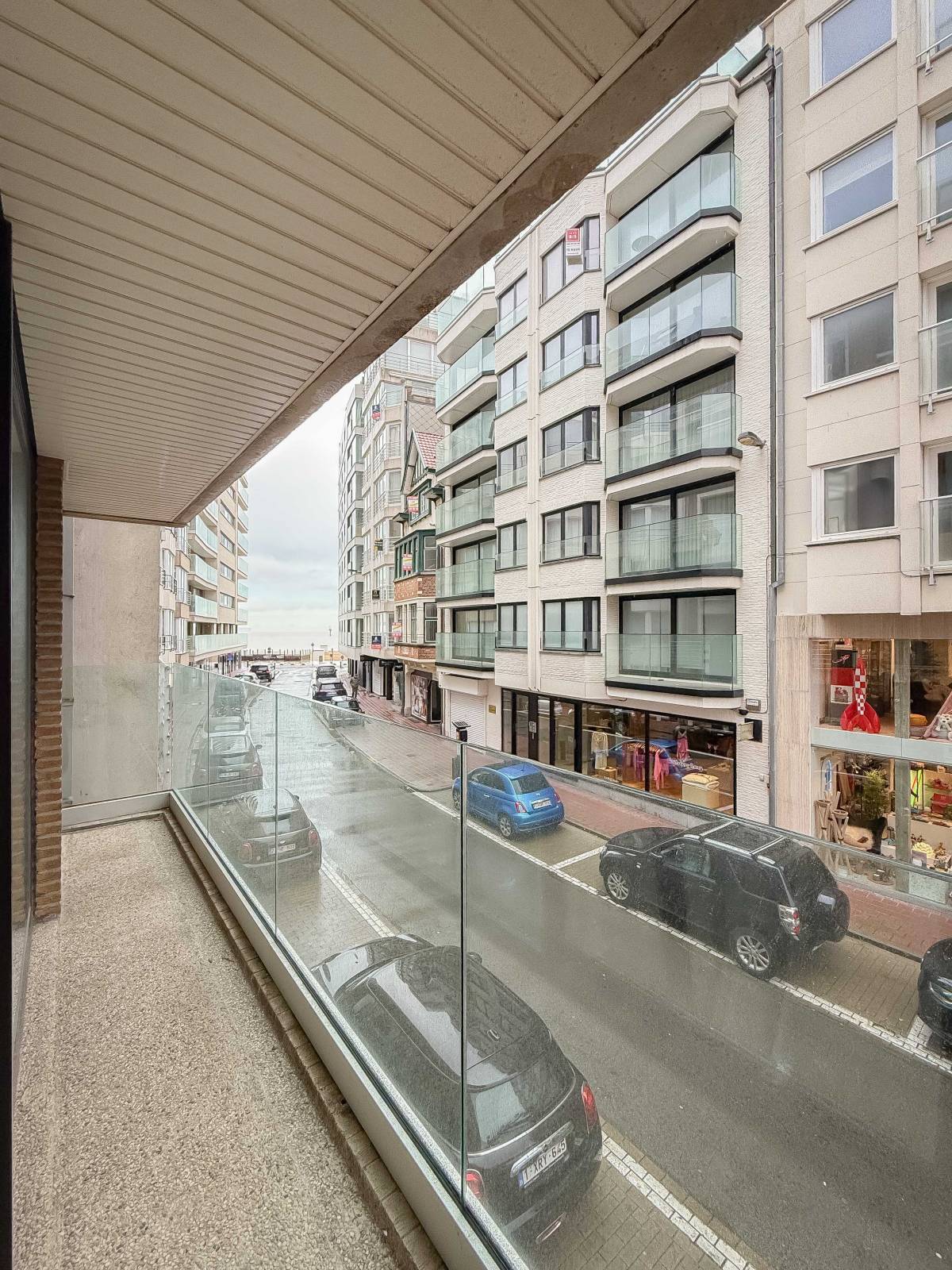 Indeling: inkomhal met vestiaire en gastentoilet. De lichte woonkamer, met een mooie gevelbreedte, biedt toegang tot een terras dat zich over de volledige lengte van het appartement uitstrekt. Hier kunt u genieten van een prachtig zijwaarts zeezicht en uitzicht op de winkels van de Kustlaan.