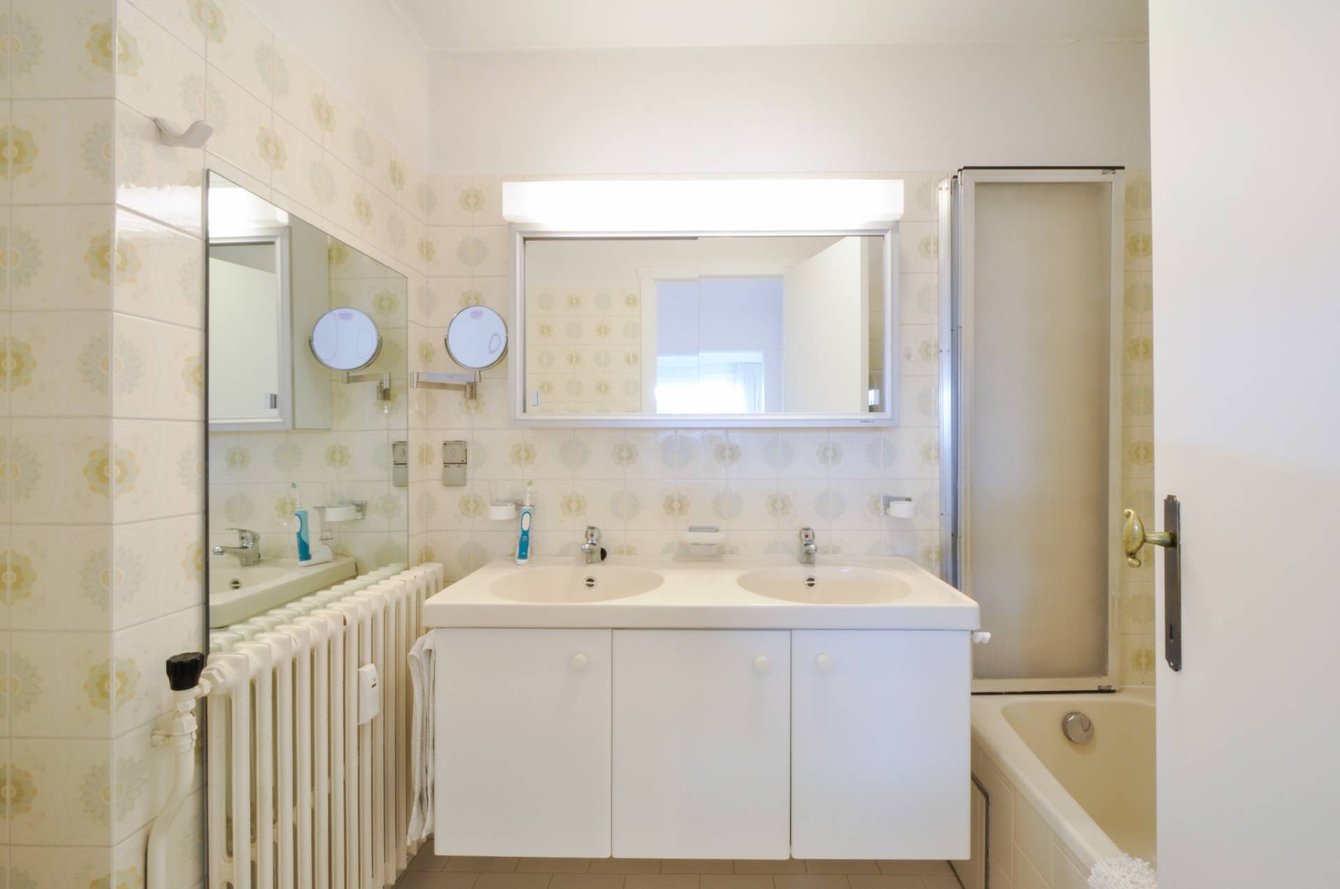 Er is 1 volwaardige slaapkamer met tal van ingemaakte kasten en bijhorende badkamer met ligbad, dubbele lavabo en toilet.