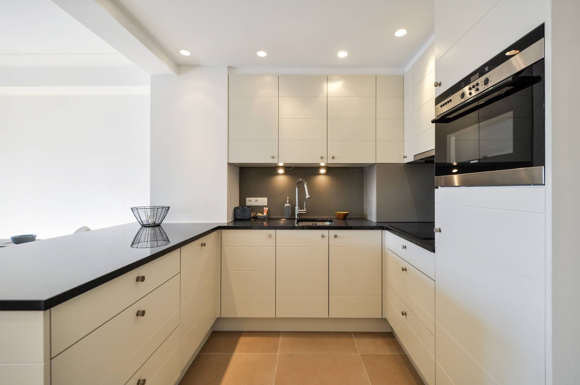 Samenstelling: Inkomhall met gastentoilet en vestiaire. Aangename woonkamer, Zuidgericht, en genietend van een mooi zicht op het groen en de omliggende villaresidenties. Open, ingerichte keuken.