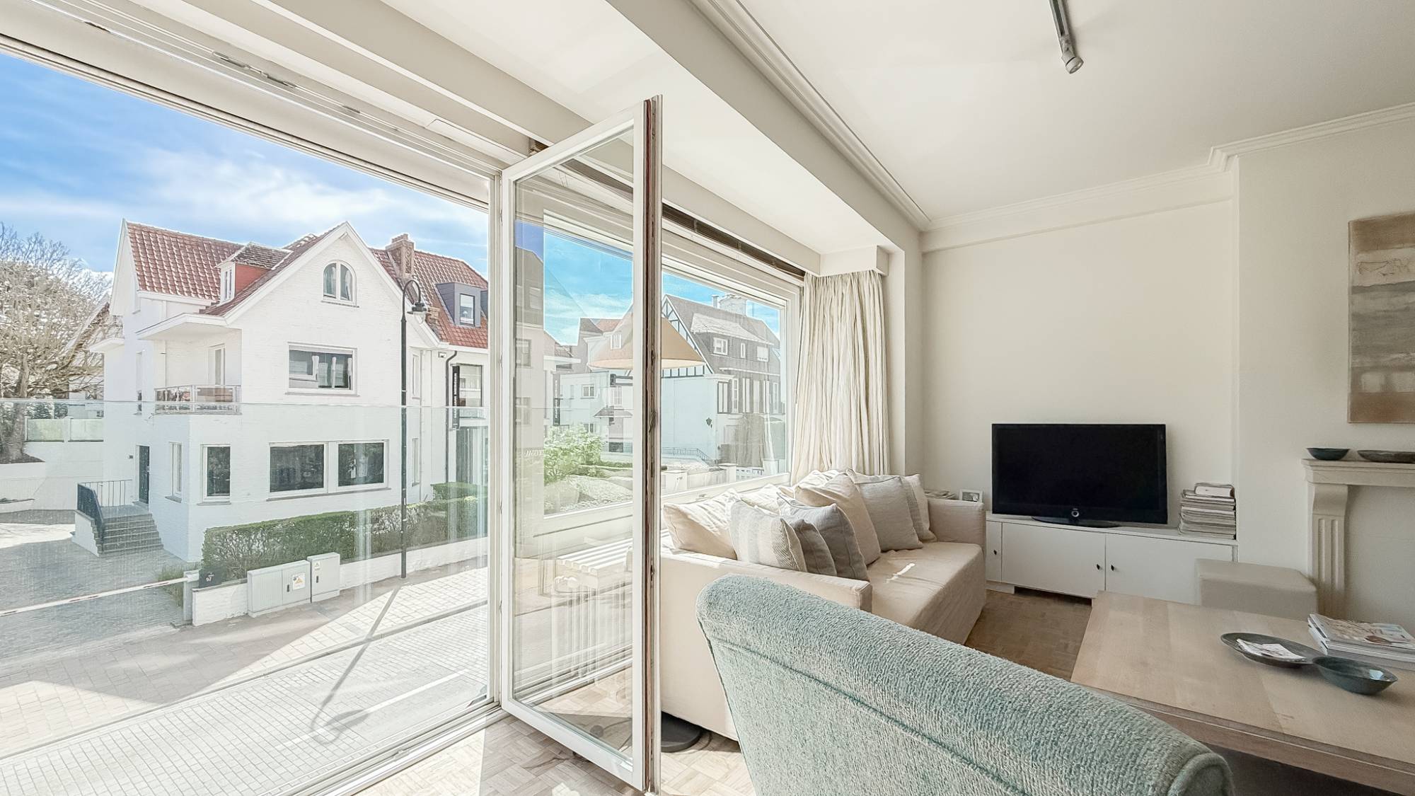 Op een uitzonderlijke ligging in het Zoute, langs de Kustlaan en op slechts enkele passen van het strand en het bekende Albertplein, bevindt zich dit lichtrijke en instapklare appartement in een rustige residentie.