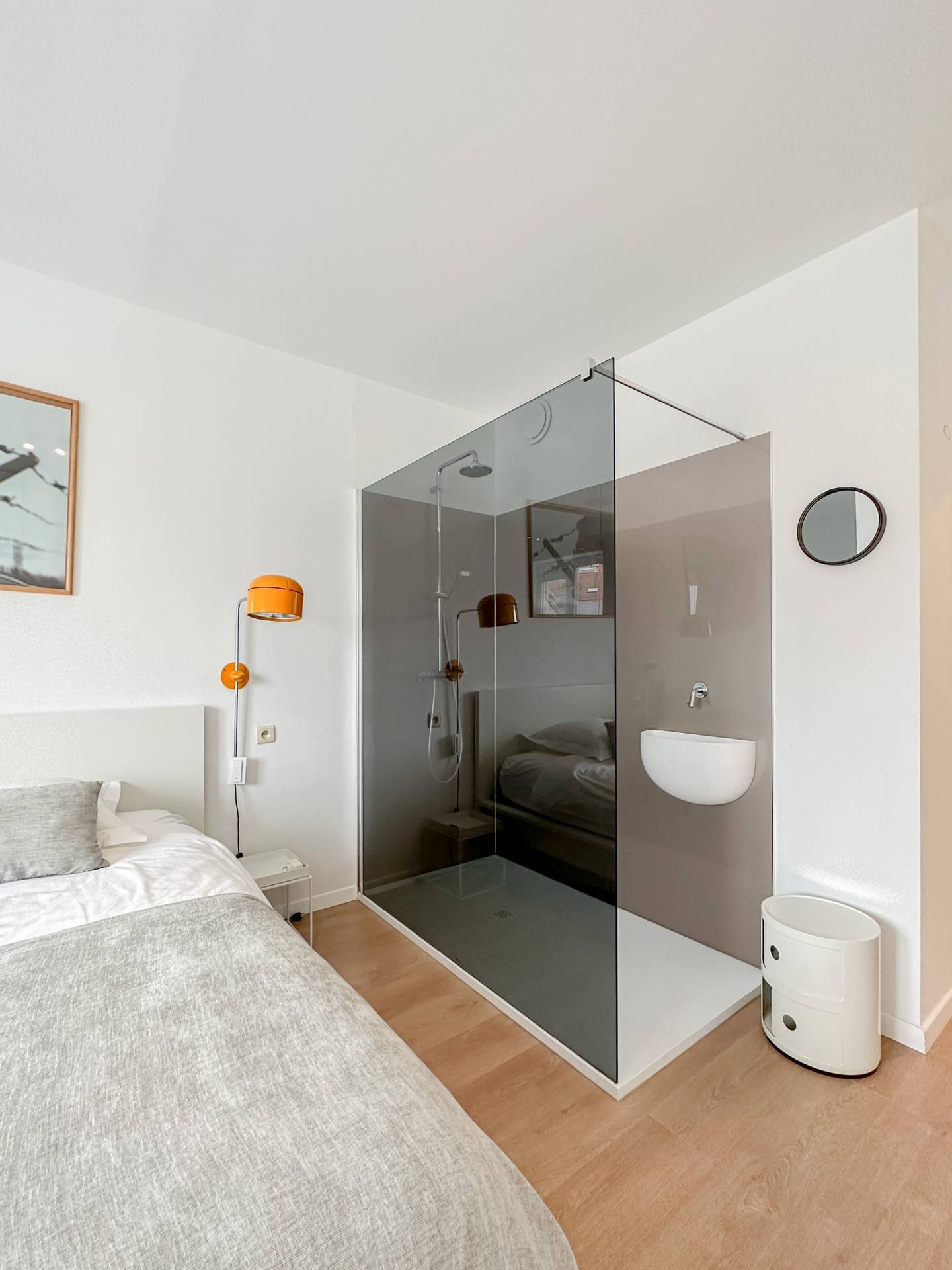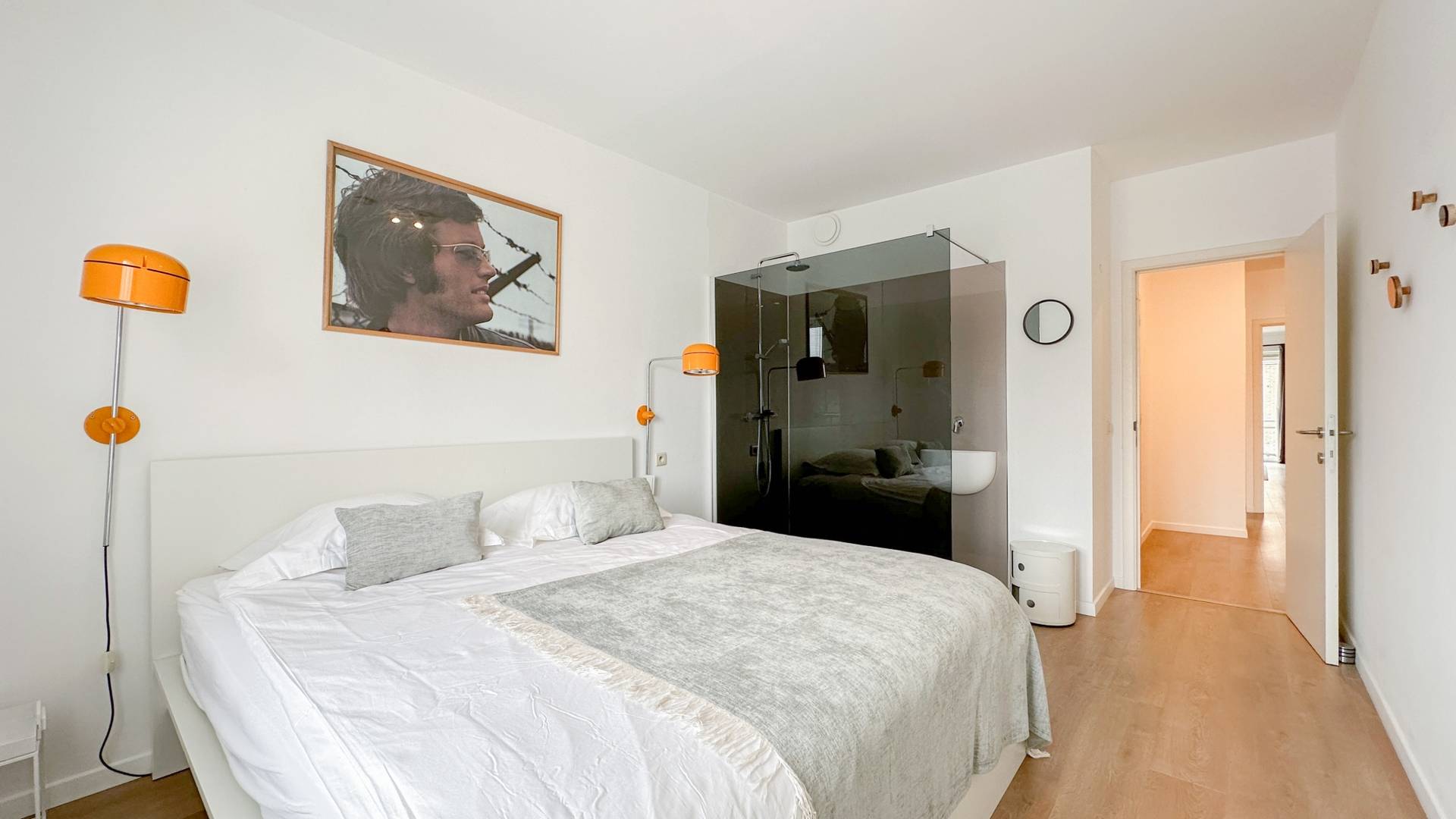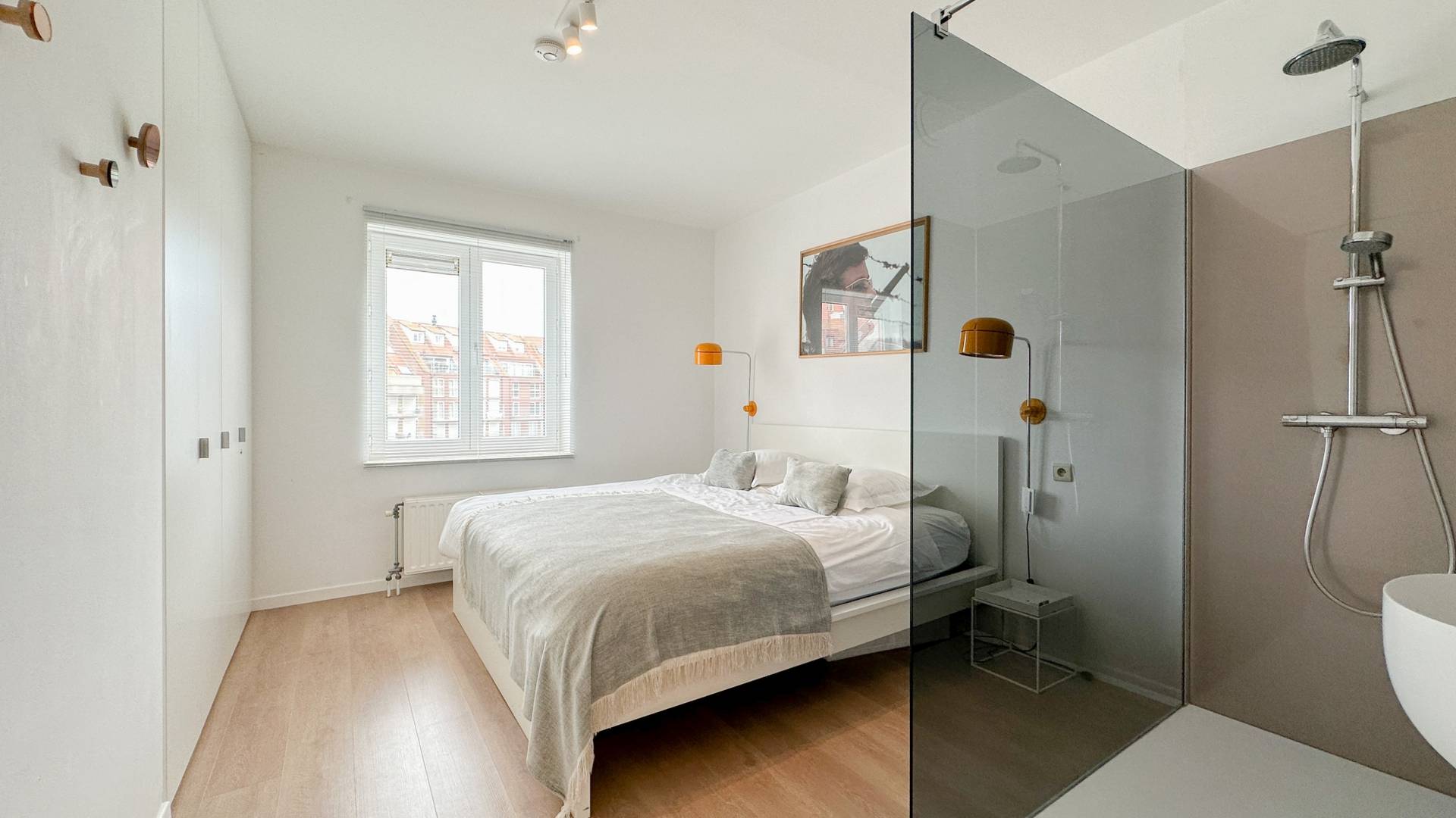 Er zijn 2 volwaardige slaapkamers. De hoofdslaapkamer beschikt over een inloopdouche, lavabo en ingemaakte kasten. Er is een badkamer met inloopdouche, dubbele lavabo en toilet.