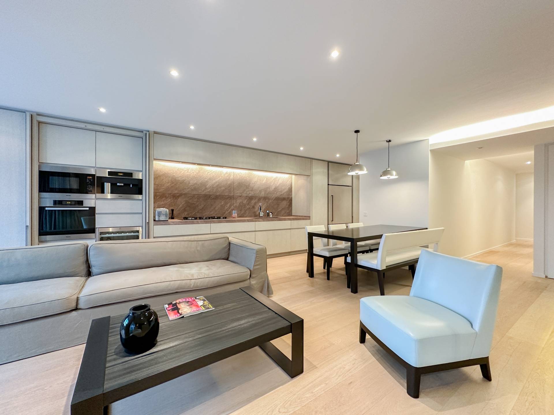 Het appartement bevindt zich in perfecte staat van onderhoud, en werd afgewerkt met mooie, hedendaagse topmaterialen (Obumex).