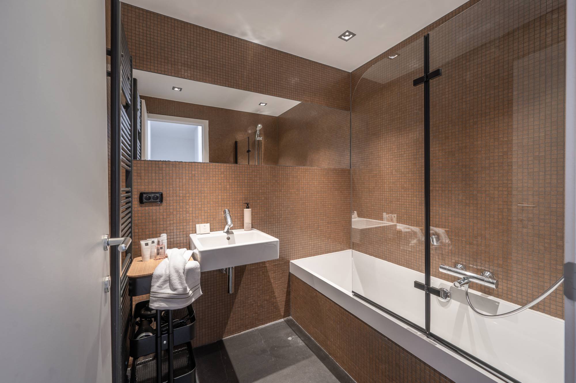Het appartement beschikt ook over een privatieve kelder en een ruime fietsenberging op het gelijkvloers.