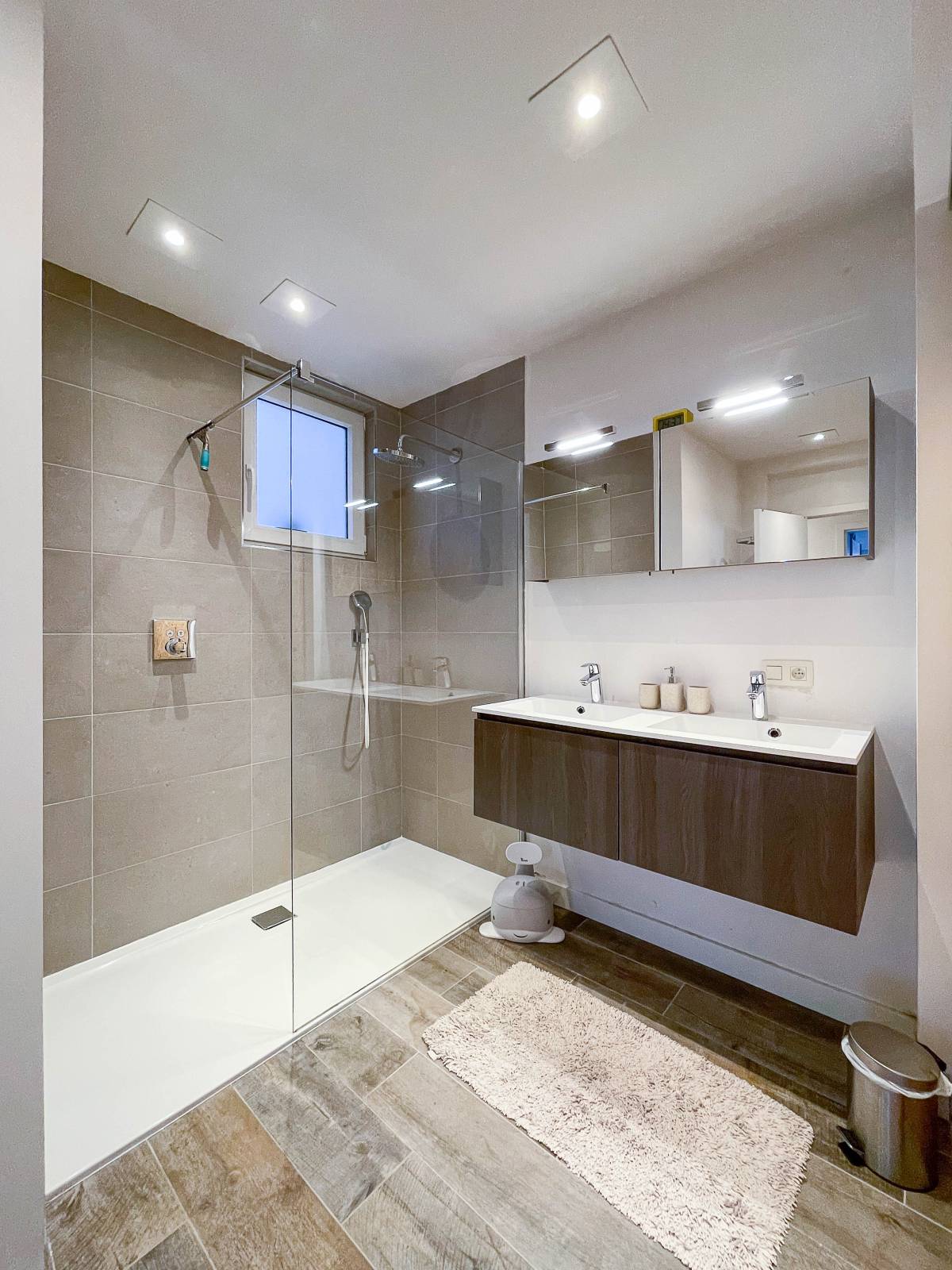 Het appartement beschikt over 2 volwaardige slaapkamers en een moderne douchekamer met een ruime inloopdouche en dubbele lavabo. Verder is er een grote berging met aansluiting voor wasmachine en droogkast – ideaal voor extra comfort en opbergruimte.