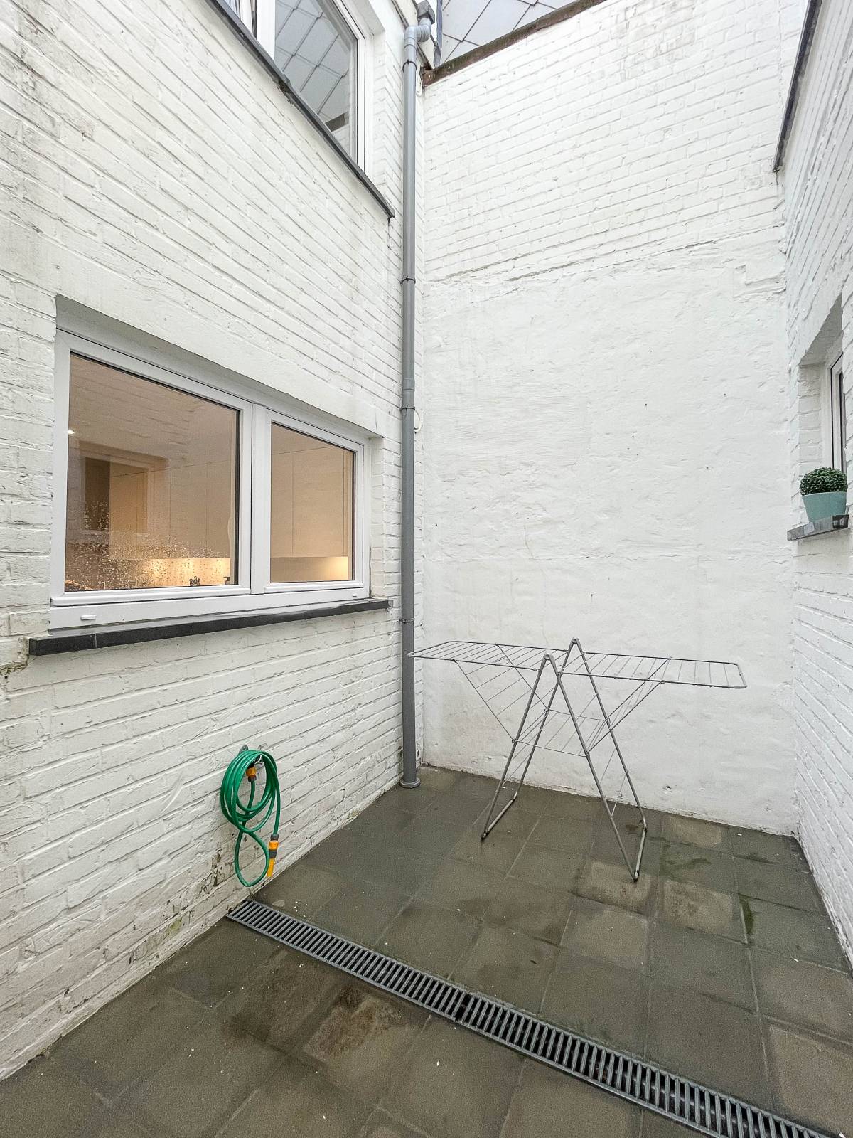 Tussen de keuken en de badkamer bevindt zich een gezellige binnentuin/terras, perfect om even te ontspannen in alle privacy.