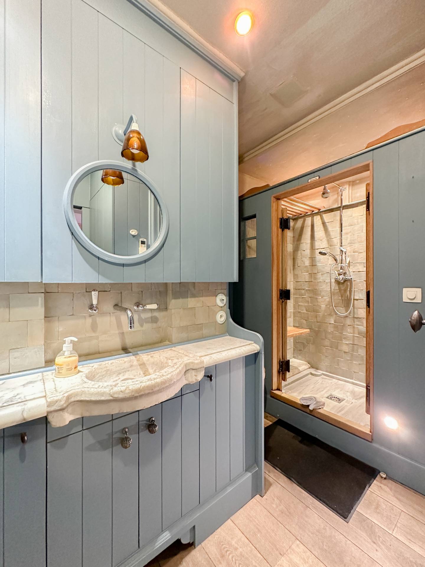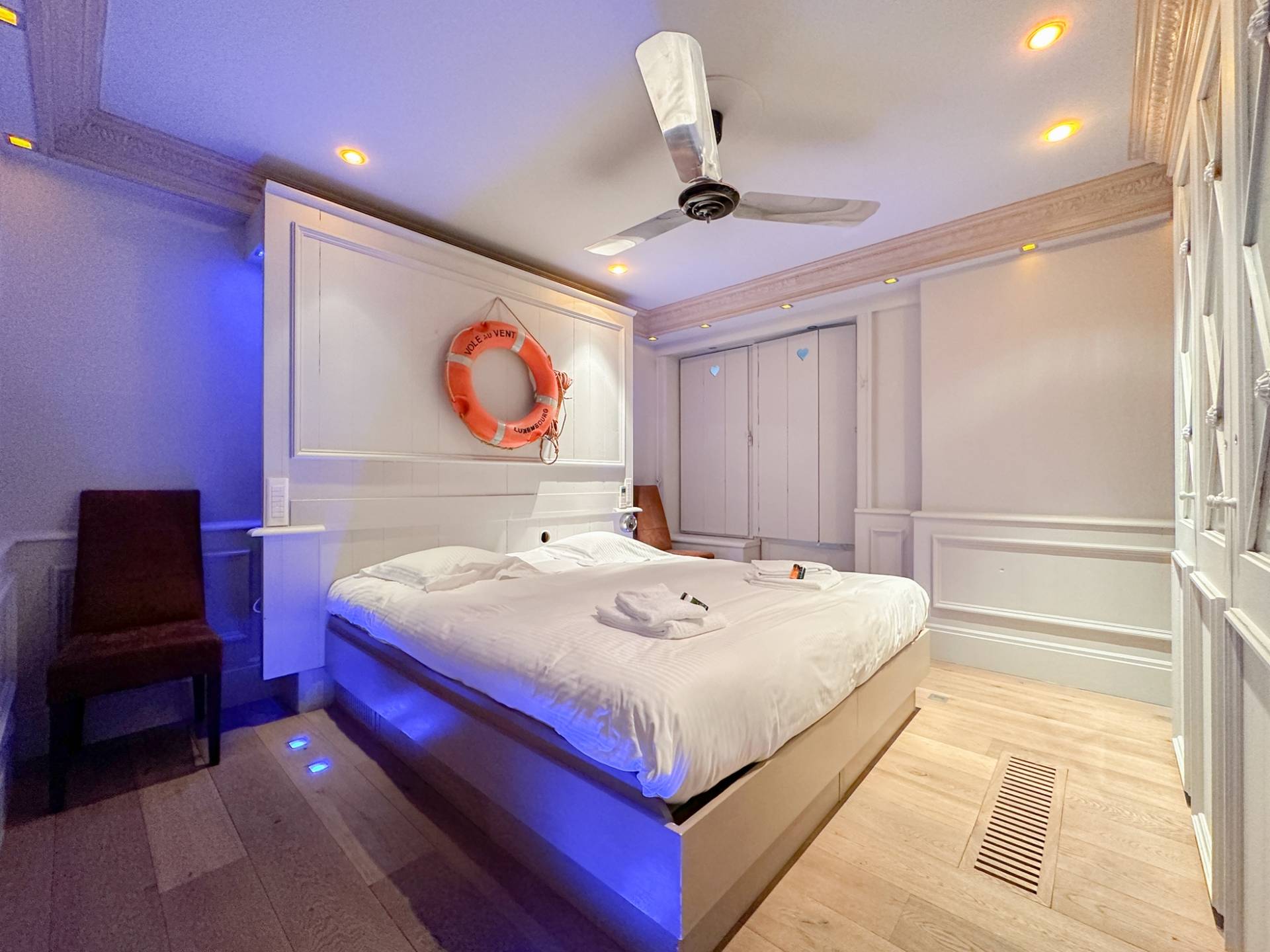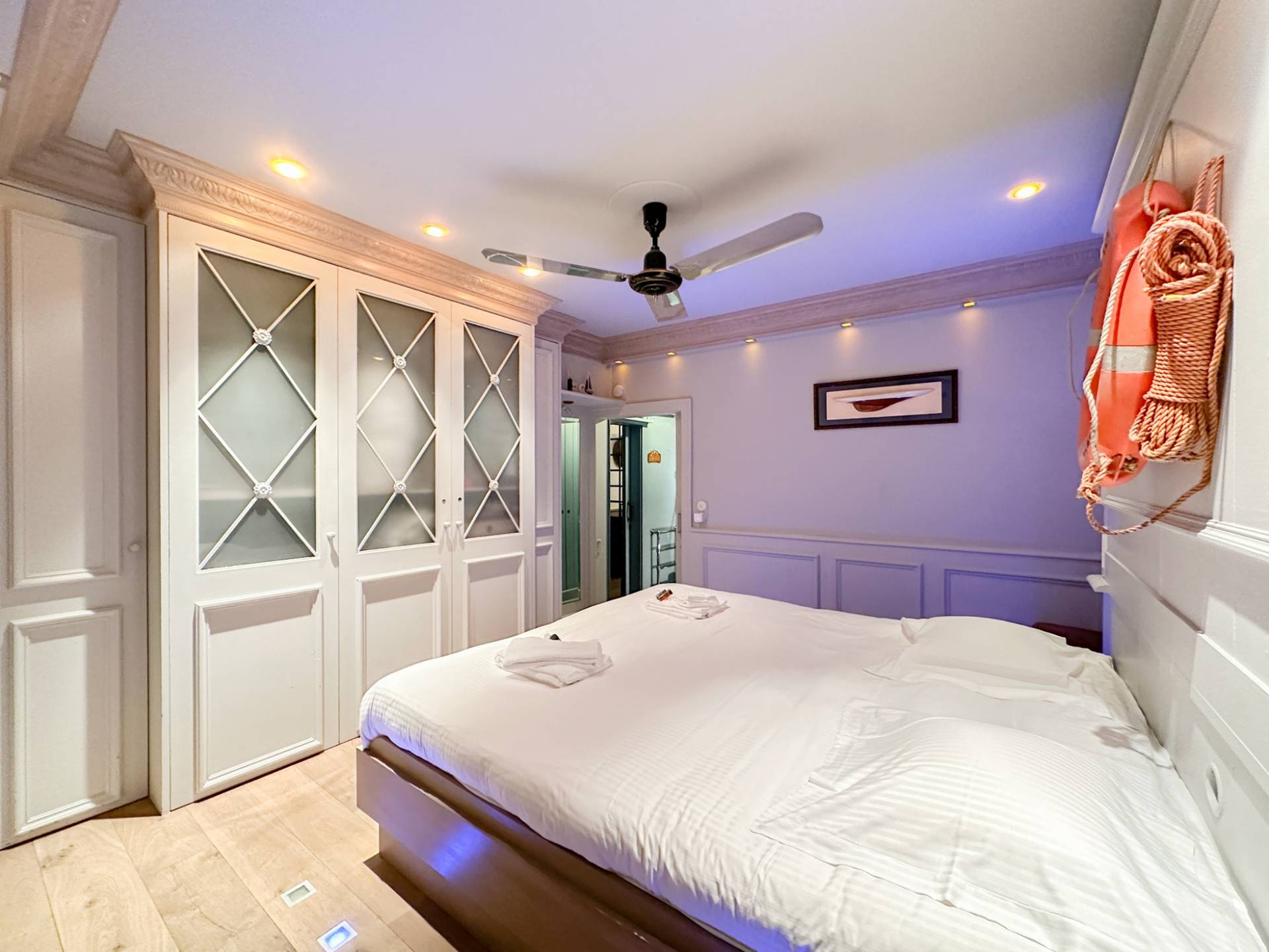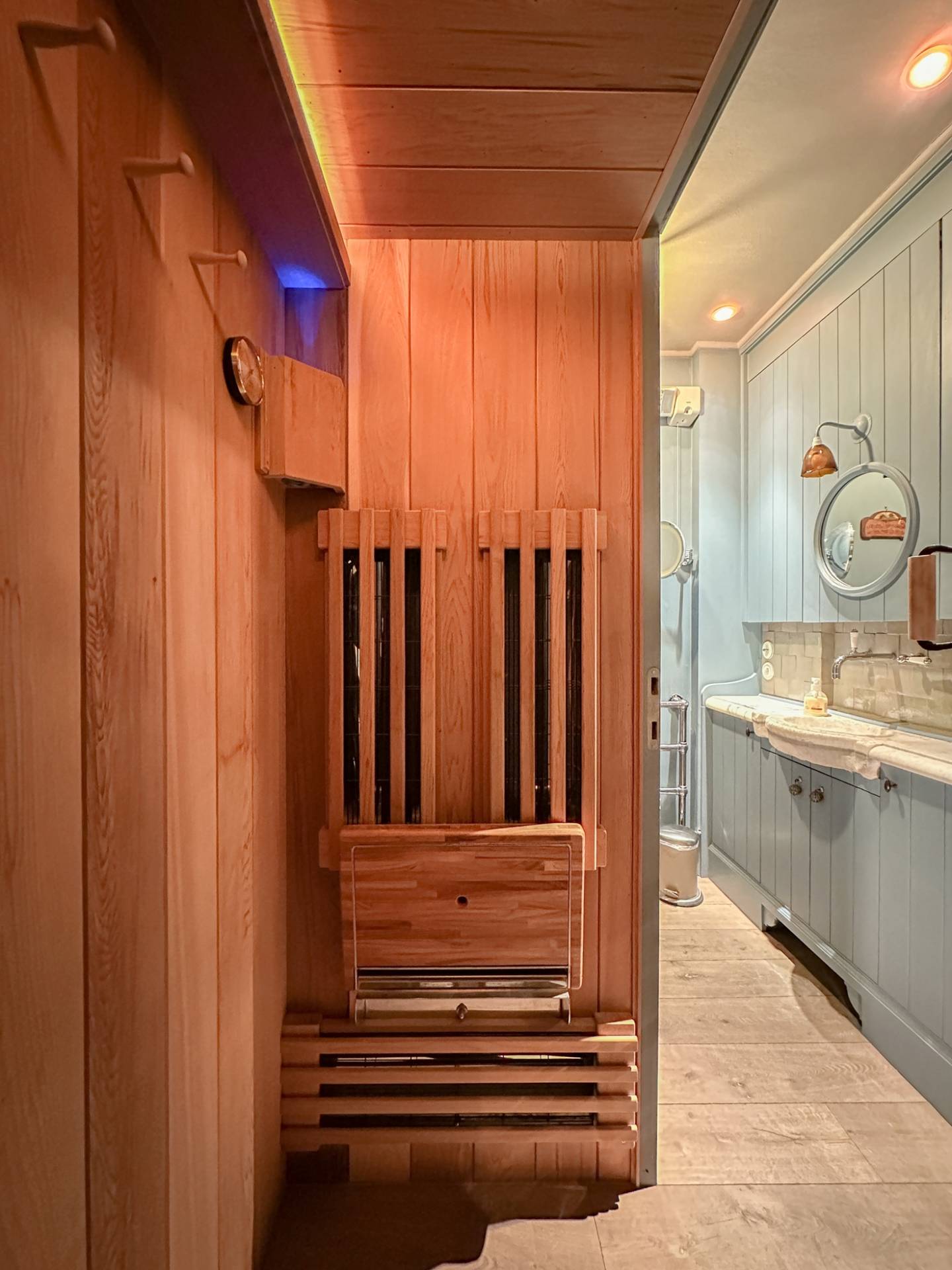De hoofdslaapkamer beschikt over een badkamer met lavabomeubel, douche, sauna en een toilet. 2e, ruime slaapkamer. Beide kamers werden voorzien van ingemaakte kasten. Berging.