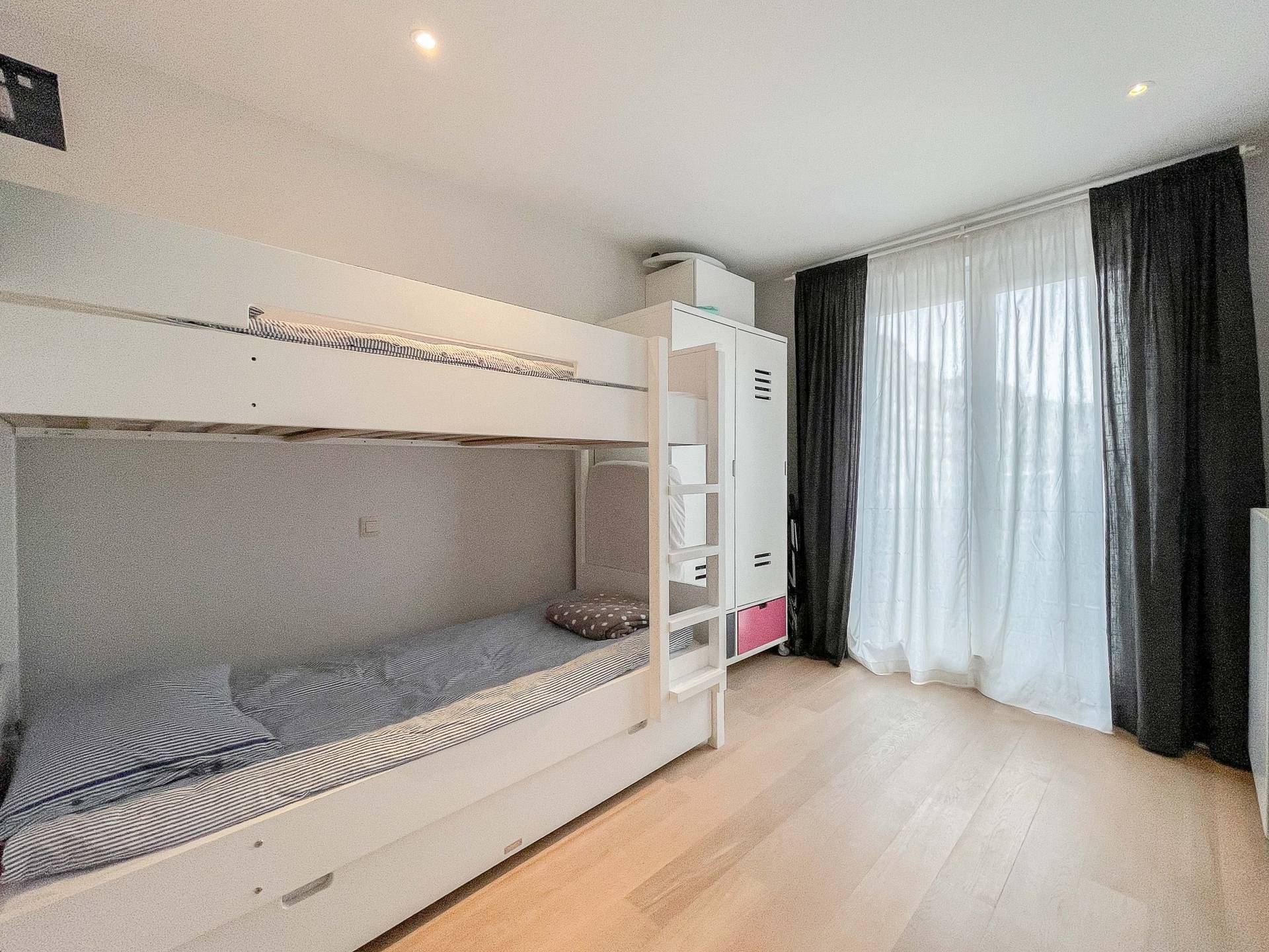 Achteraan bevinden er zich 2 volwaardige slaapkamers, die beiden uitgeven op een eigen balkon. Er is 1 luxueus ingerichte badkamer, voorzien van ligbad, douche, dubbele lavabo en toilet.