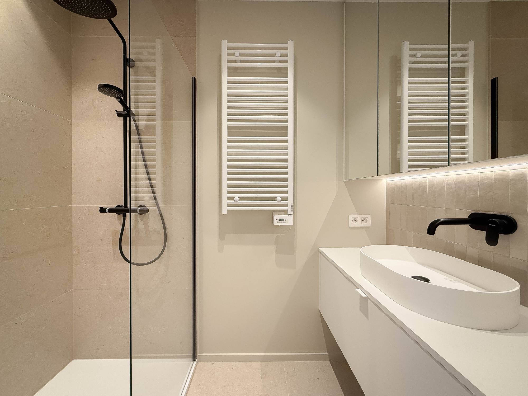 De 2 slaapkamers zijn eveneens uitgerust met ingebouwde kasten en ademen rust en stijl uit. De zorgvuldig gekozen materialen en harmonieuze inrichting creëren een tijdloze, exclusieve sfeer waarin het heerlijk thuiskomen is. 1 Afzonderlijke, luxueus ingericht badkamer. Beide kamers geven uit op een terras aan de achterzijde.