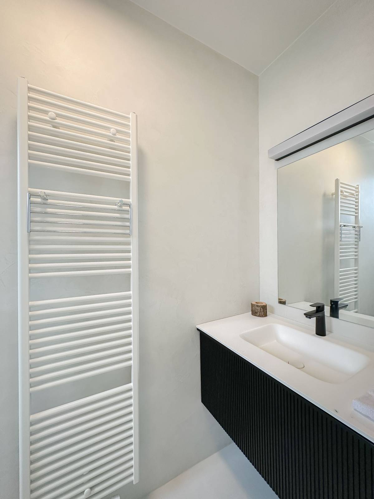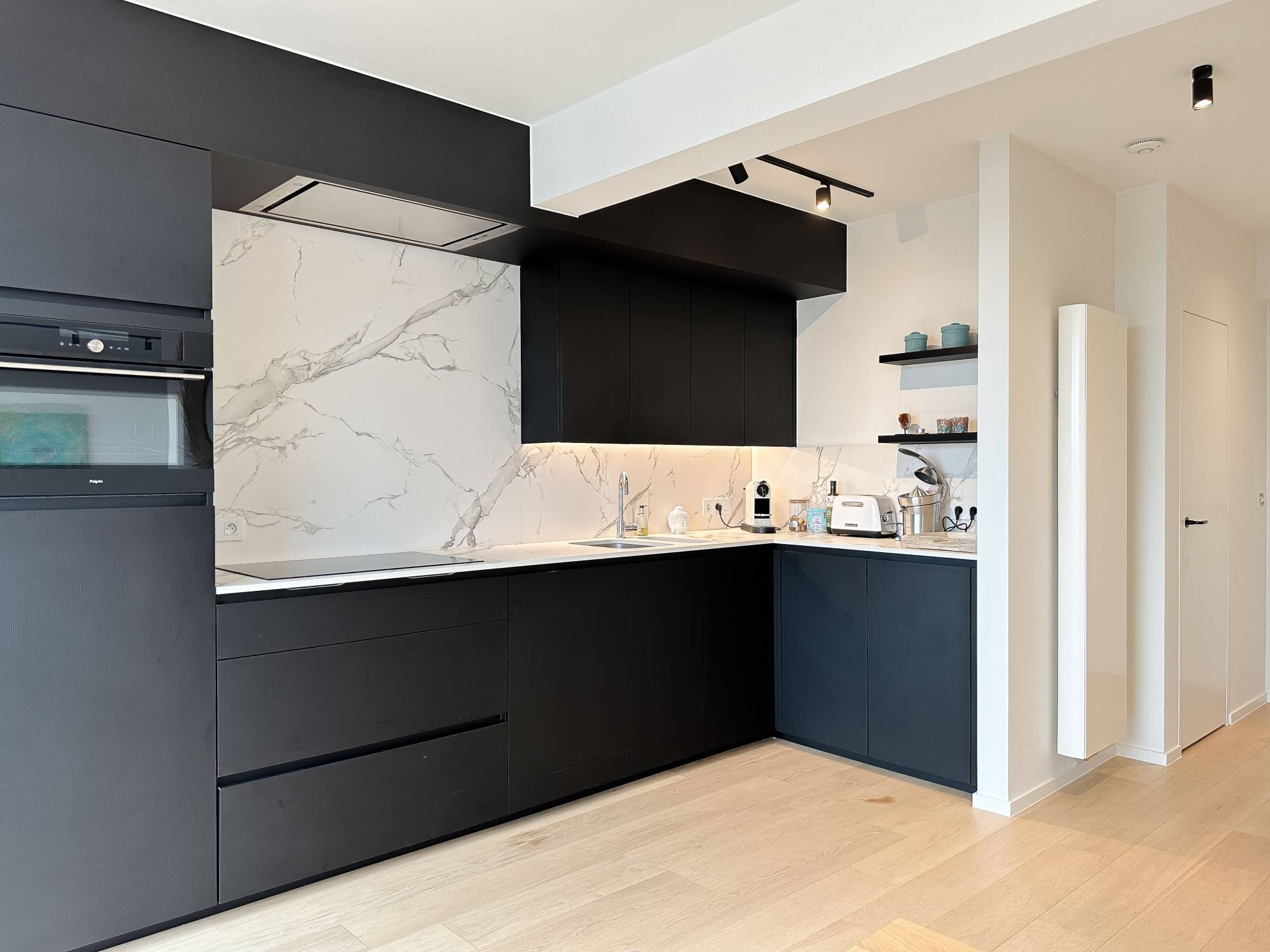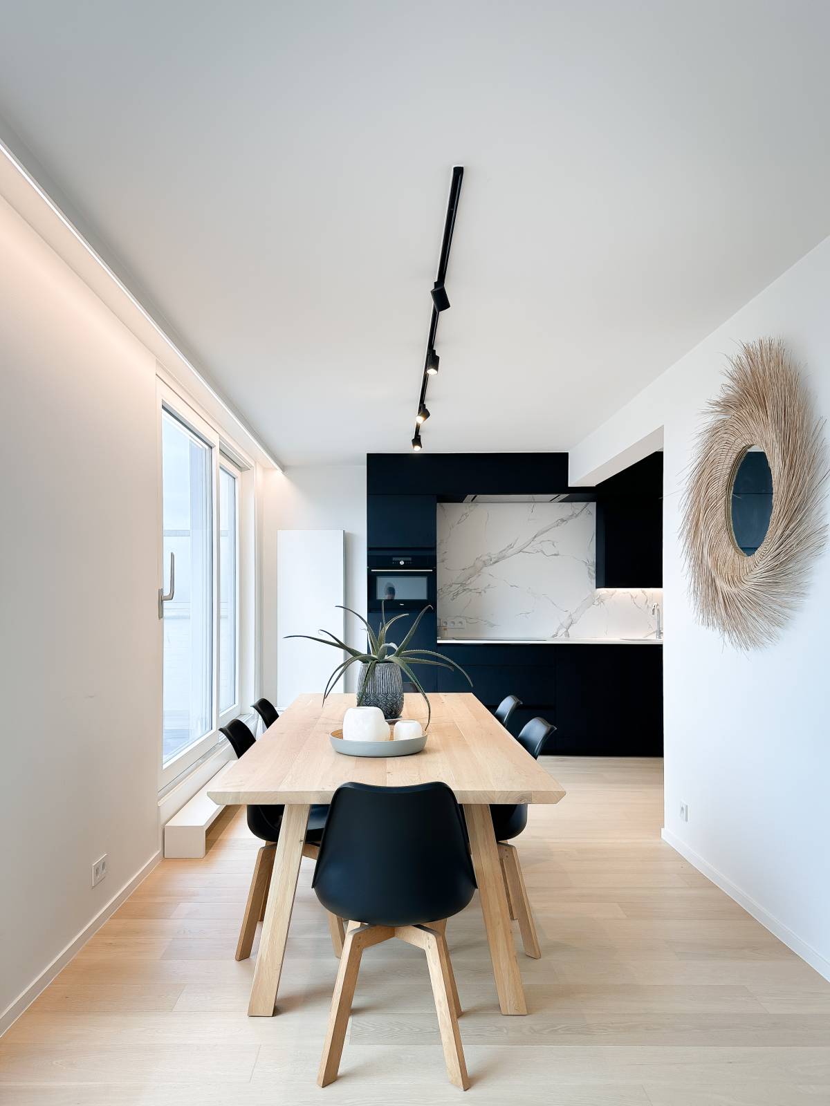 Indeling: Lichtrijke woonkamer die uitkomt op het terras, bereikbaar via 2 grote schuiframen. Volledig uitgeruste keuken met alle moderne comfort. Gezellige eethoek. Er zijn 2 volwaardige slaapkamers, voorzien van ingebouwde kasten, en elke kamer heeft een eigen ensuite douchekamer. Beide slaapkamers openen naar een ruim terras aan de achterzijde. Het appartement is hoogwaardig afgewerkt met vernieuwde ramen, indirecte verlichting, en de Mortex-techniek in de doucheruimtes.