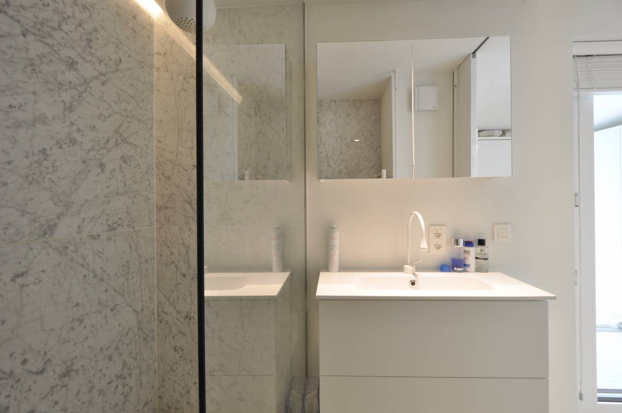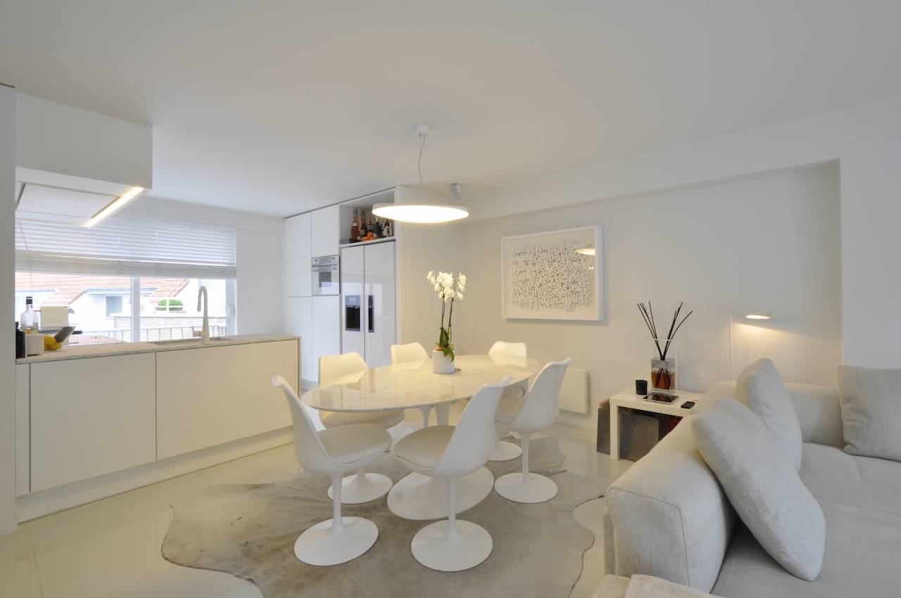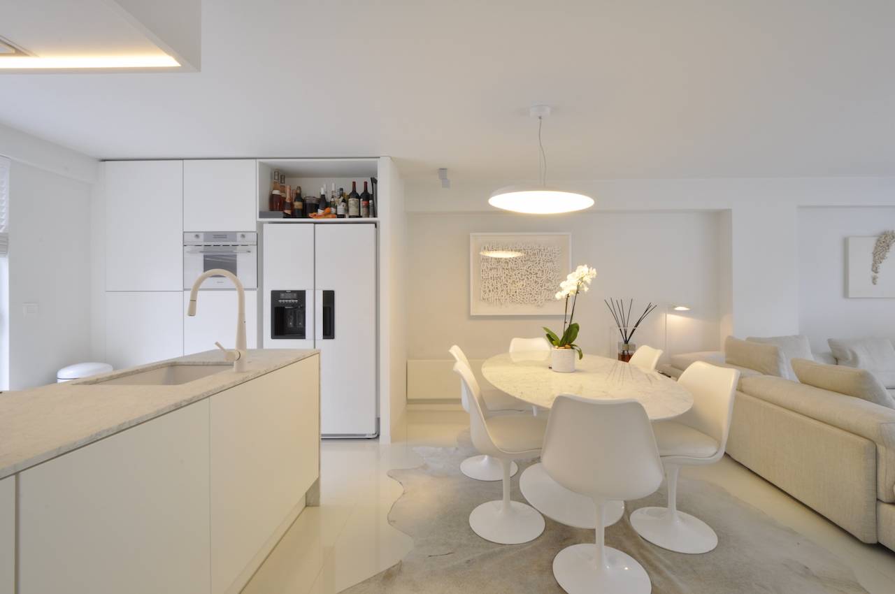 Dit appartement straalt een bijzondere, rustgevende sfeer uit dankzij het gebruik van hoogwaardige materialen, zachte wittinten en een stijlvolle inrichting.