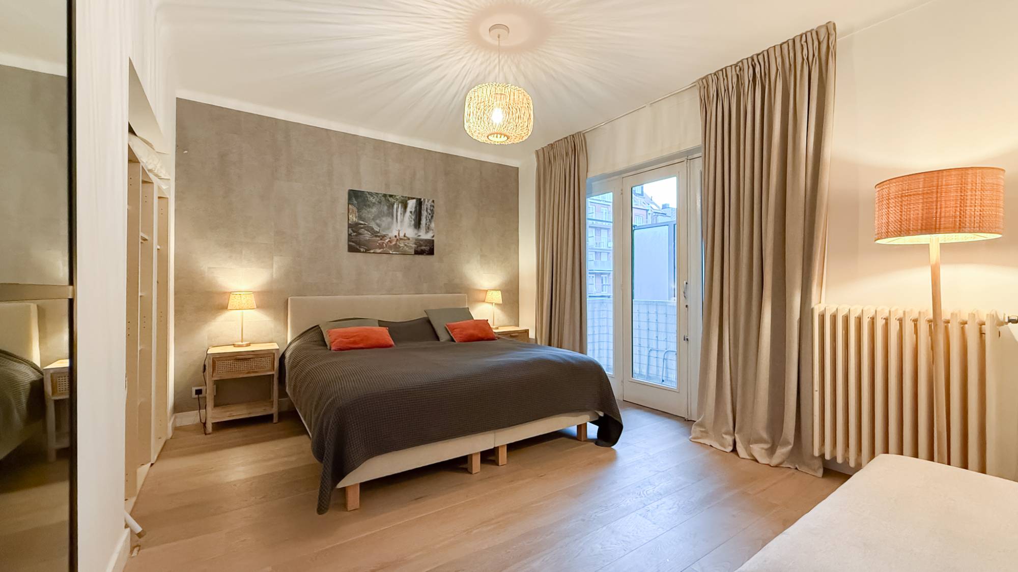 Het appartement telt twee comfortabele slaapkamers. De royale master bedroom bevindt zich aan de rustige achterzijde en biedt toegang tot een balkon. De tweede slaapkamer, gelegen aan de voorzijde, is ideaal als logeer- of kinderkamer.