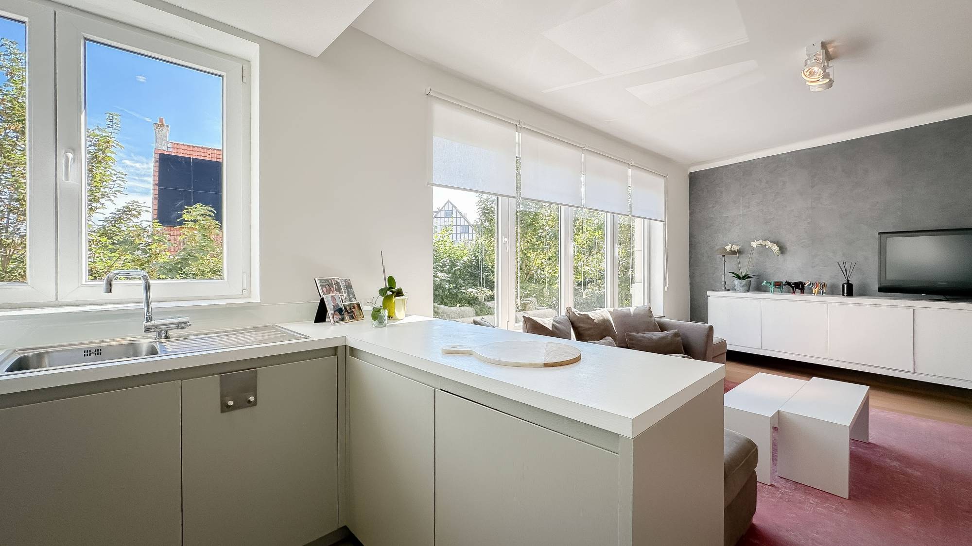 Samenstelling: Inkomhal met gastentoilet en vestiaire. Lichrijke woonkamer die dankzij de mooie gevelbreedte baadt in het natuurlijke licht. De grote ramen creëren een aangename sfeer en bieden een mooi uitzicht op de groene omgeving. De woonkamer loopt naadloos over in een goed uitgeruste keuken.