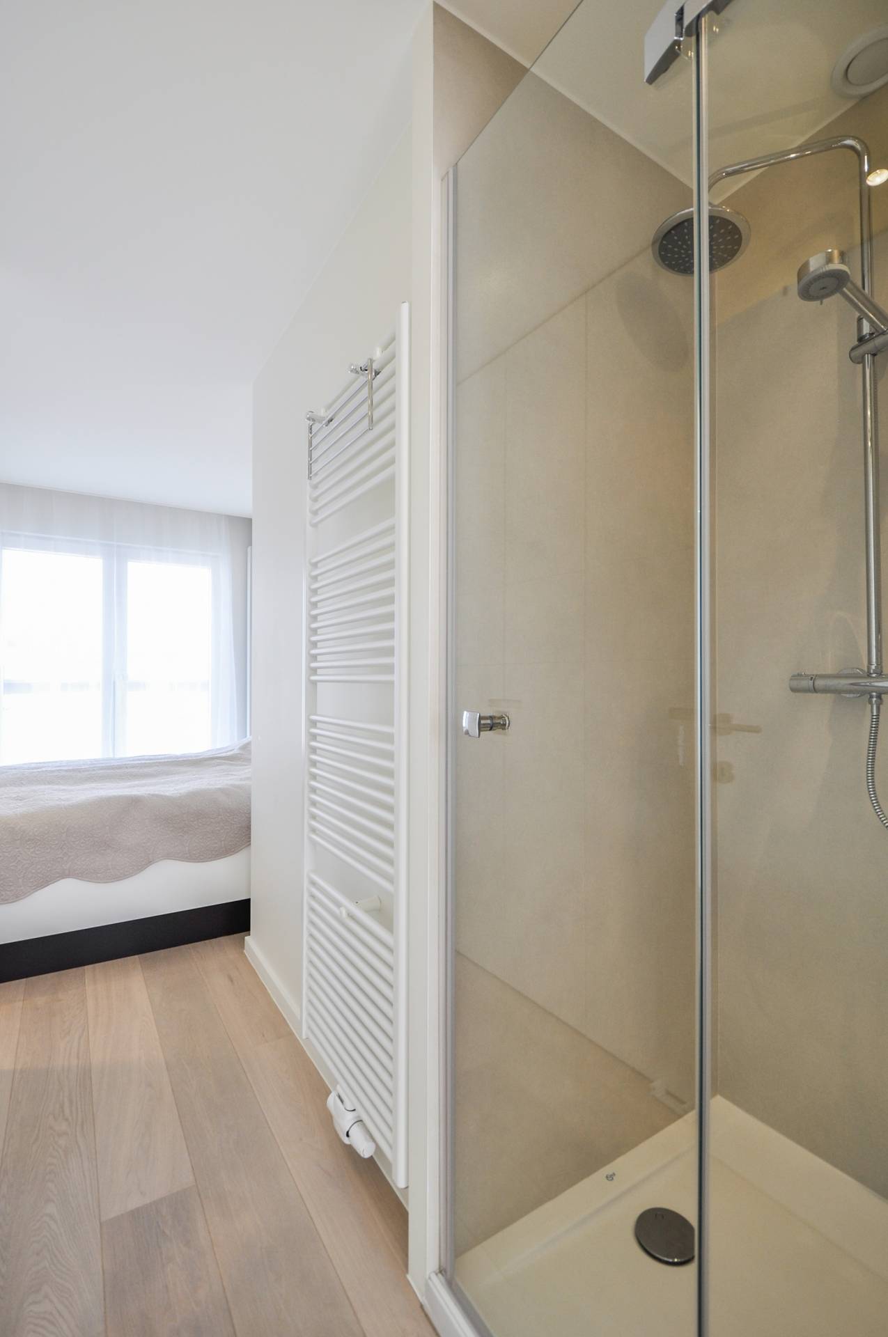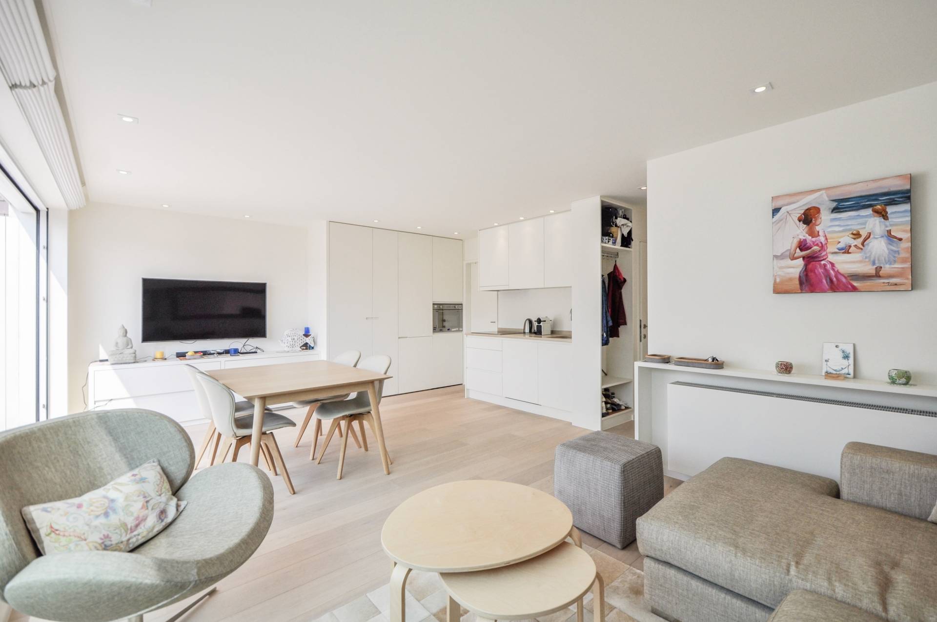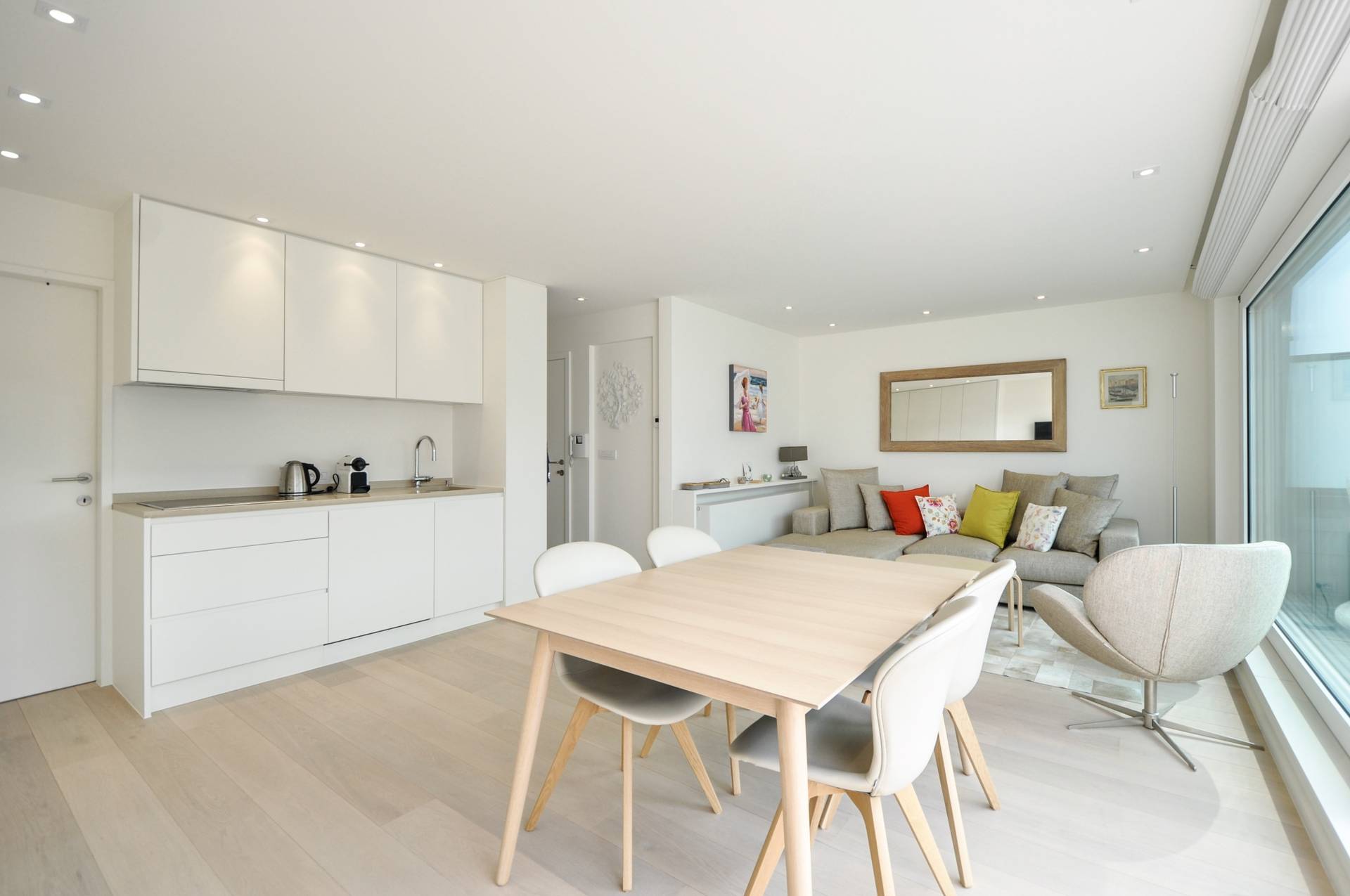Het appartement bevindt zich in een kleine residentie aan het Albertstrand, met een mooie gevelbreedte en geniet van een heel mooi zijdelings zeezicht.