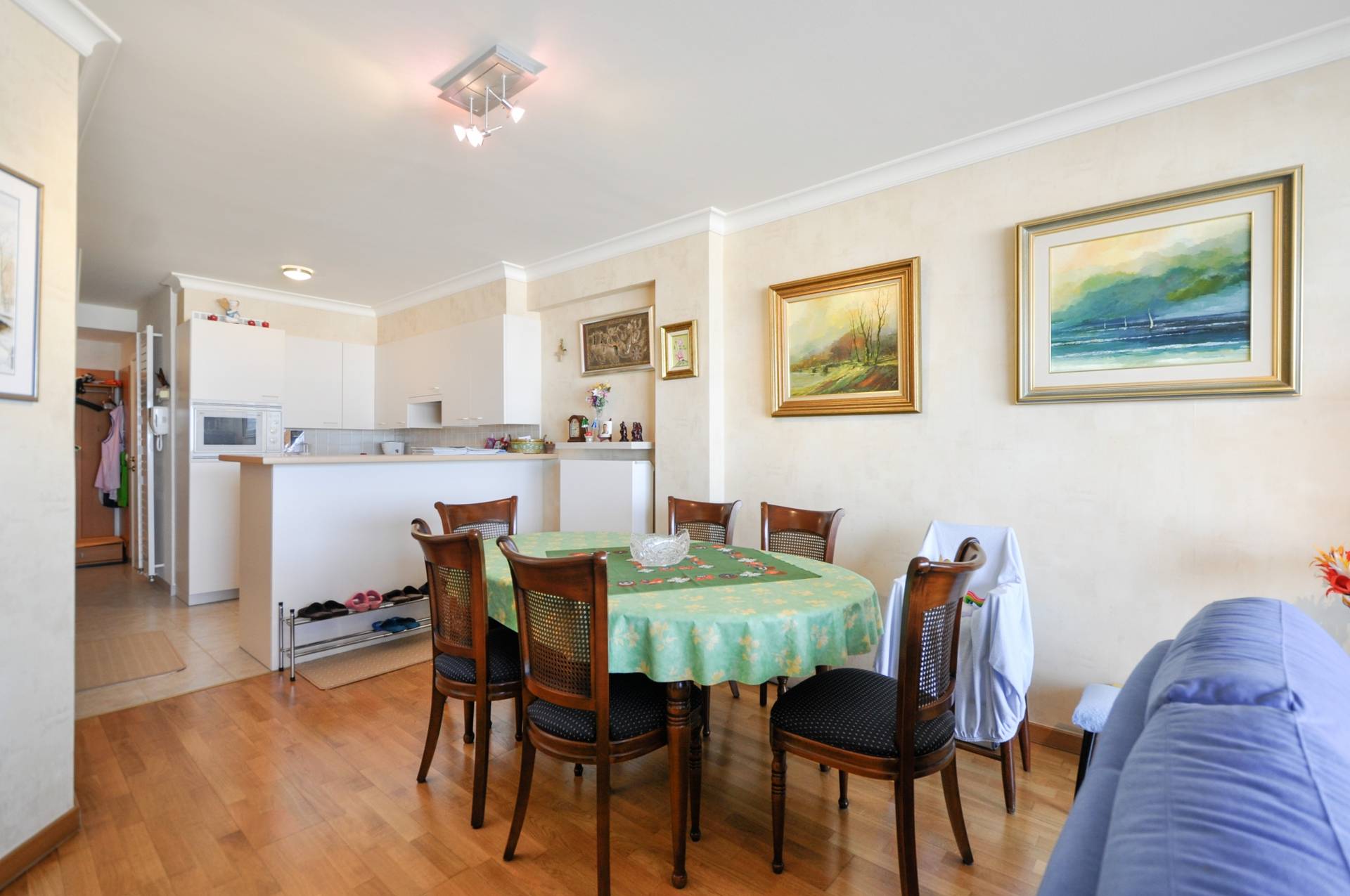 Samenstelling: Inkomhall met gastentoilet en vestiaire. Woonkamer die uitgeeft op een mooi terras, en frontaal zeezicht biedt. Eethoek. Open, ingerichte keuken. Berging.