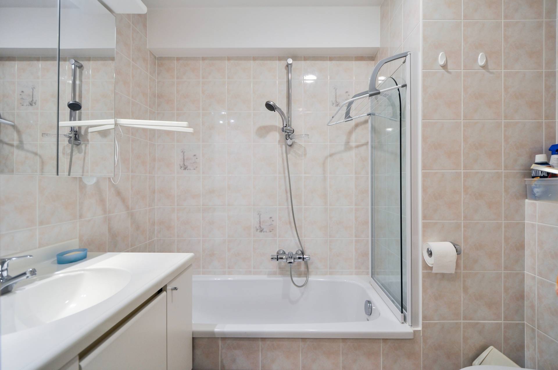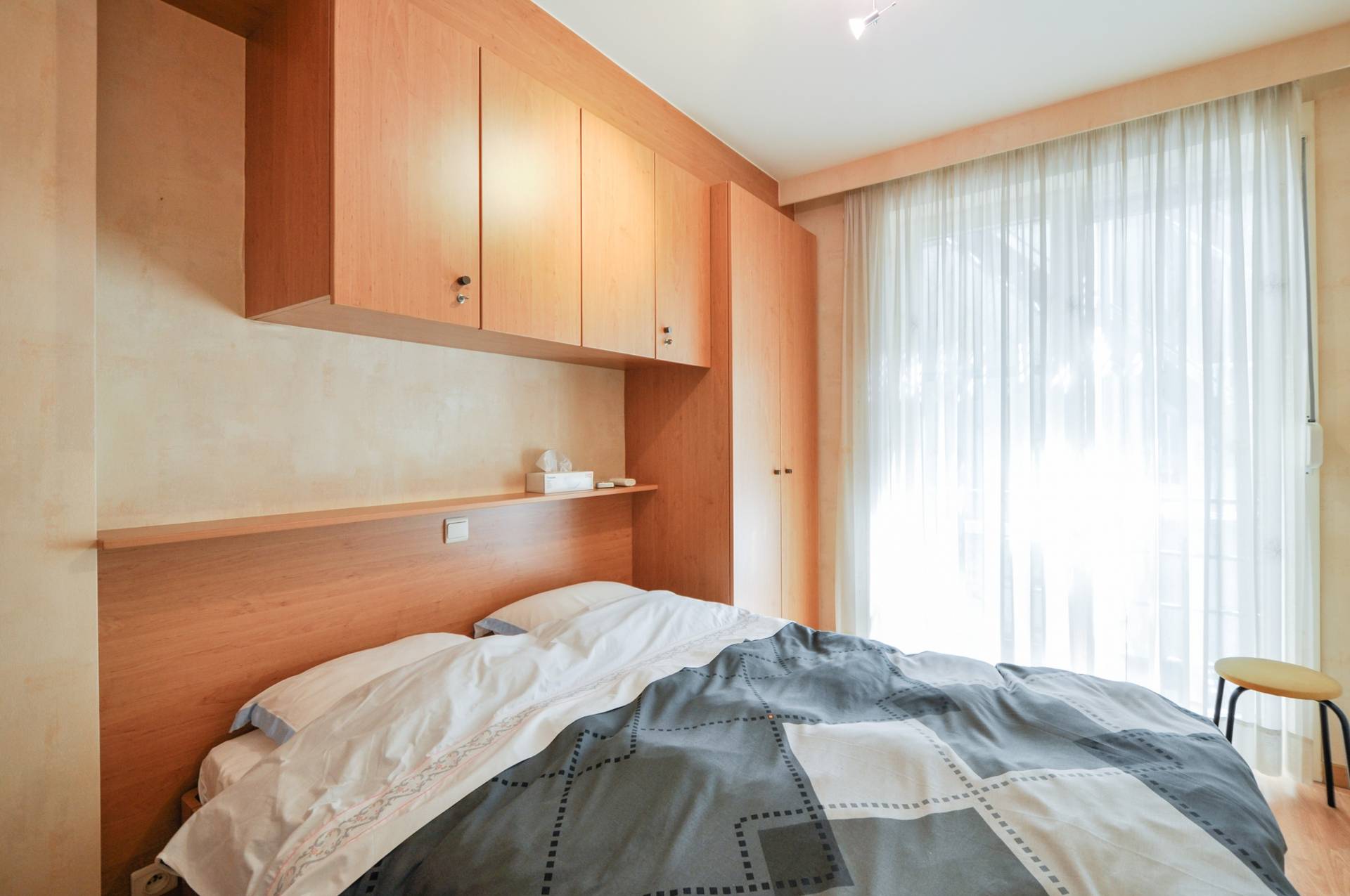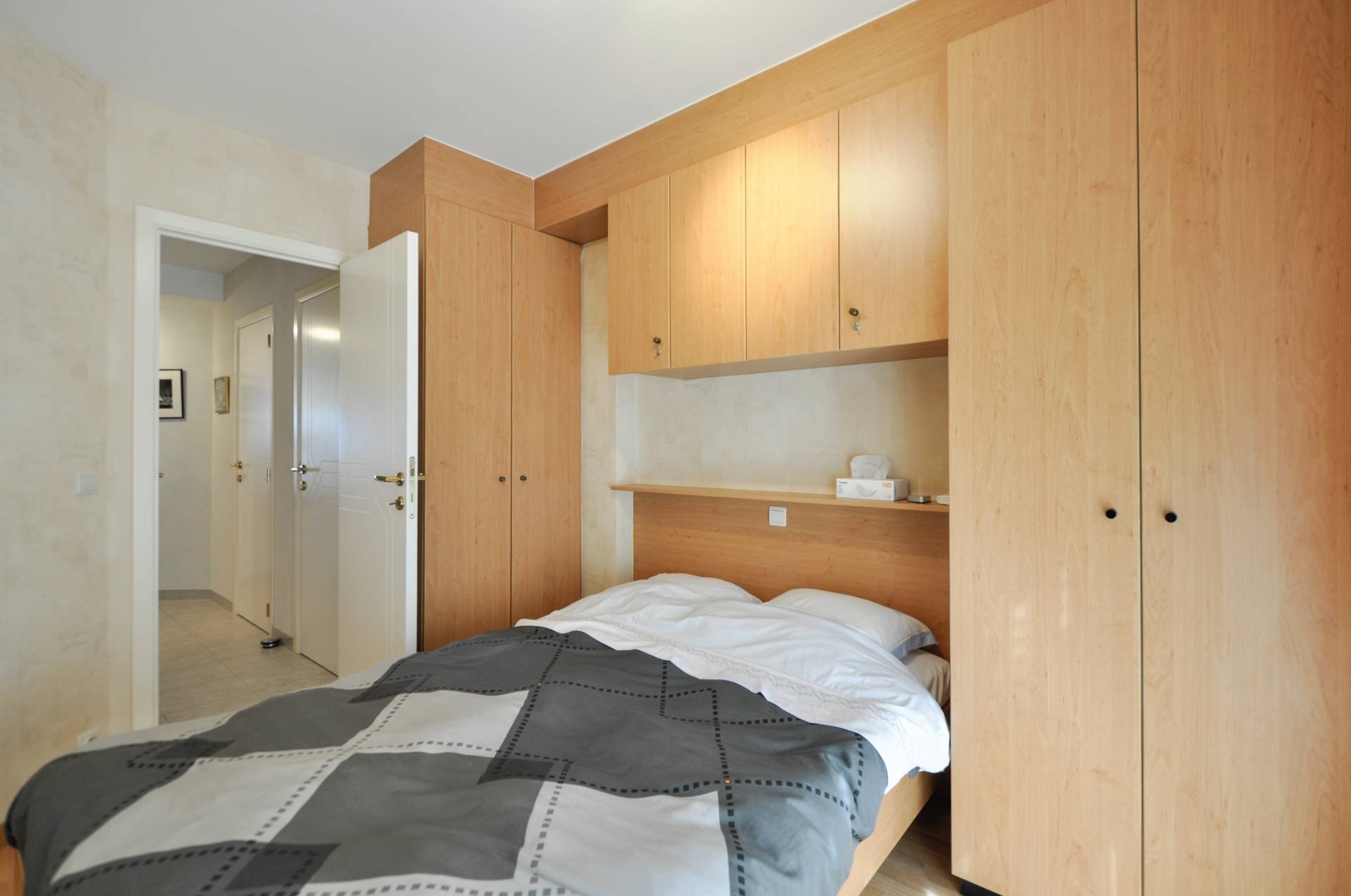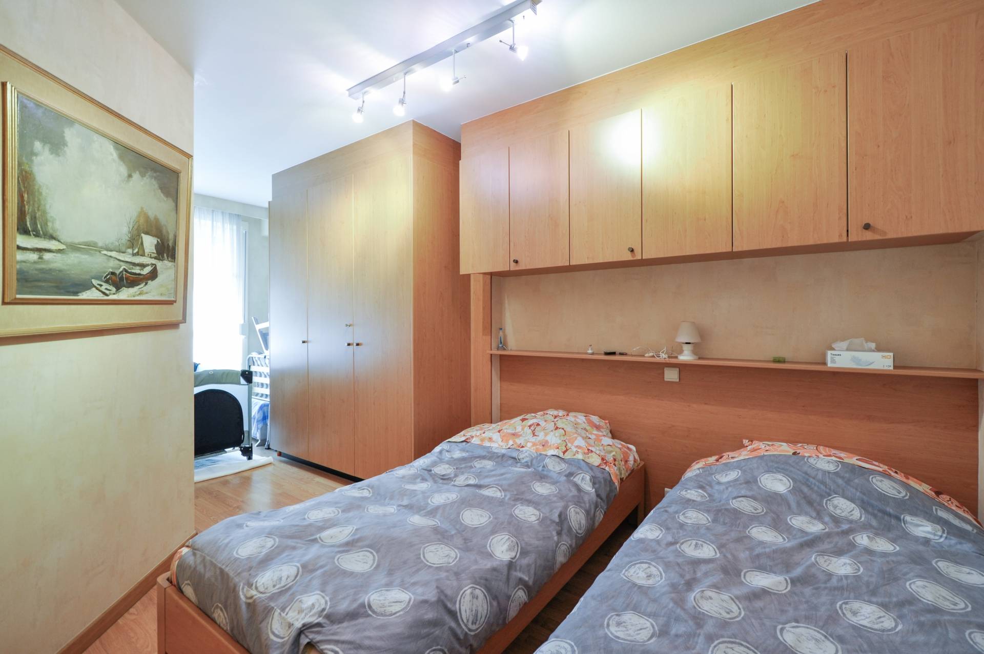 Achteraan bevinden er zich 2 volwaardige slaapkamers, beiden voorzien van tal van ingemaakte kasten. Er is een afzonderlijke badkamer met ligbad/douche, lavabomeubel en toilet.