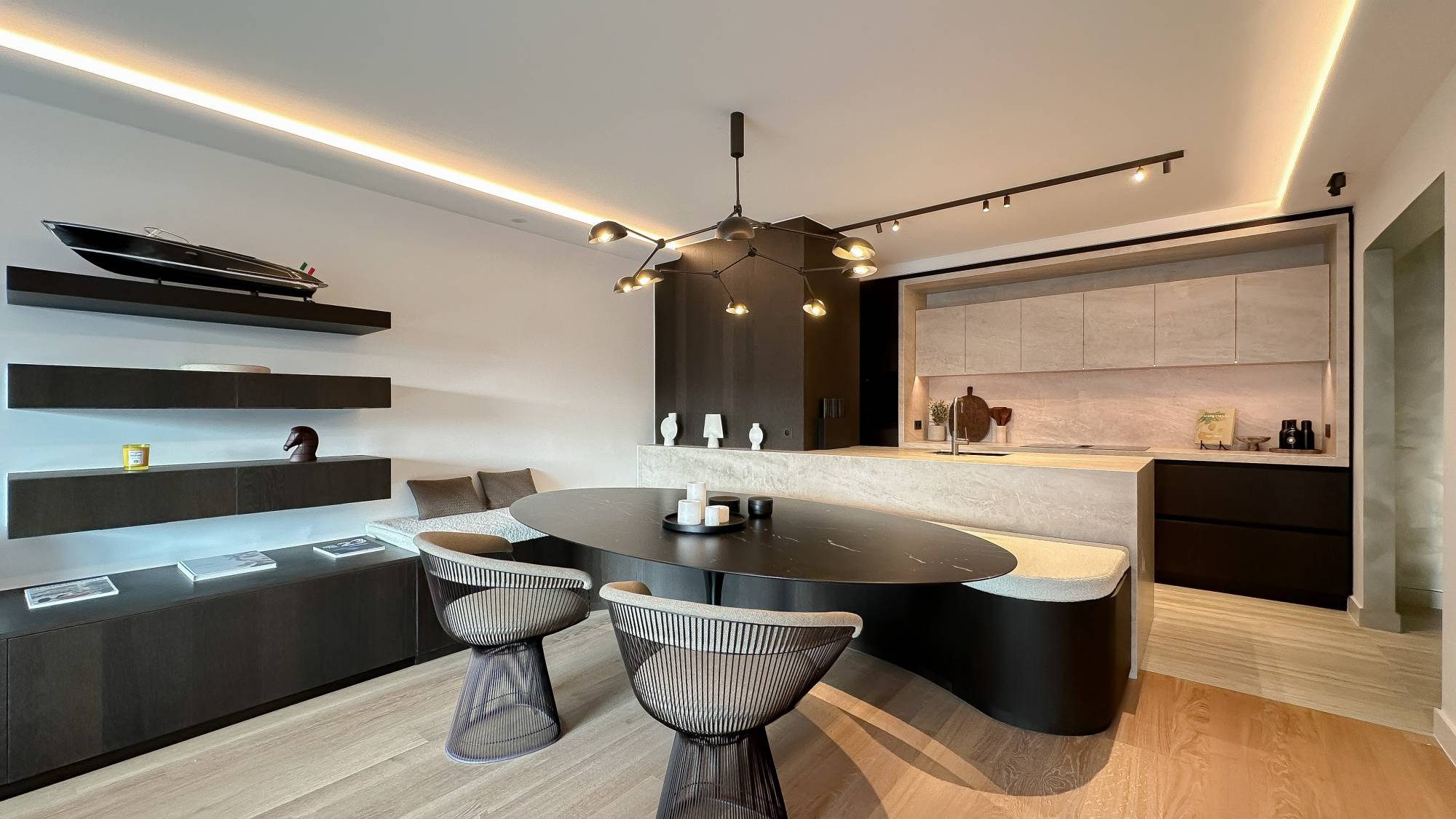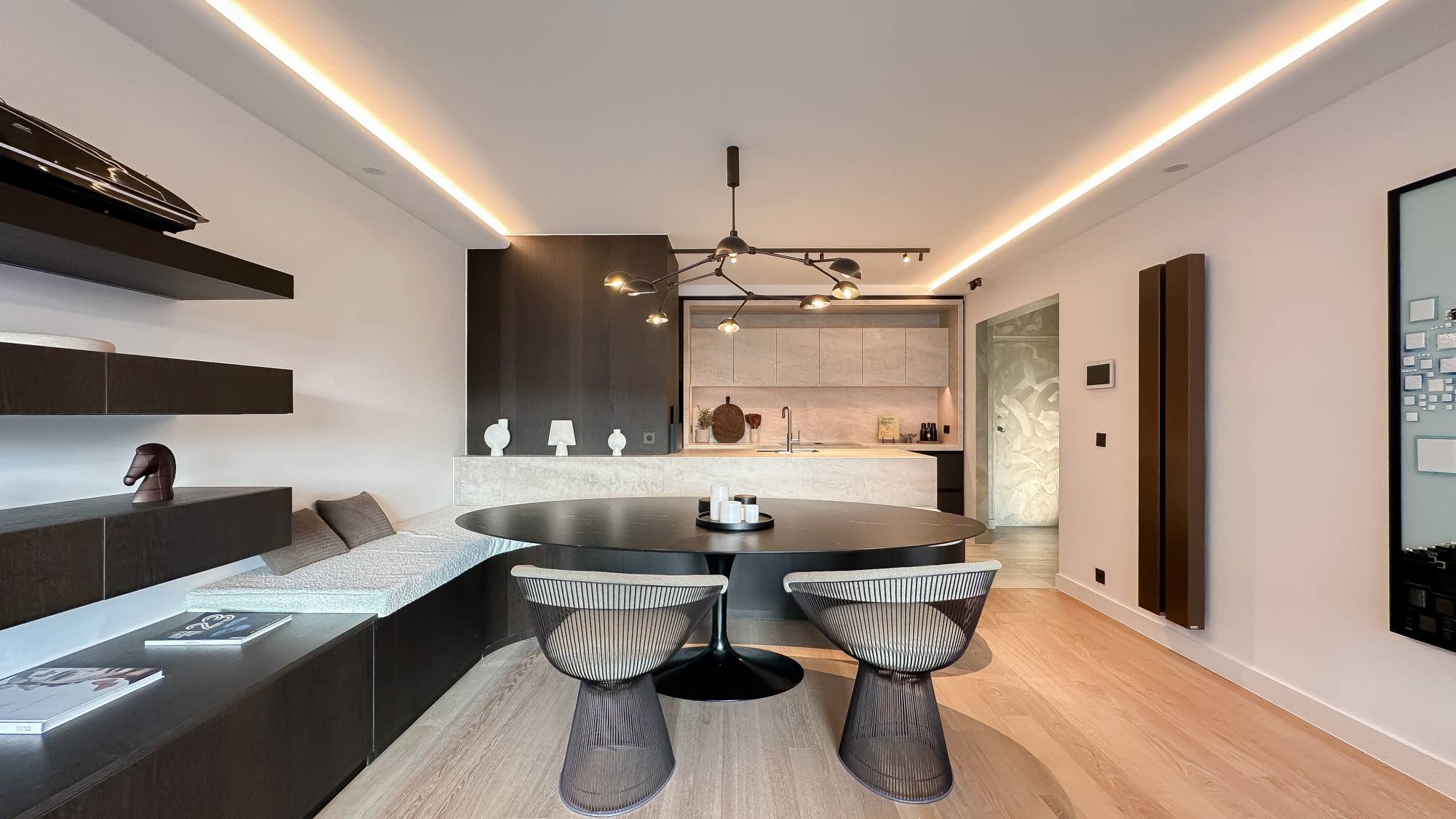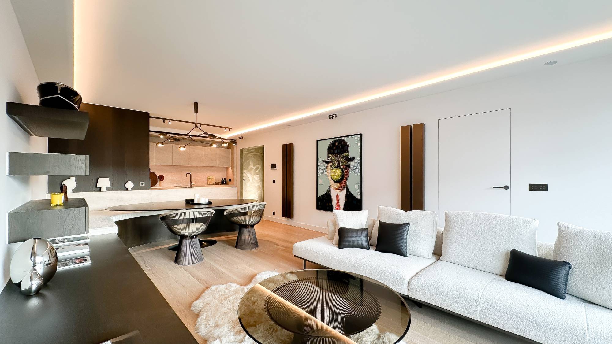 Indeling: Inkomhal met vestiaire en gastentoilet. De zonnige woonkamer geeft uit op een mooi terras met uitzicht over het Albertplein en de zee. Aansluitend bevindt zich een ruime, gezellige eetkamer. De bijzonder aangename open keuken is voorzien van alle hedendaagse comfort, waaronder een geïntegreerde koffiezet van Miele en een wijnkast.