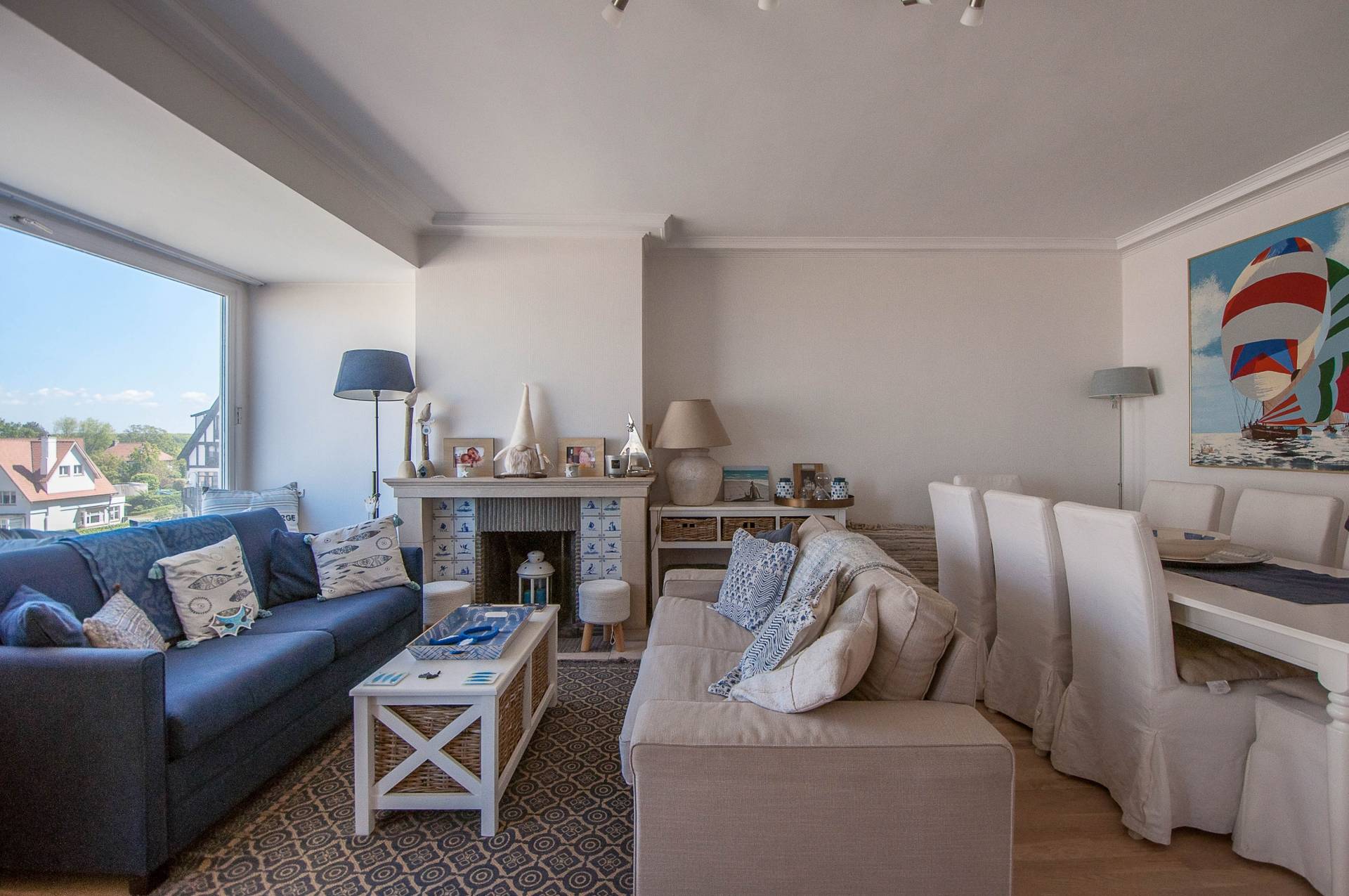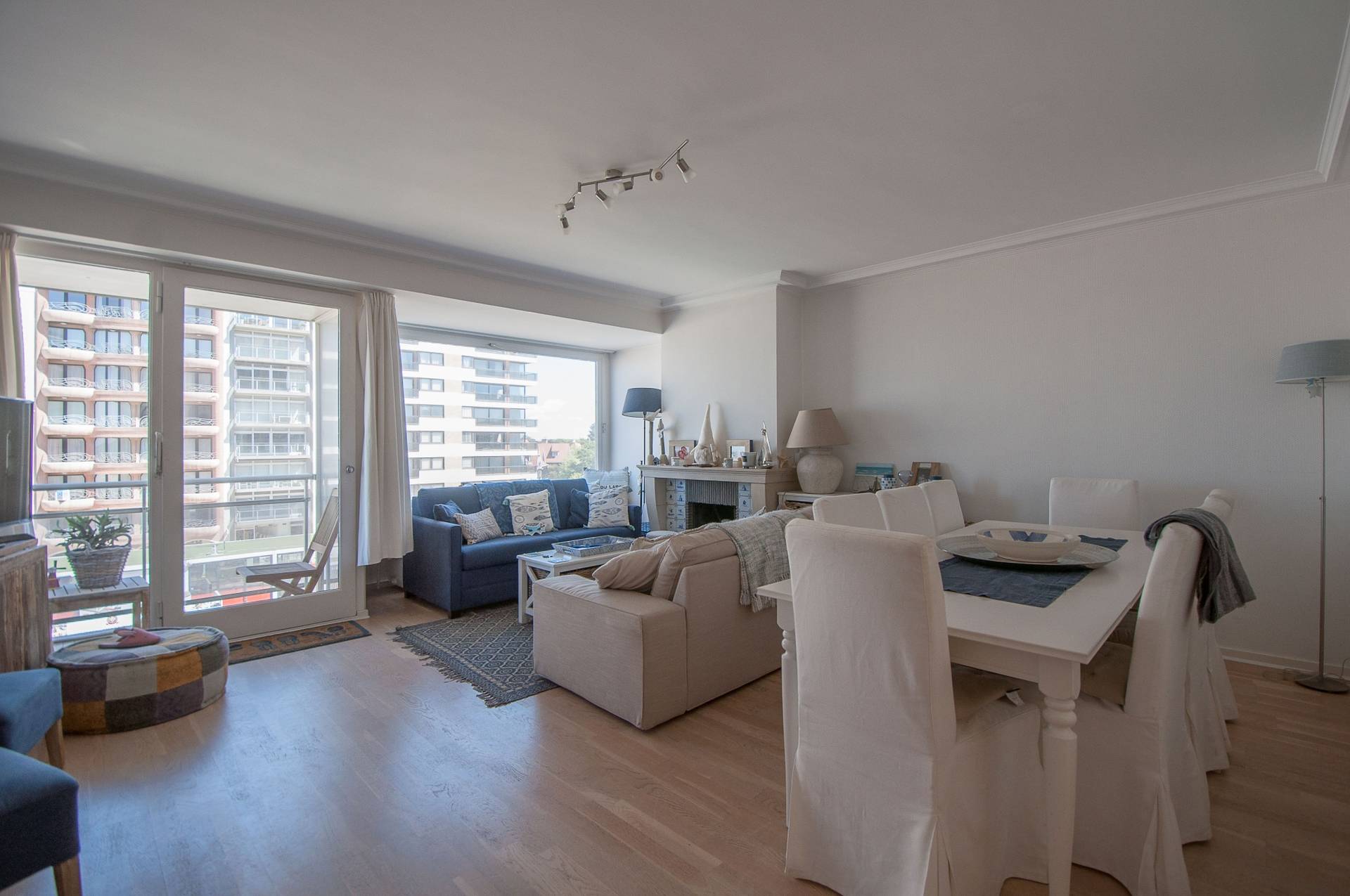 Samenstelling: Royale inkomhall met gastentoilet en vestiaire. Woonkamer die uitgeeft op een terras met schitteend zicht over het mondaine Albertplein, de zee en de villa's van het Zoute. Afzonderlijke keuken.