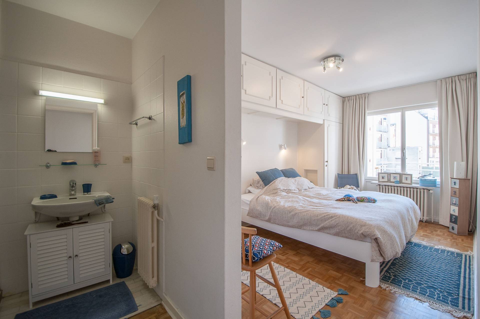 Appartement met 2 slaapkamers, gelegen op het Albertplein, genietend van een fenomenaal uitzicht over het Albertplein en de zee...