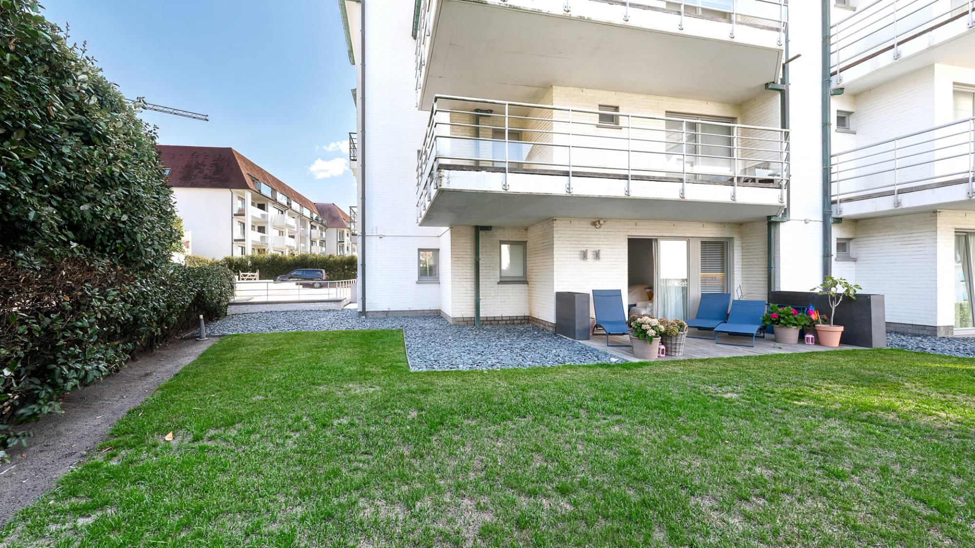 Stijlvol HOEKAPPARTEMENT met TUIN op toplocatie in het Zoute – op 30 meter van de wandeldijk