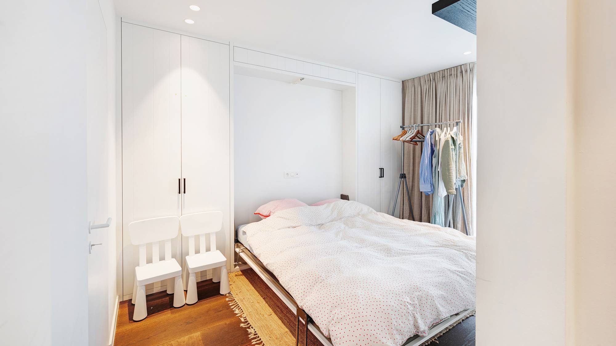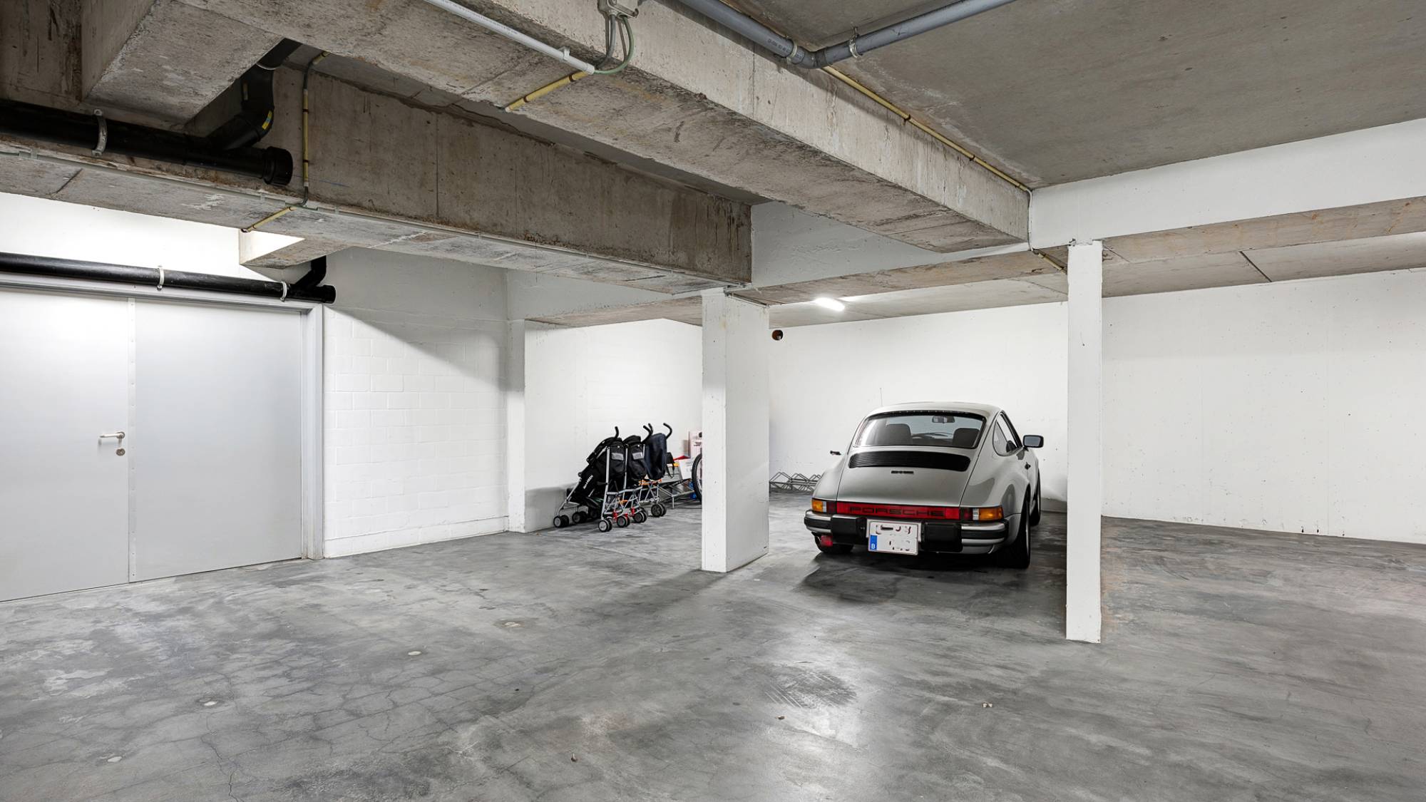 Dubbele parkeerplaats in de residentie aan 130.000€. Renovatie uitgevoerd door interieurarchitect Bryan Chielens.