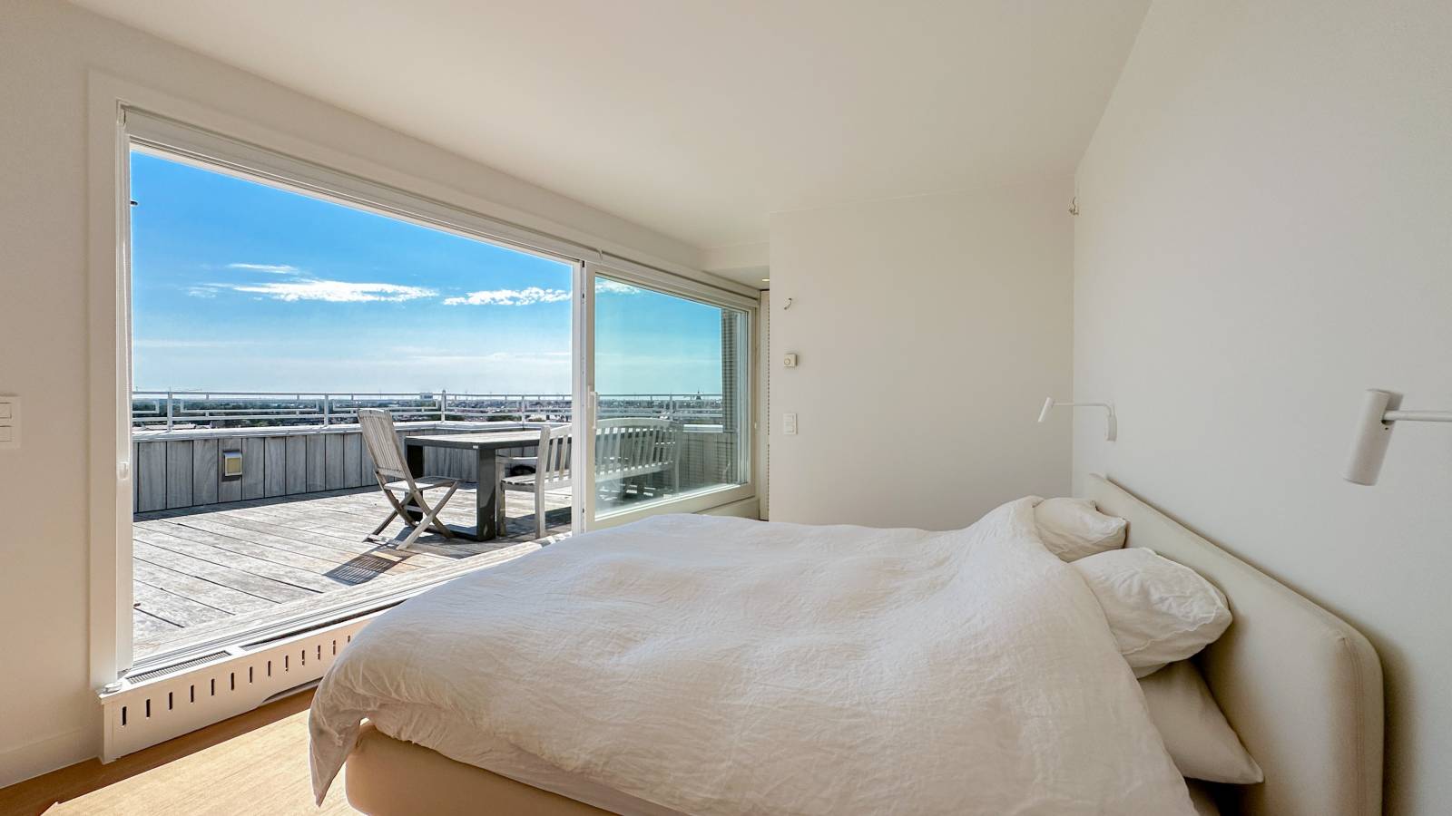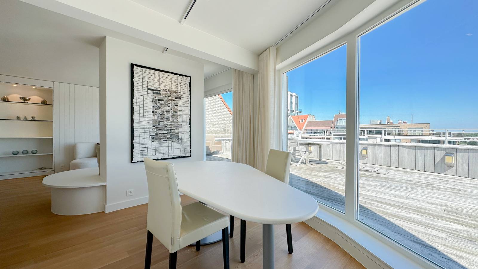Exclusieve penthouse met een uitzonderlijk RUIM en ZONNIG TERRAS en zijdelings ZEEZICHT aan het Albertplein...