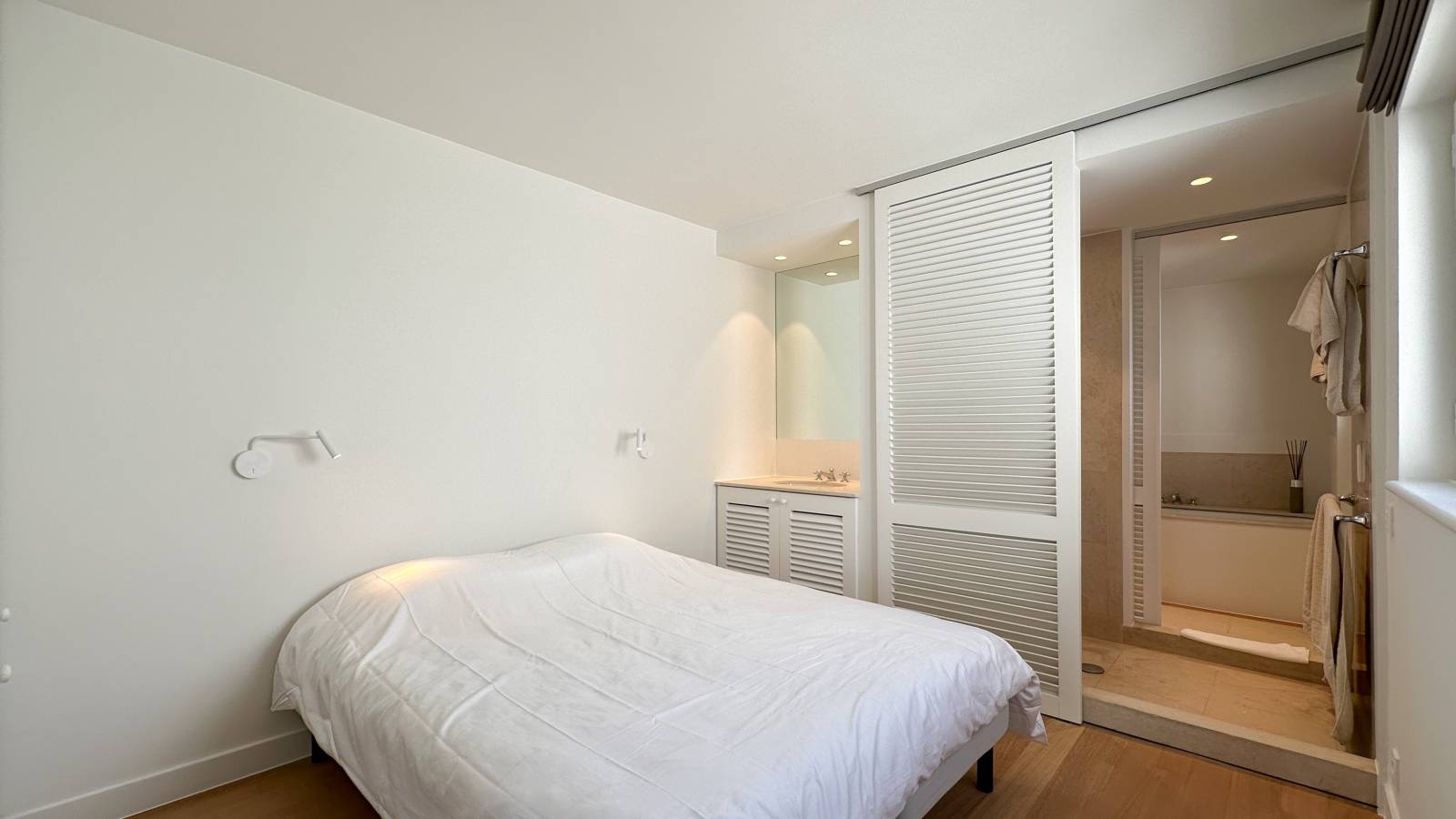 Indeling: Inkomhal met gastentoilet en vestiaire. Eetkamer en woonkamer met directe toegang tot het terras, en een open keuken. Twee ruime slaapkamers, waarvan één met toegang tot het terras. Eén gedeelde badkamer.