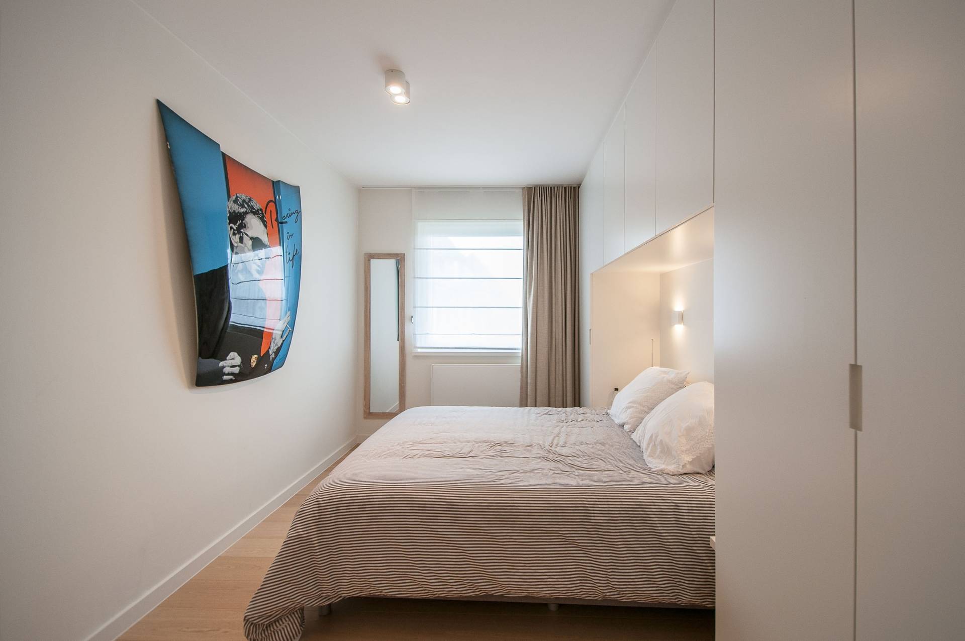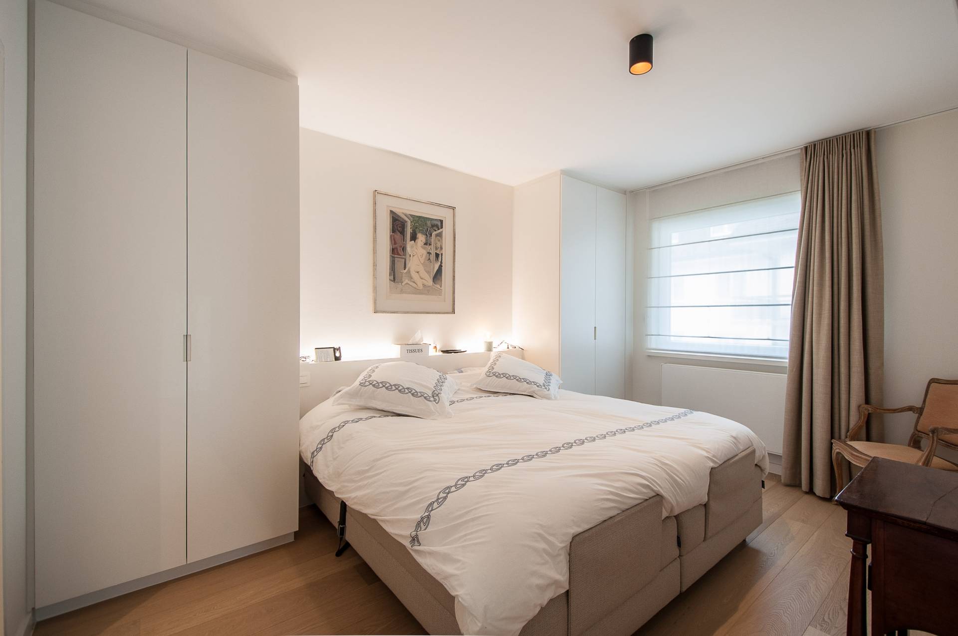Er zijn 2 aangename, ruime slaapkamers met tal van ingemaakte kasten. 1 Badkamer met ligbad, lavabo en toilet. 1 Douchekamer met ruime inloopdouche en lavabo.