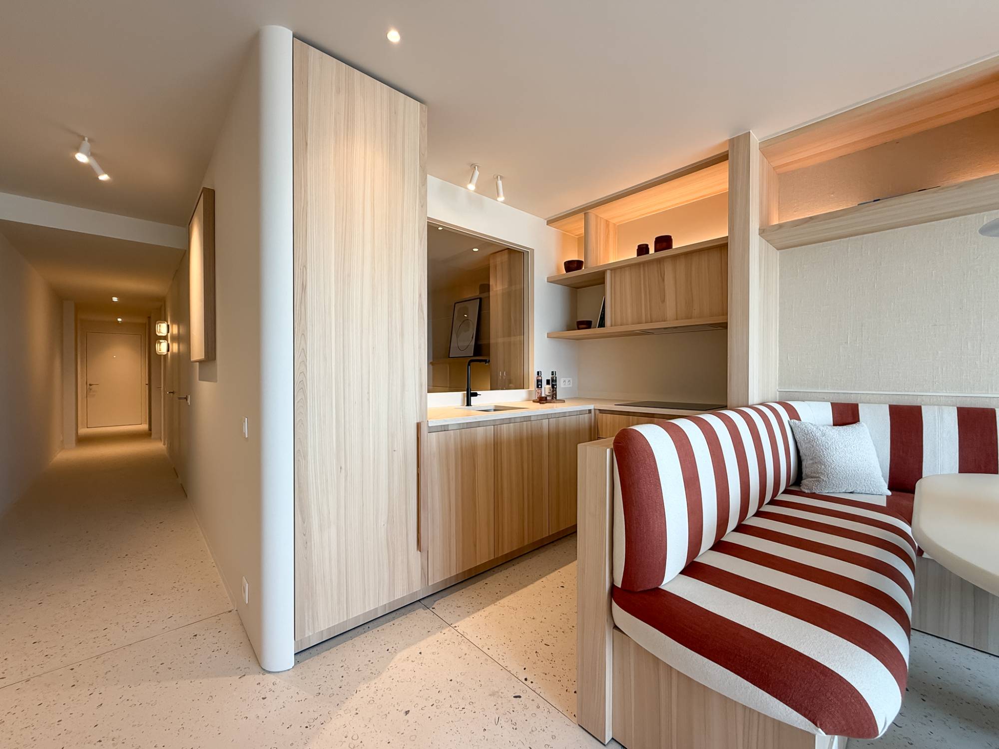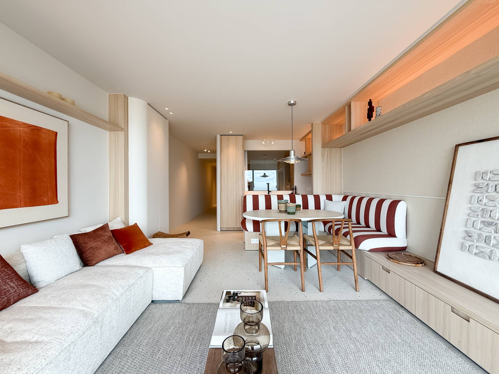 In hartje Zoute, op een steenworp van het Albertplein en de wandeldijk, ligt dit exclusieve appartement dat zon, ruimte en luxe moeiteloos combineert. Het lichte en royale leefgedeelte opent naar een zonnig terras met ongeëvenaard zeezicht – een perfecte plek om te ontspannen.
