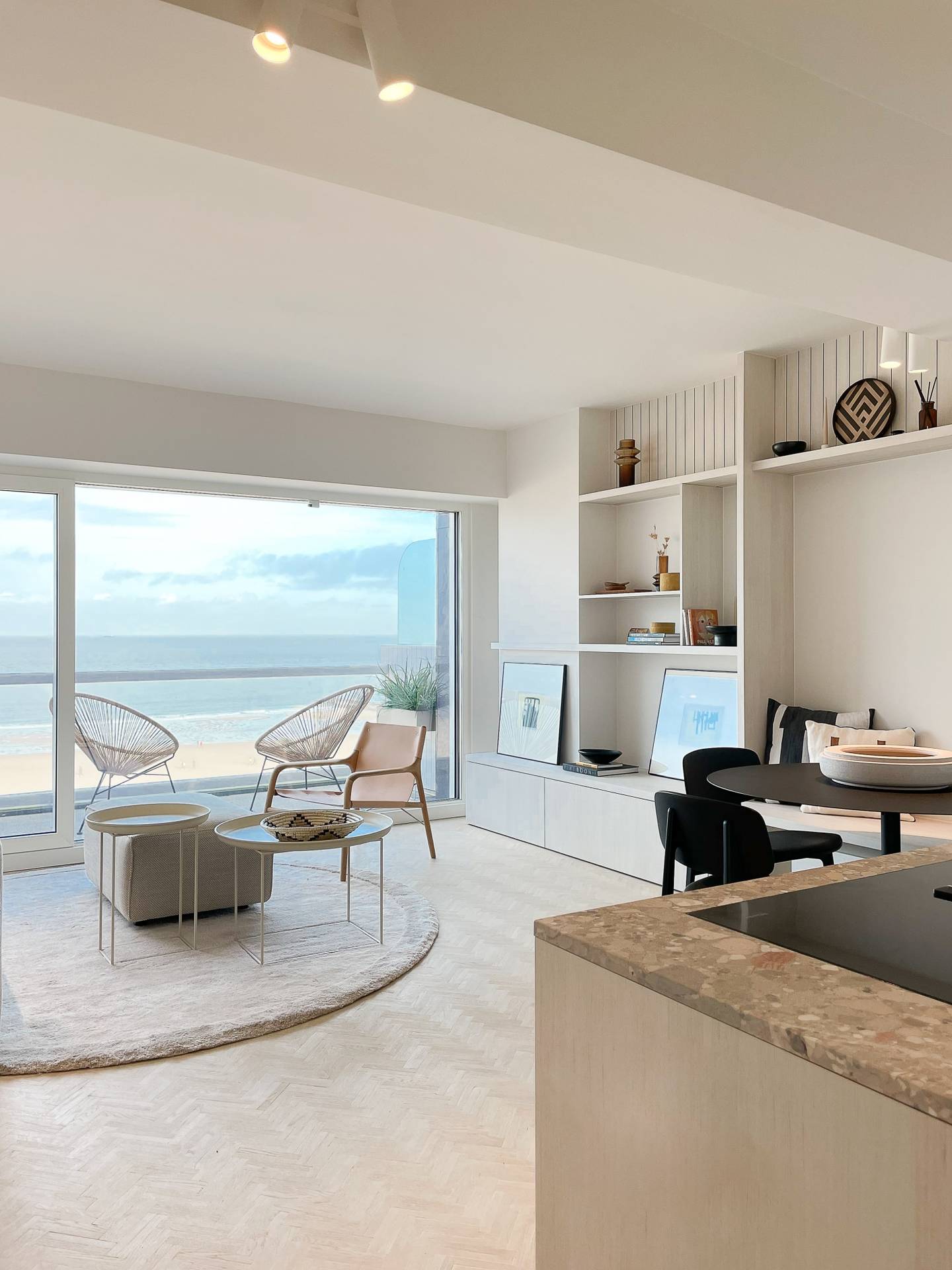 Bijzonder smaakvol en hedendaags ingericht appartement met mooi terras, gelegen op ZEEDIJK Zoute, tussen het Albertplein en de Minigolf...