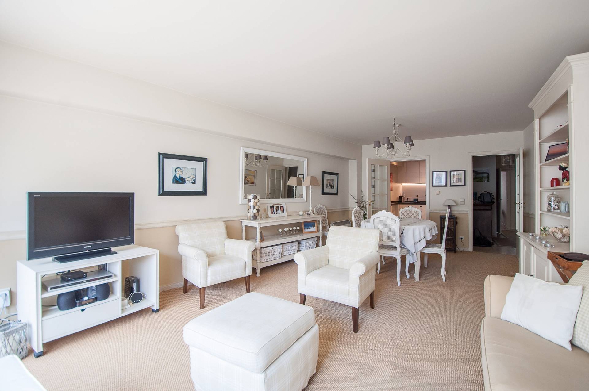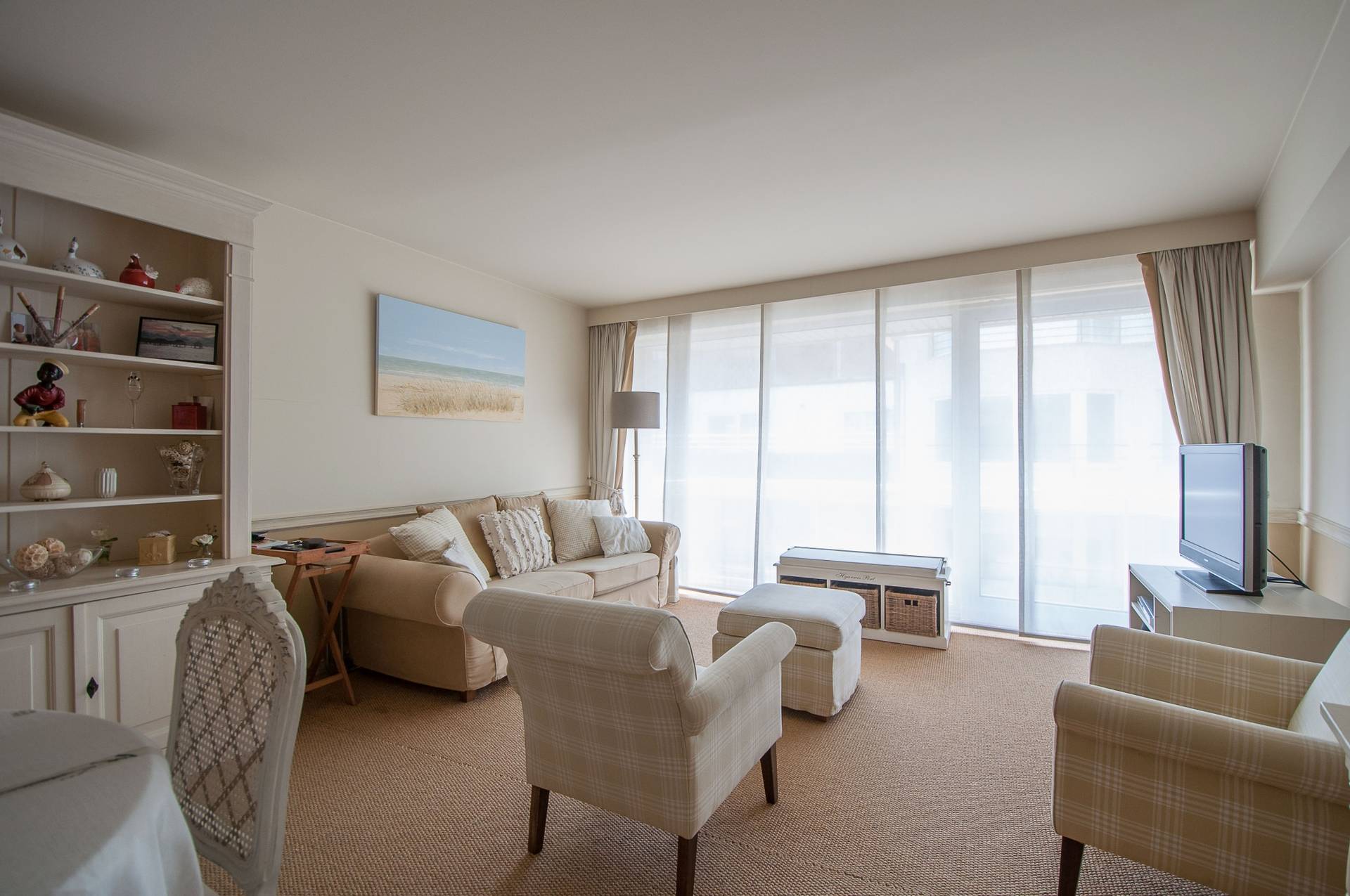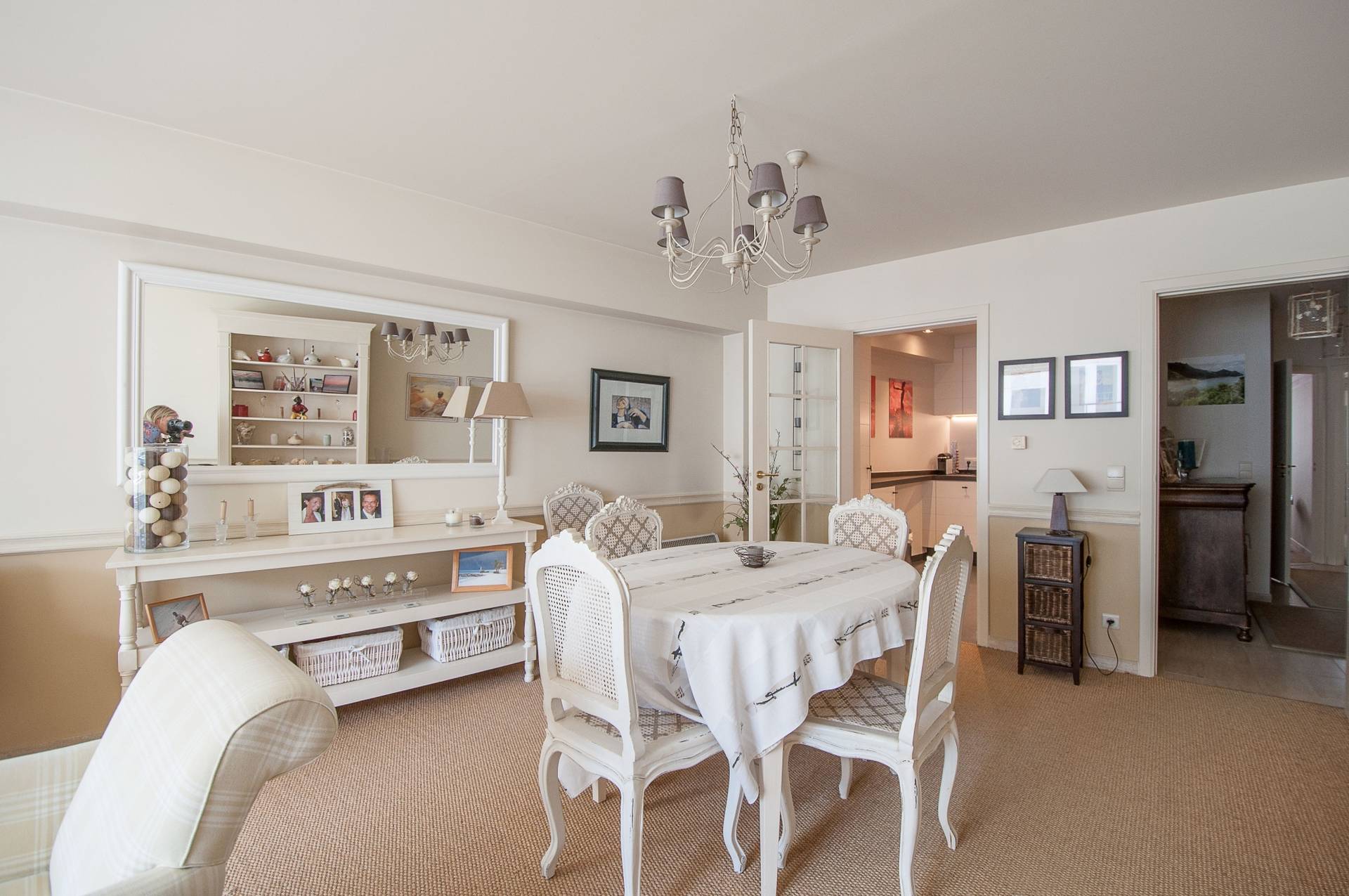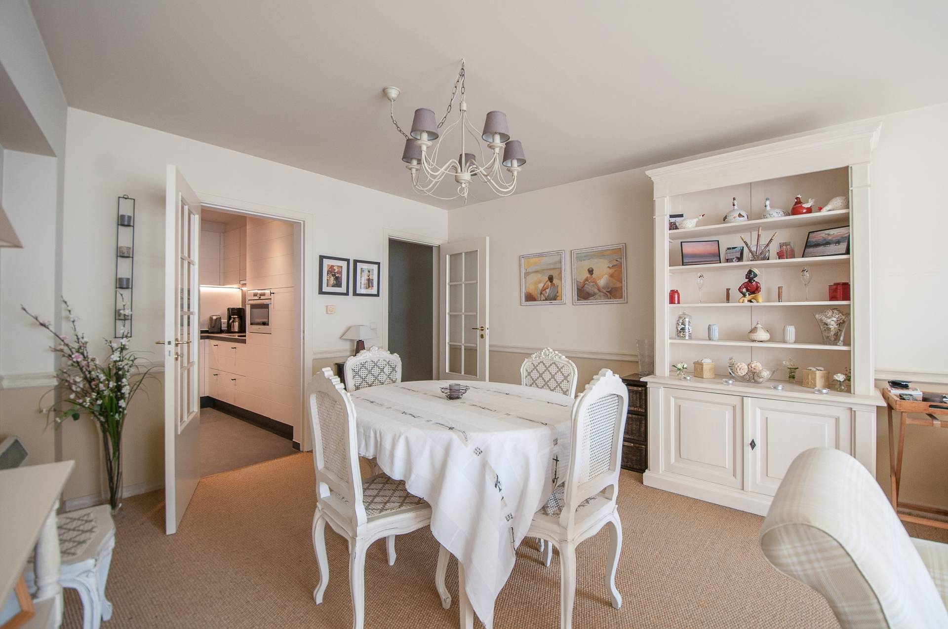 Samenstelling: Inkomhall met gastentoilet en vestiaire. Zonnige woonkamer die uitgeeft op een zonnig terras over de volledige breedte van het appartement, en genietend van zeezicht en zicht op de Kustlaan. Eethoek. Afzonderlijke keuken, voorzien van alle hedendaagse comfort.