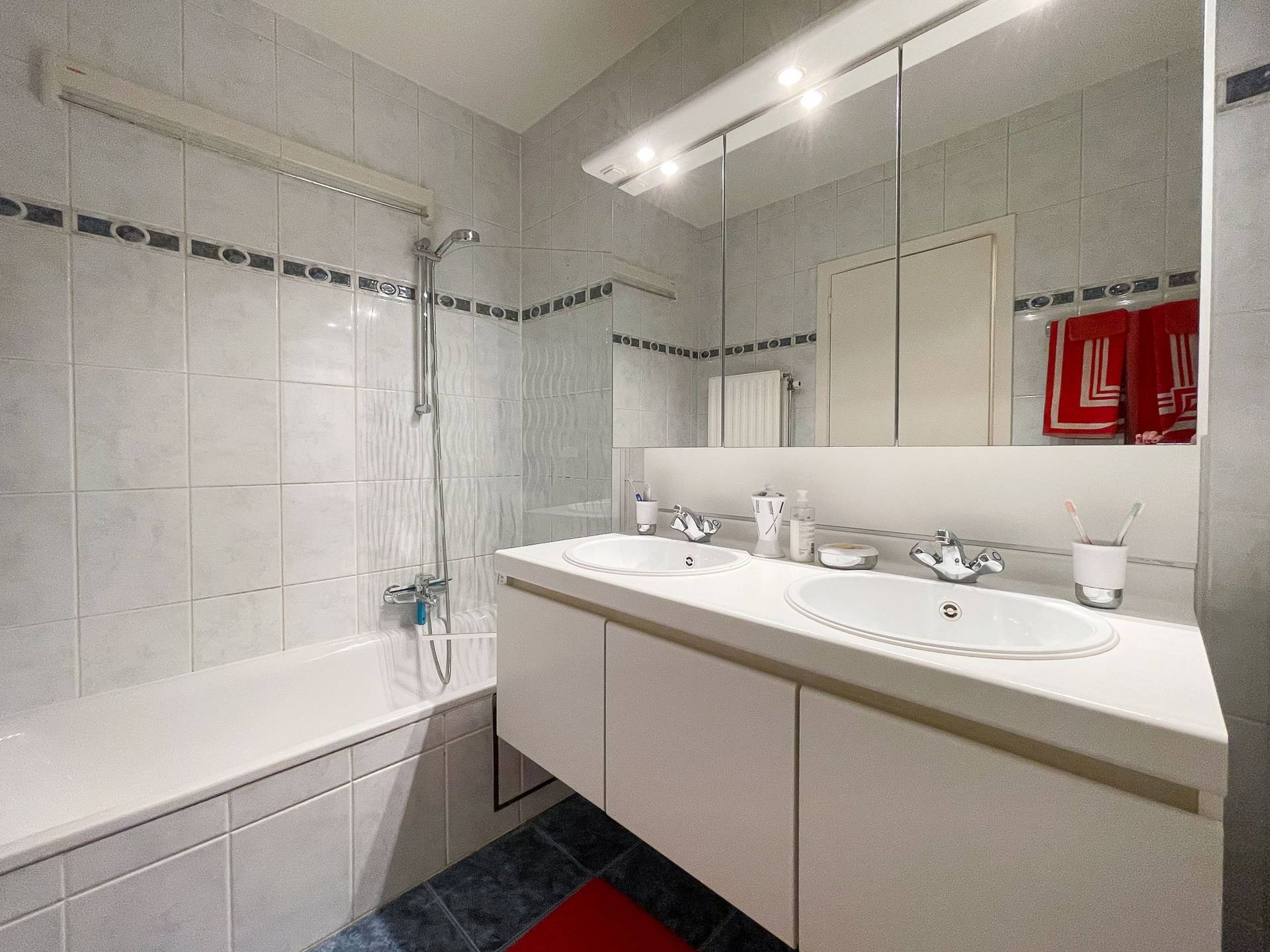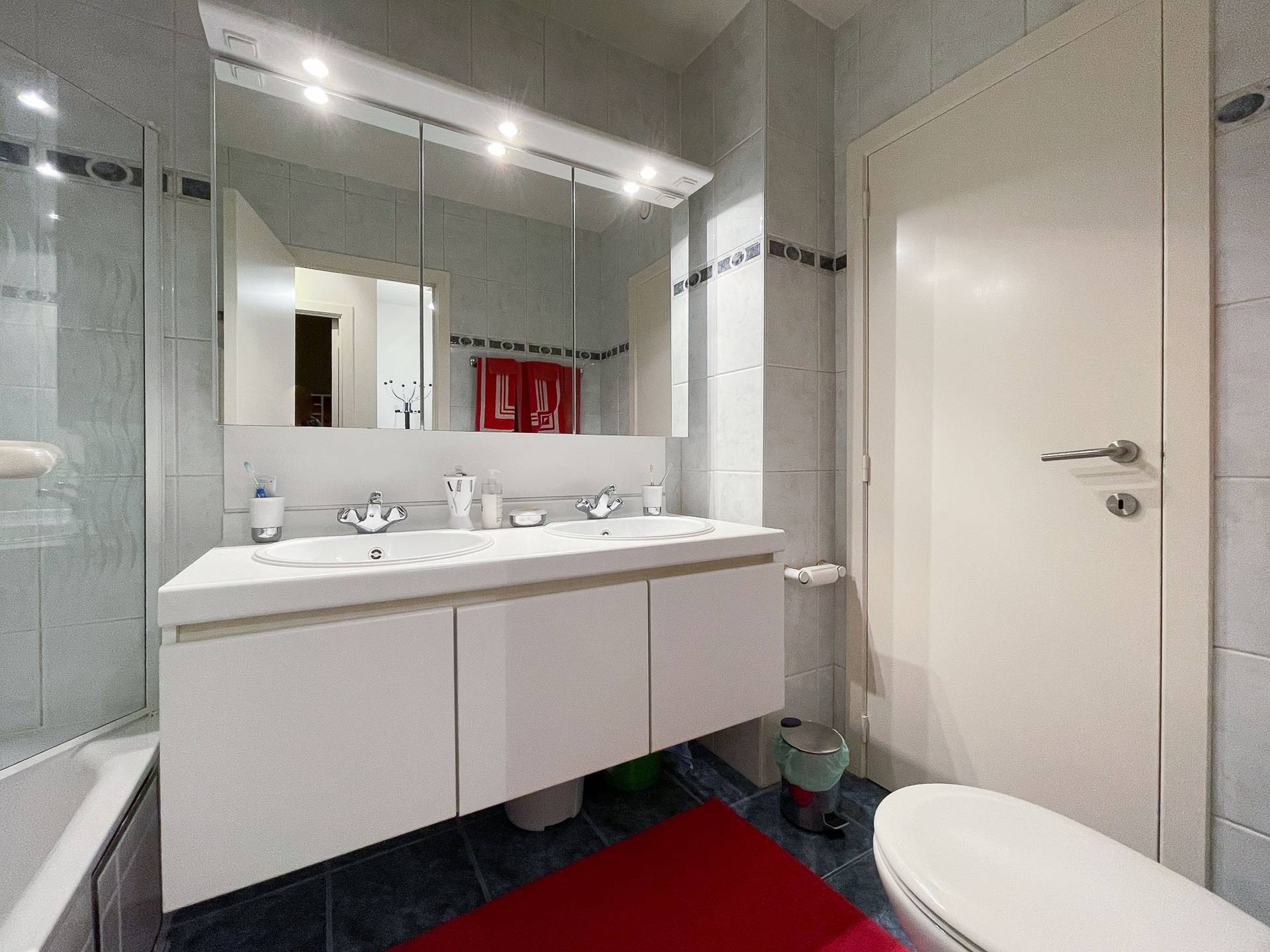 Achteraan bevinden er zich 2 slaapkamers. Er is 1 afzonderlijke badkamer met ligbad/douche, lavabomeubel en toilet. Berging met aansluiting wasmachine en droogkast.