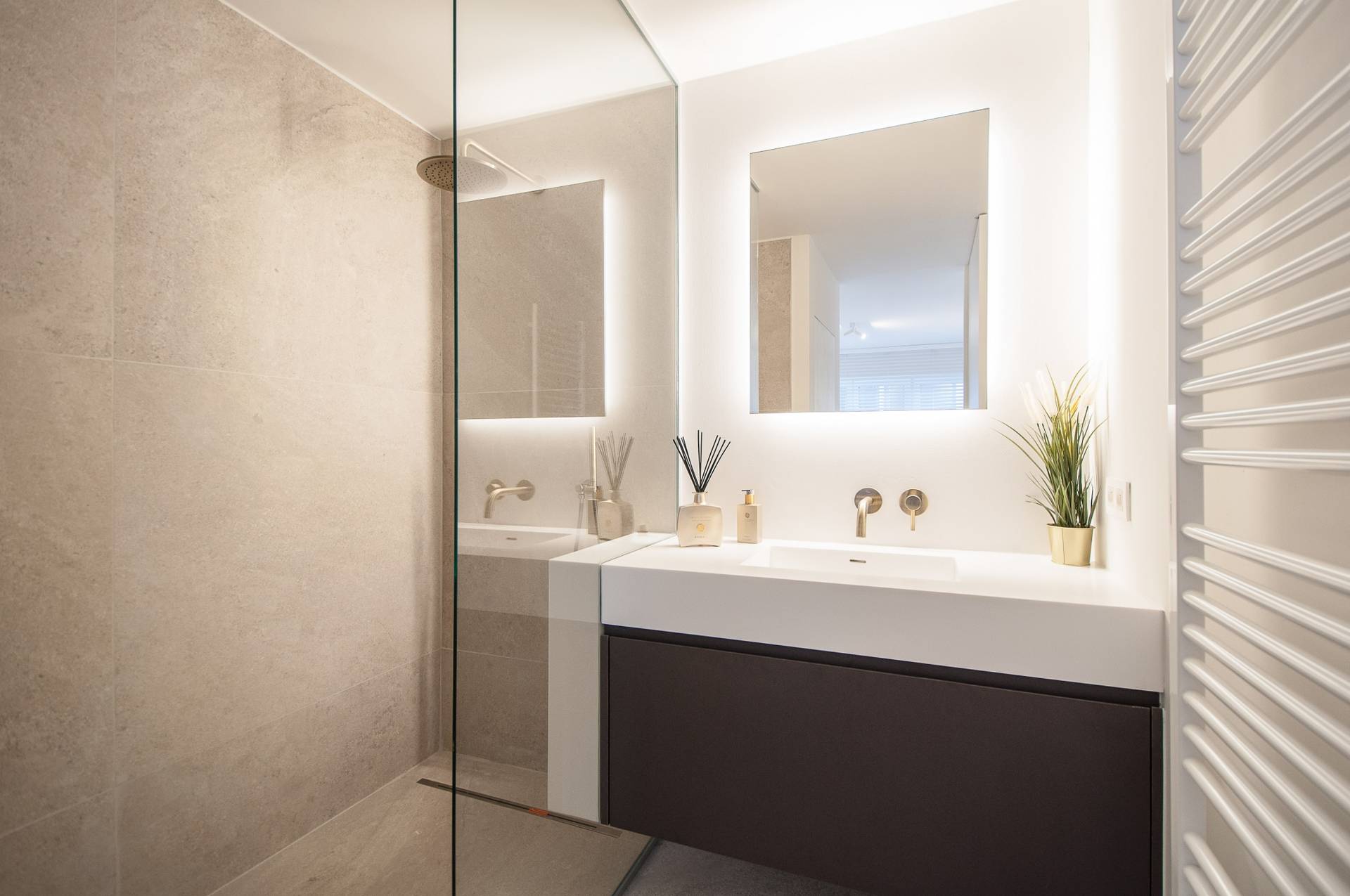 Er zijn 2 volwaardige slaapkamers, voorzien van tal van ingemaakte kasten. Beide kamers beschikken over een eigen luxueuze douchekamer. Afzonderlijke berging met aansluiting wasmachine.