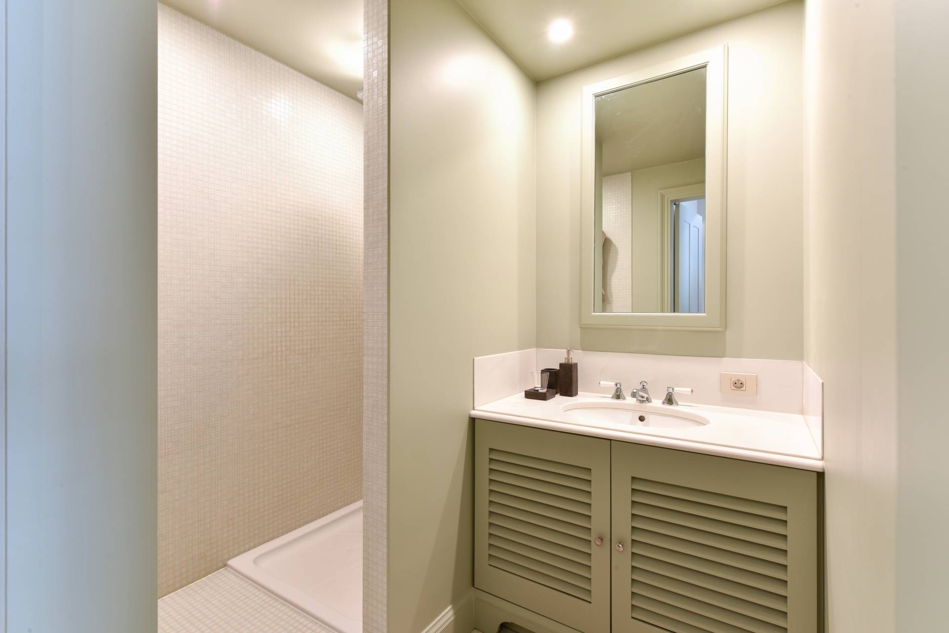 Het appartement werd ingericht door de gerenommeerde firma OBUMEX (ontwerp door interieurarchitecte Annick Colle), en afgewerkt met harmonieuze, stijlvolle en elegante materialen (natuursteen, lambrisering, verfijnde schilderstechniek...). Inclusief de houten lamellen, het BOSE-systeem en de televisie.