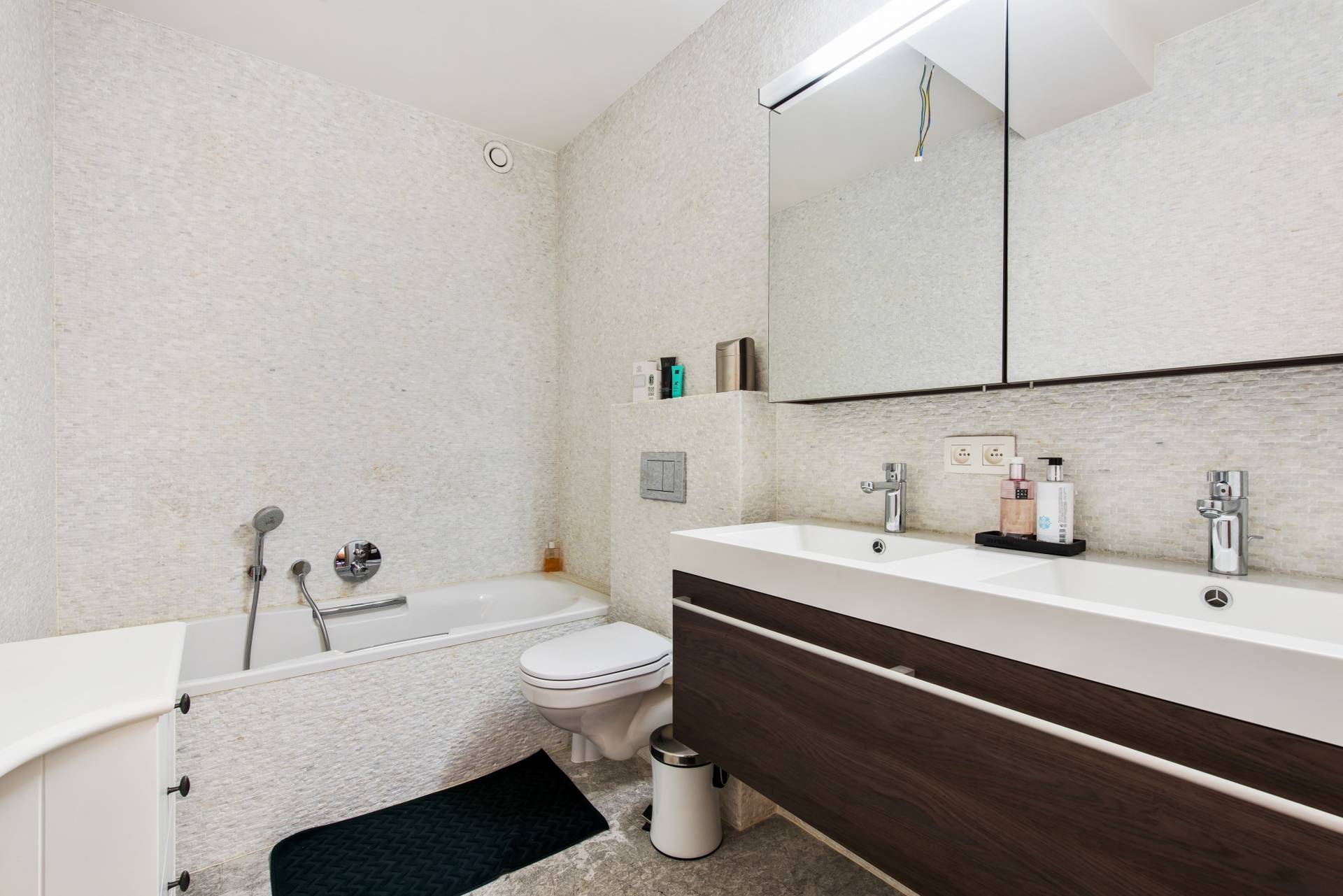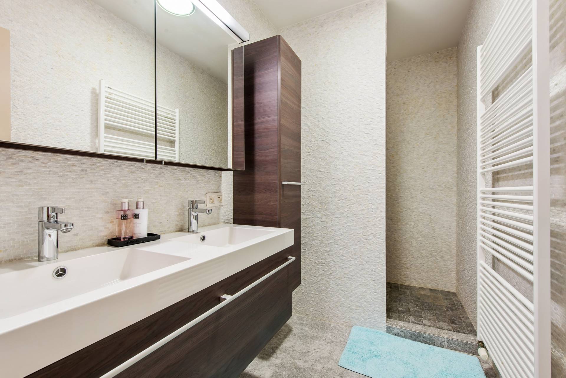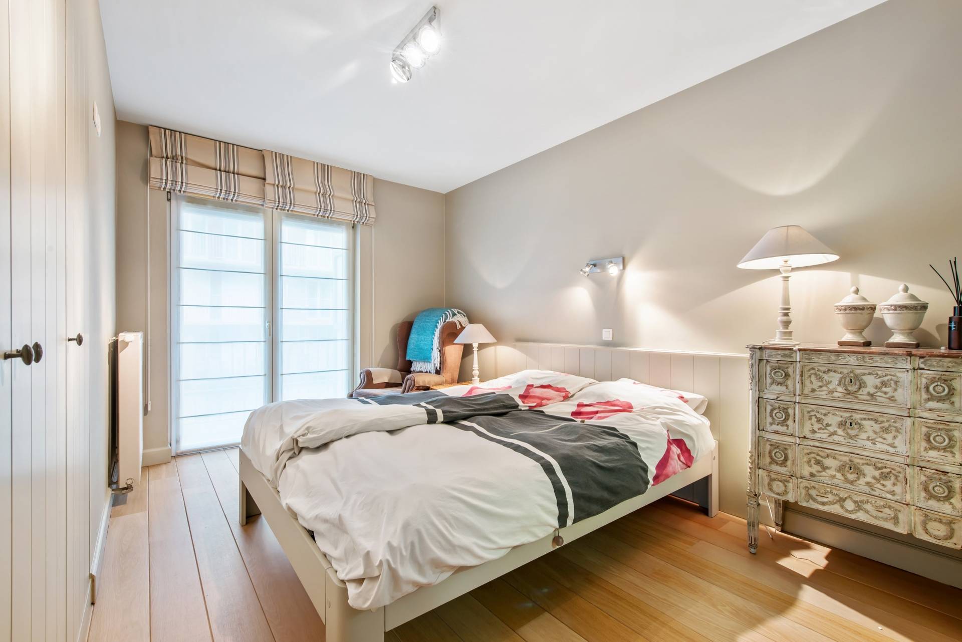 Nachthall naar slaapgedeelte: 2 Ruime slaapkamers met terras aan de achterzijde. 1 Volledig ingerichte badkamer met ligbad, dubbele lavabo en toilet. Afzonderlijke douchekamer.