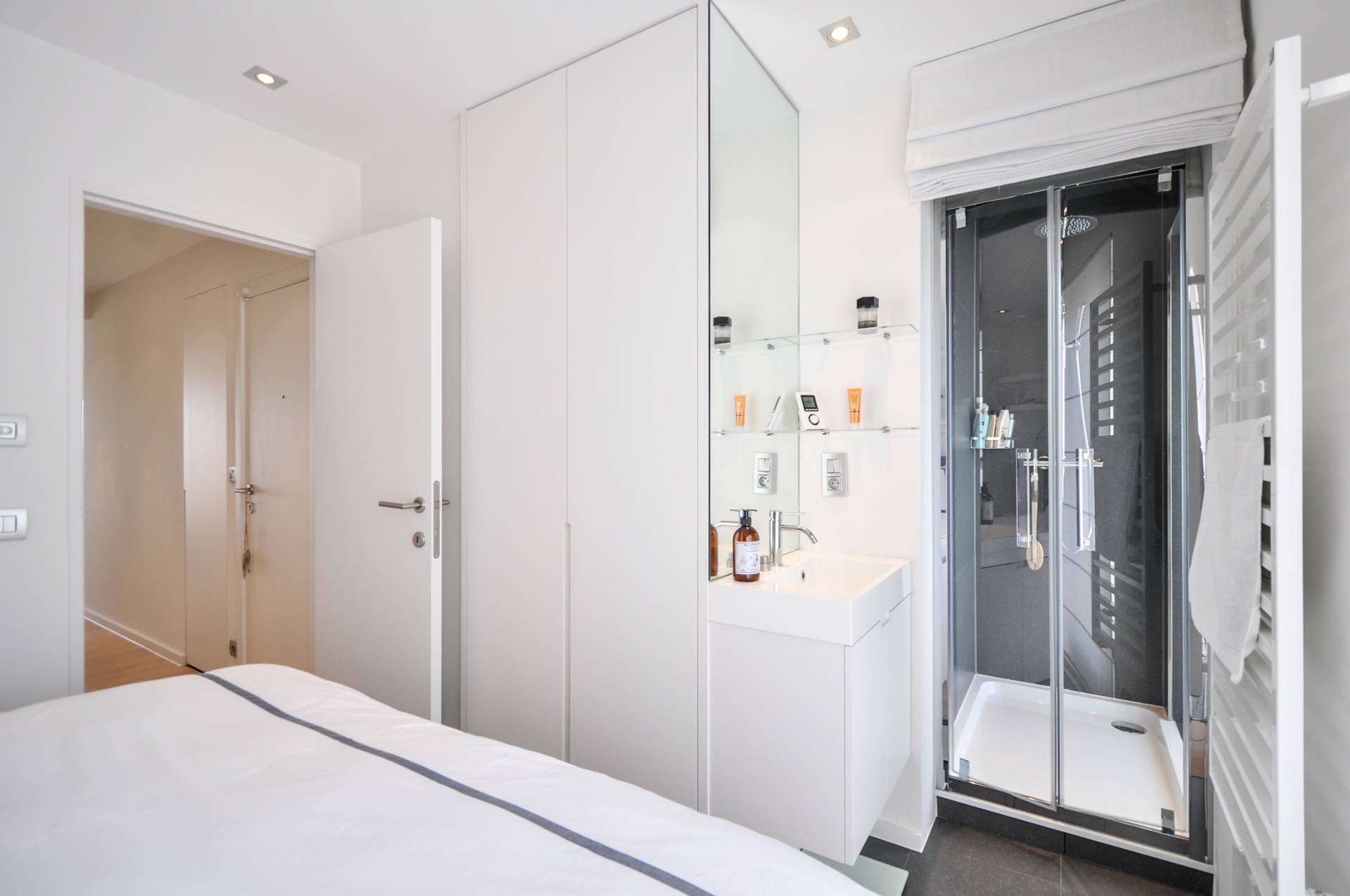 Er zijn 2 slaapkamers. De master bedroom geeft uit op een zeer groot terras achteraan. Doucheruimte.