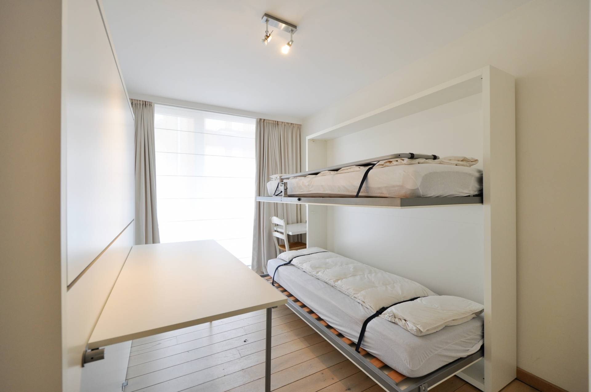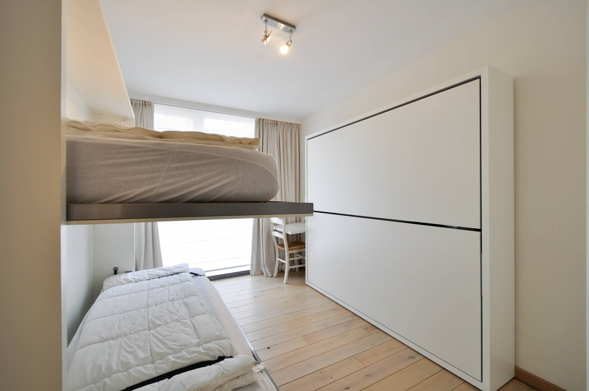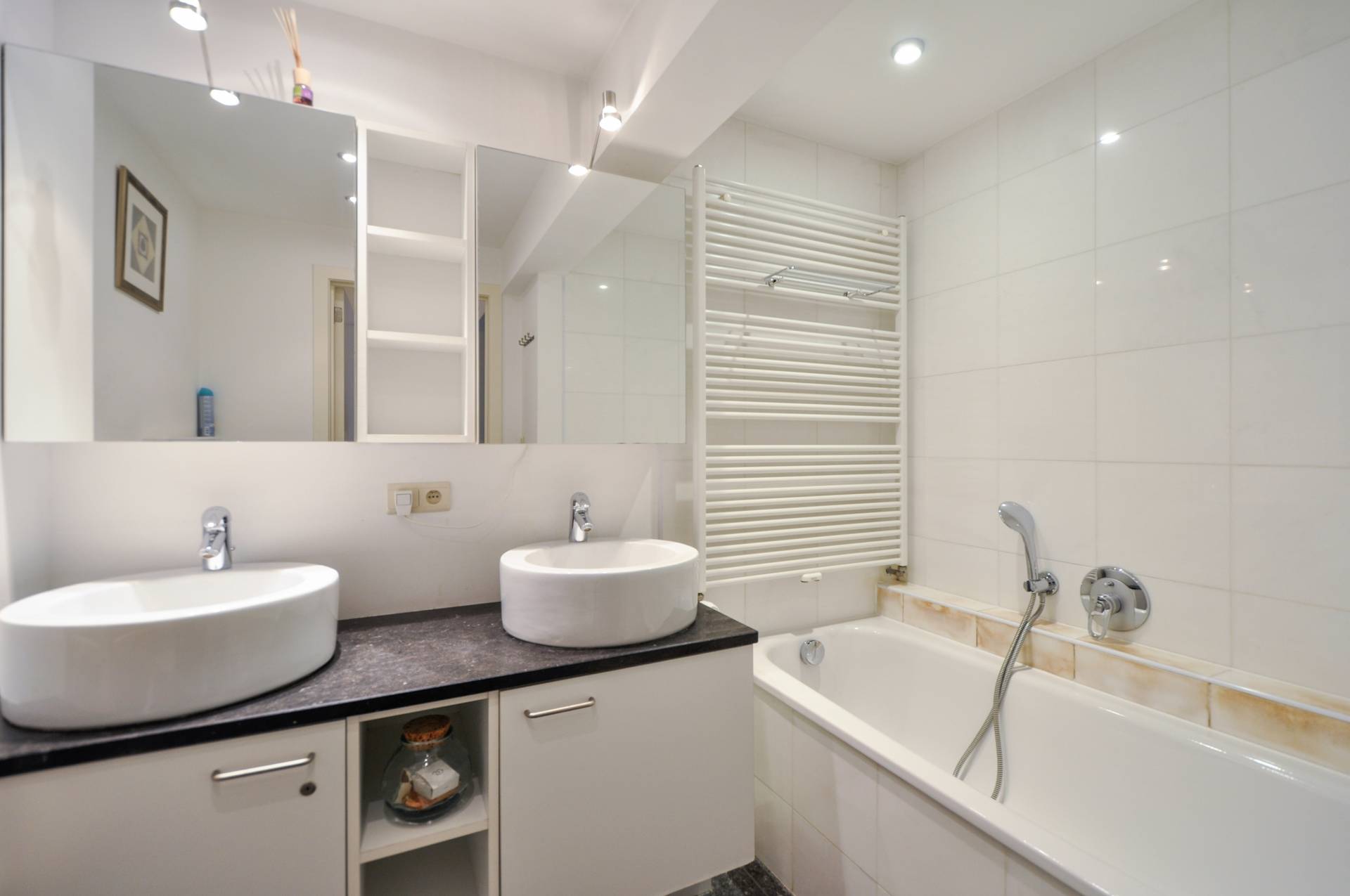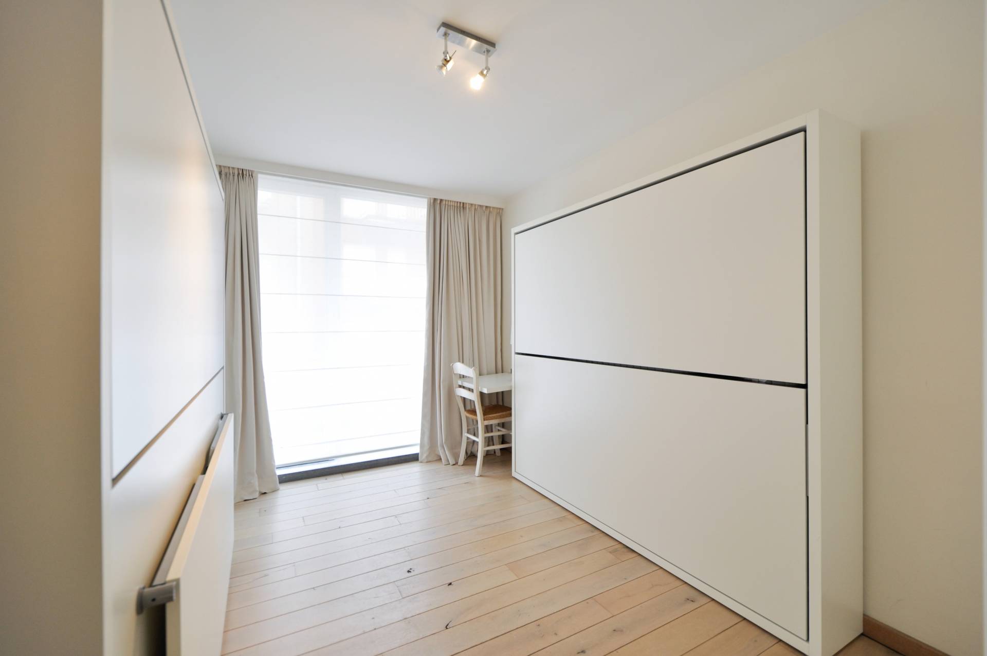 Overal praktische ingemaakte kasten. Luxueuze badkamer met bad, dubbele lavabo en toilet. Douchekamer met douche en lavabo. Een pareltje voor diegenen die een verfijnde afwerking weten te appreciëren! Mogelijkheid tot het aankopen van een garage in de onmiddellijke omgeving!