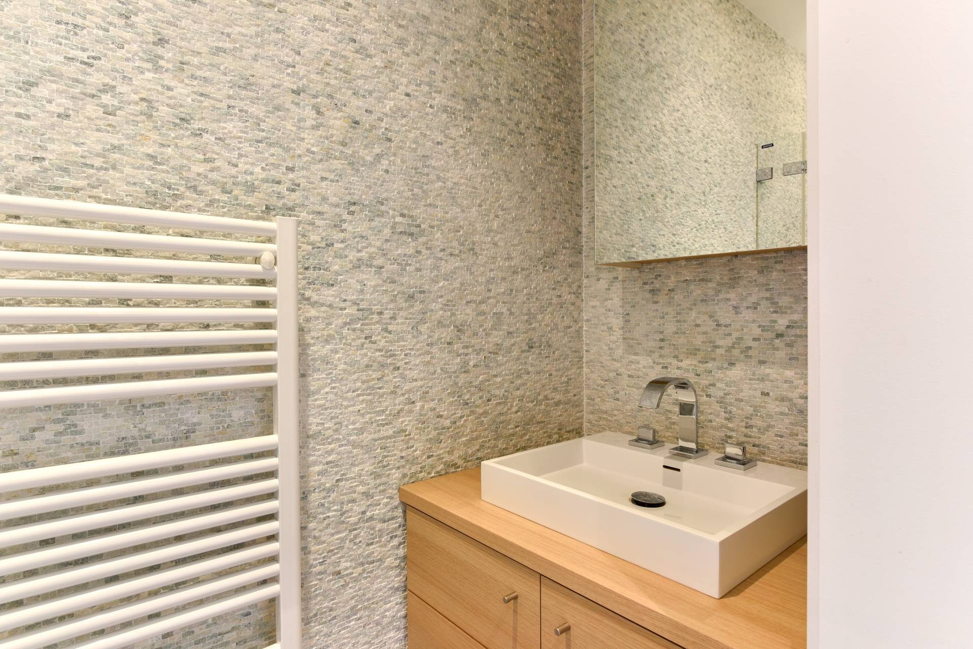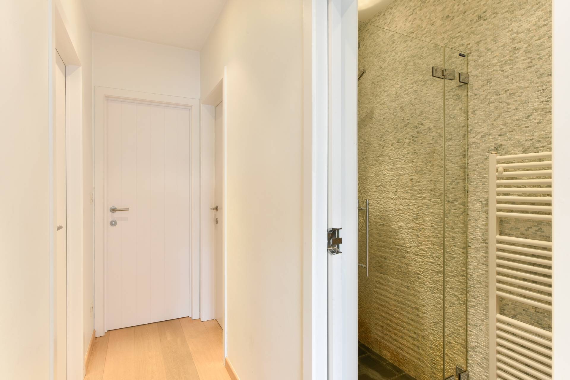 Samenstelling: Inkom met vestiaire en toilet. Ruime woonkamer met deurvensters openend op mooi terras met mooi zijdelings zeezicht. Aangename afzonderlijke keuken met aparte berging. 3 aangename, ruime slaapkamers waarvan 1 met luxueuze badkamer. Afzonderlijke douchekamer met lavabo.