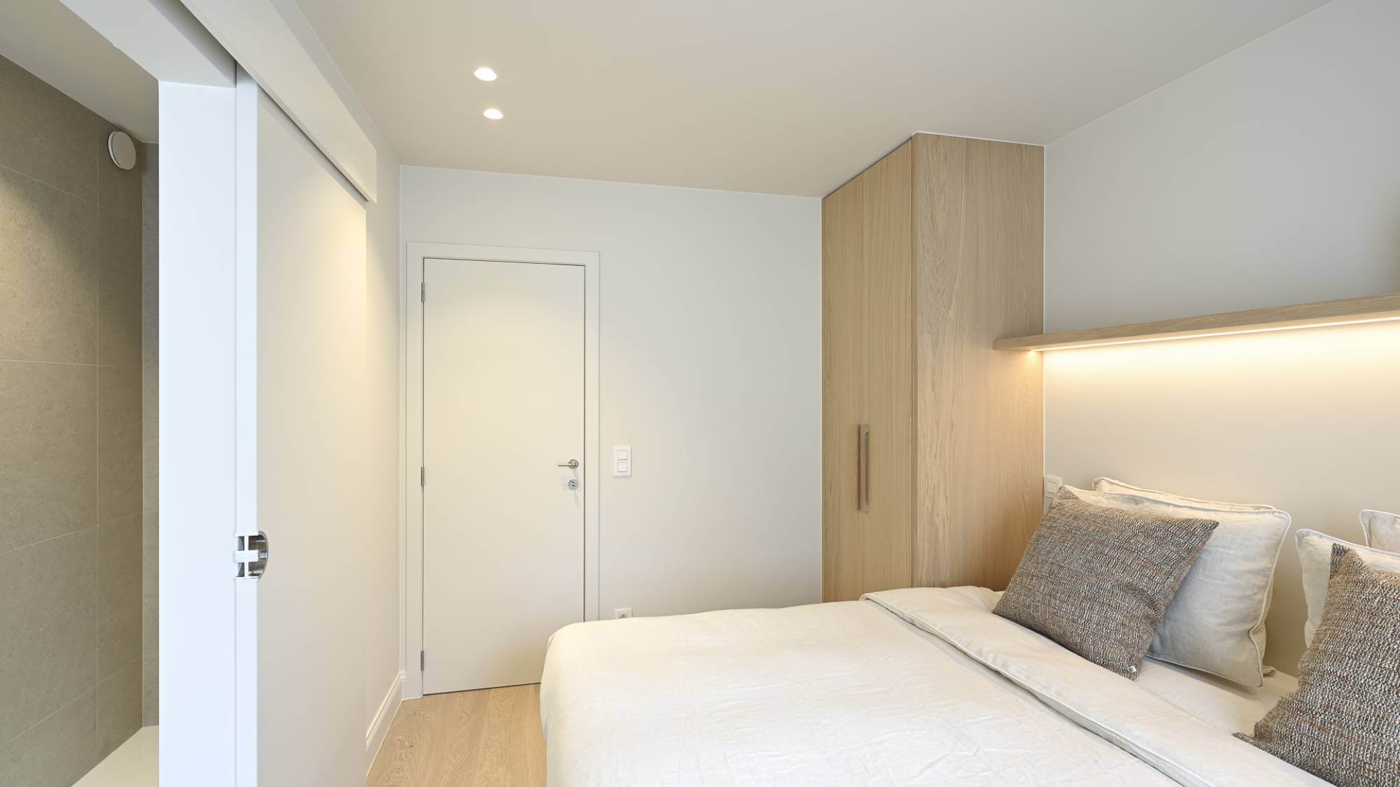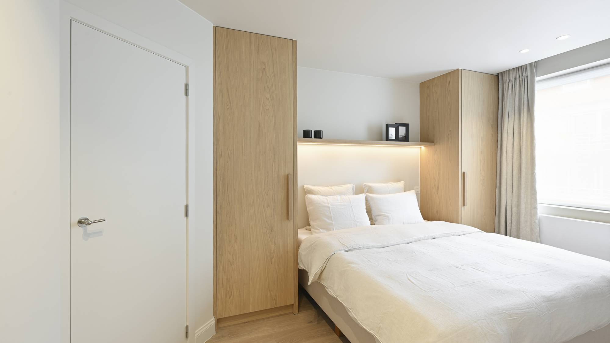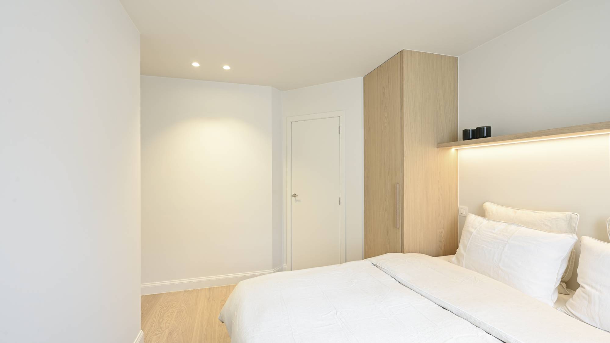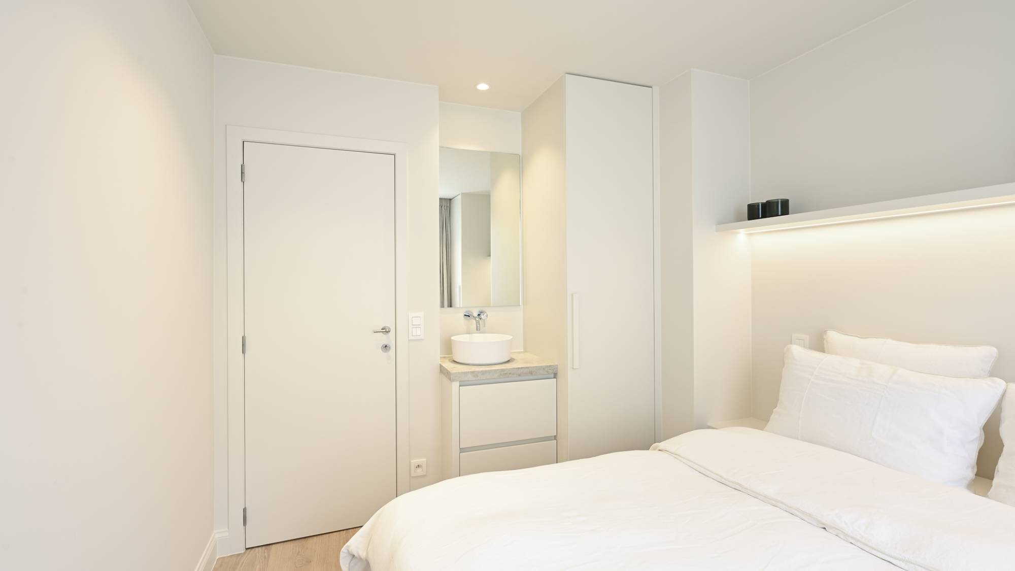 Ook beschikken alle kamers veel ingemaakte kasten (met LED-verlichting) en een mooie parketvloer.