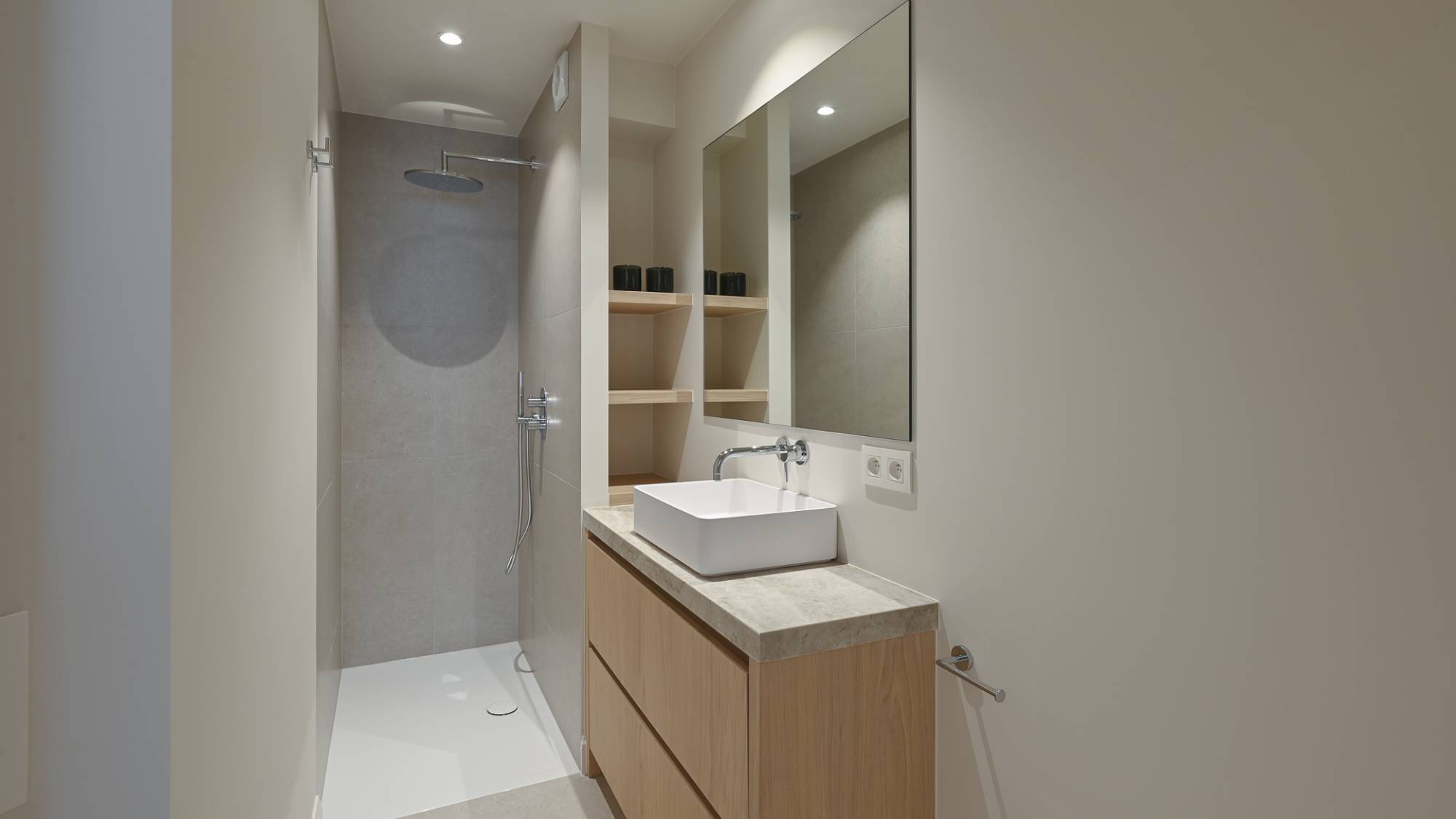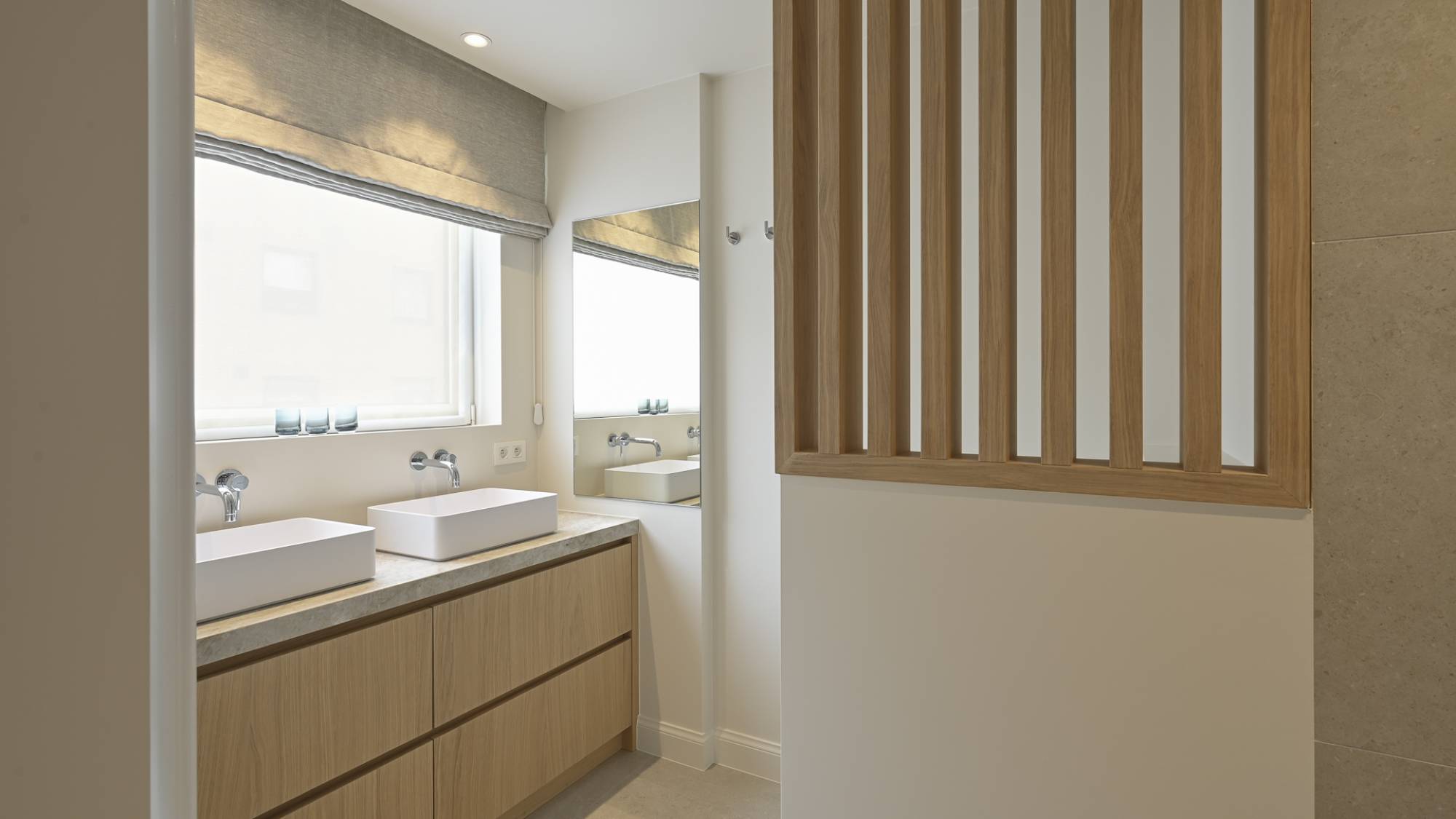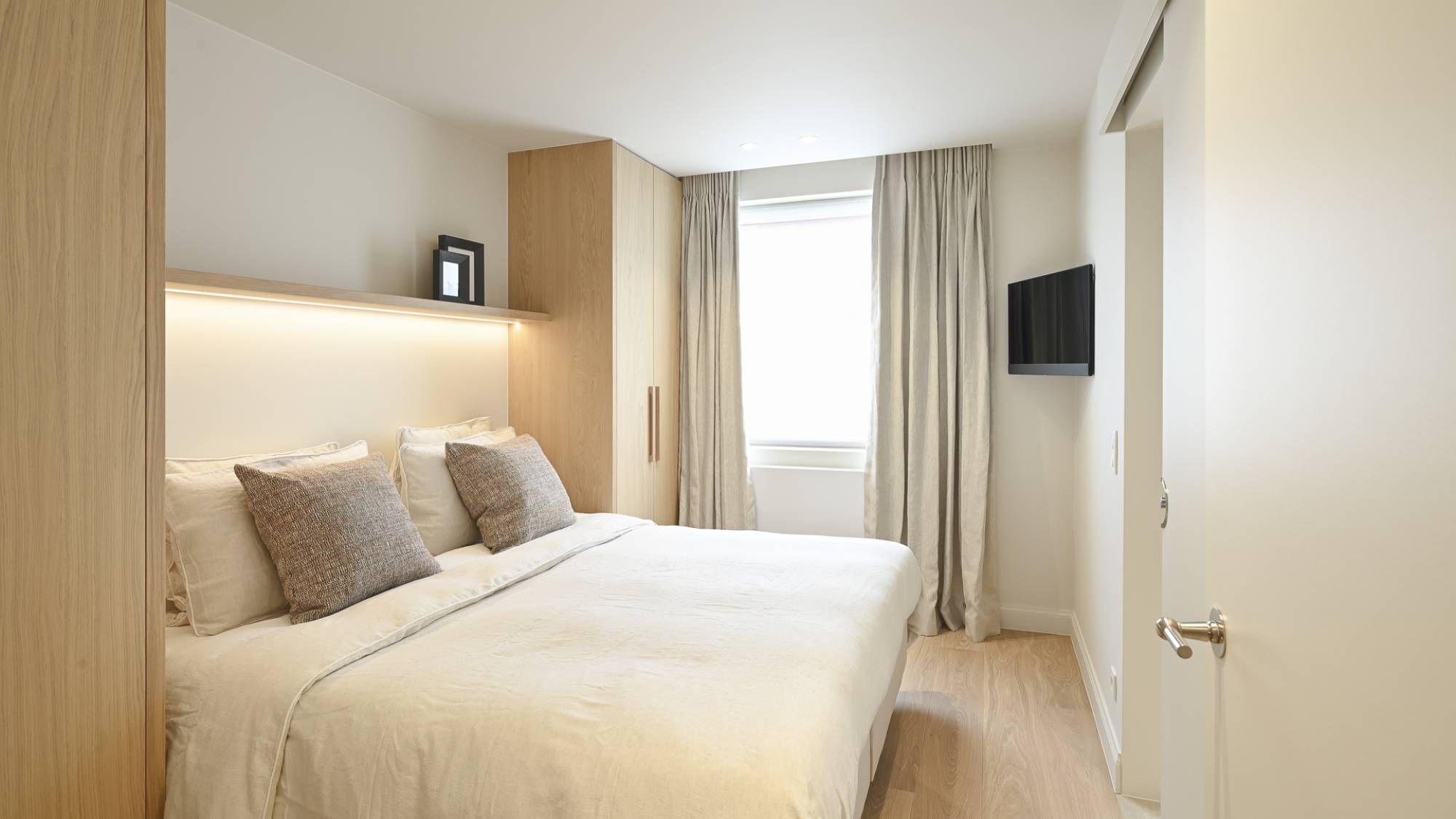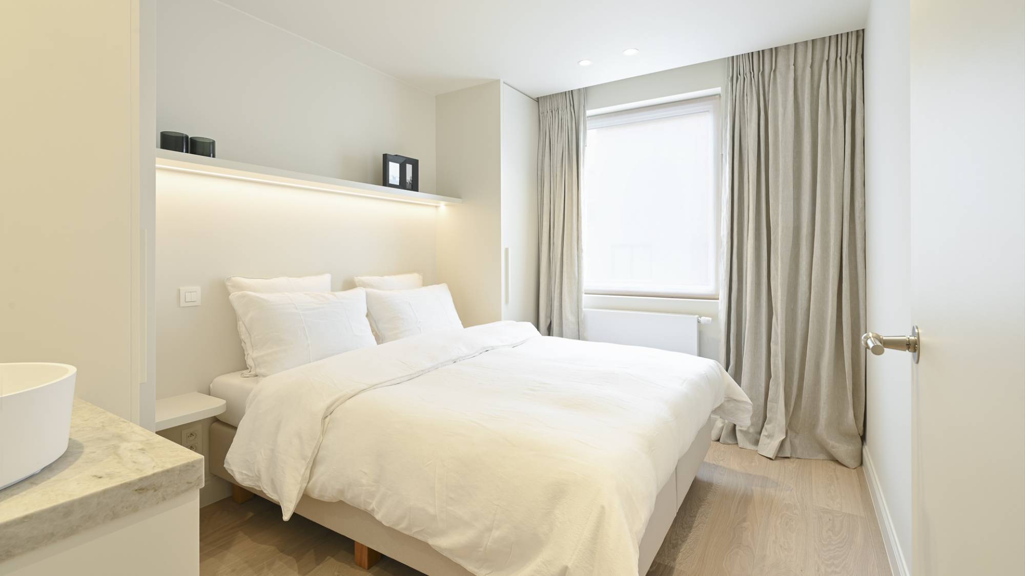 Ook beschikken alle kamers veel ingemaakte kasten (met LED-verlichting) en een mooie parketvloer.