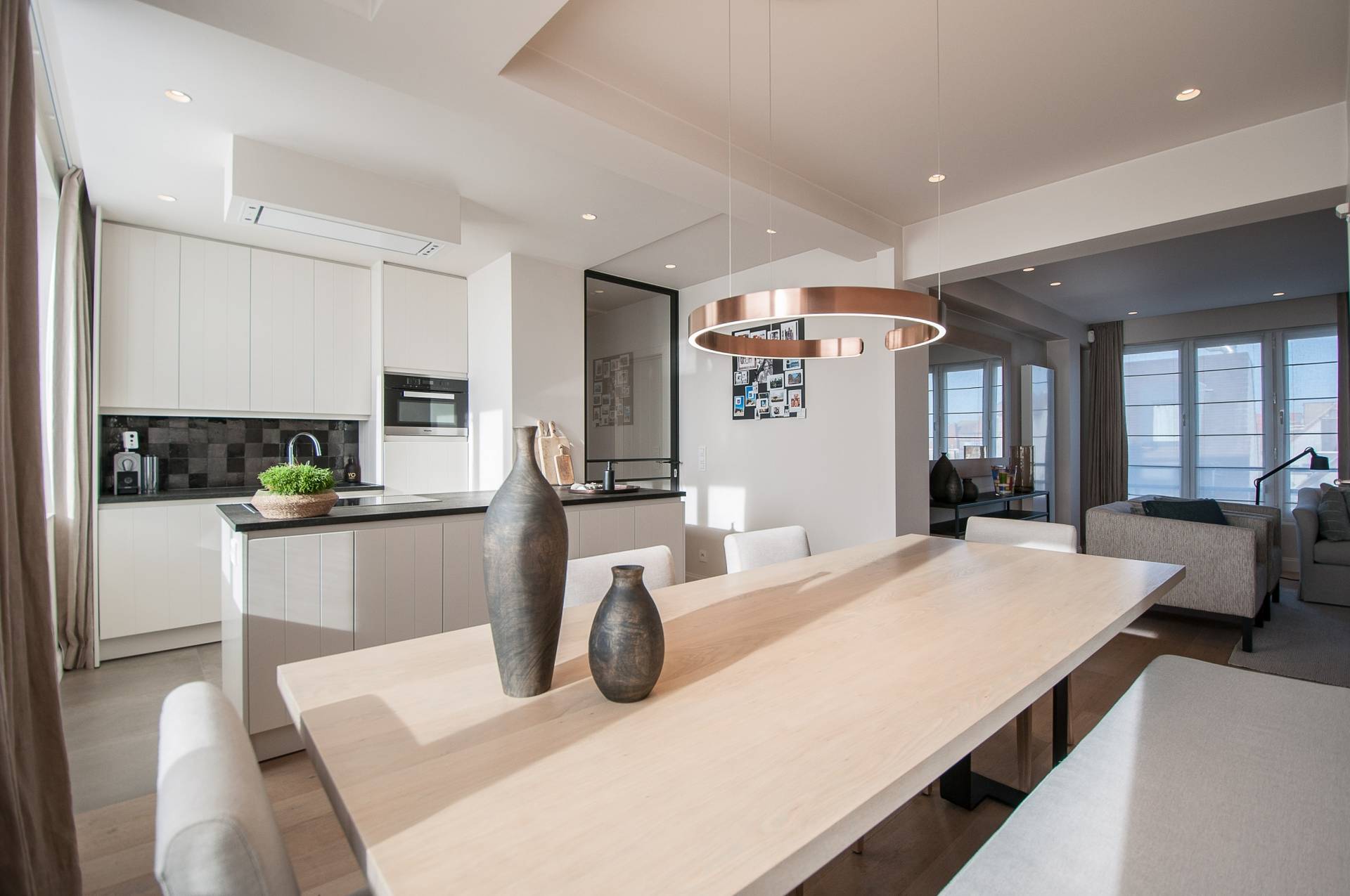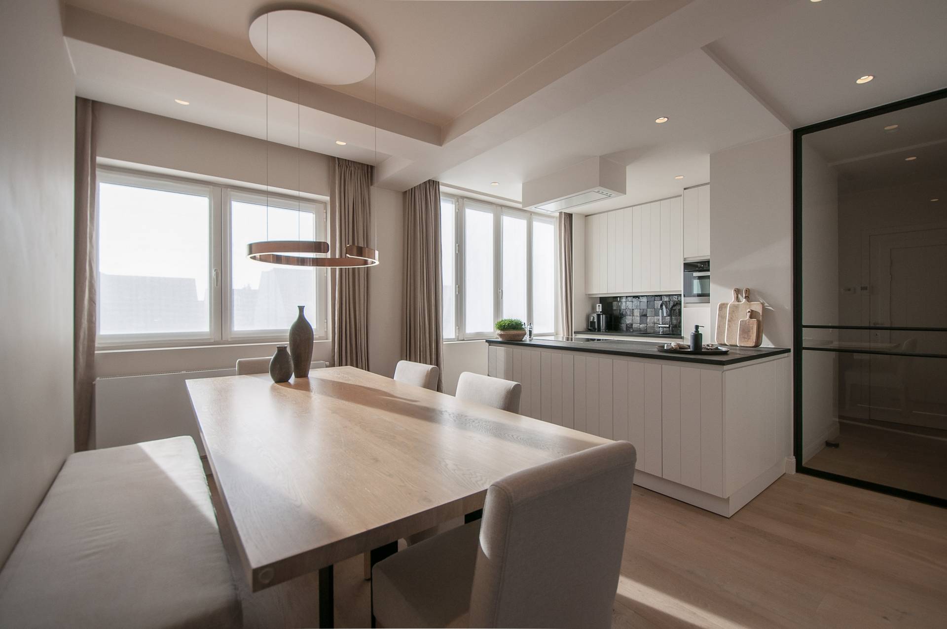 Het appartement werd recent volledig gerenoveerd, met tijdloze, hedendaagse, en kwalitatief hoogstaande materialen! Er zijn automatische rolluiken aanwezig, evenals een alarmsysteem. Het appartement wordt GEMEUBILEERD verkocht!