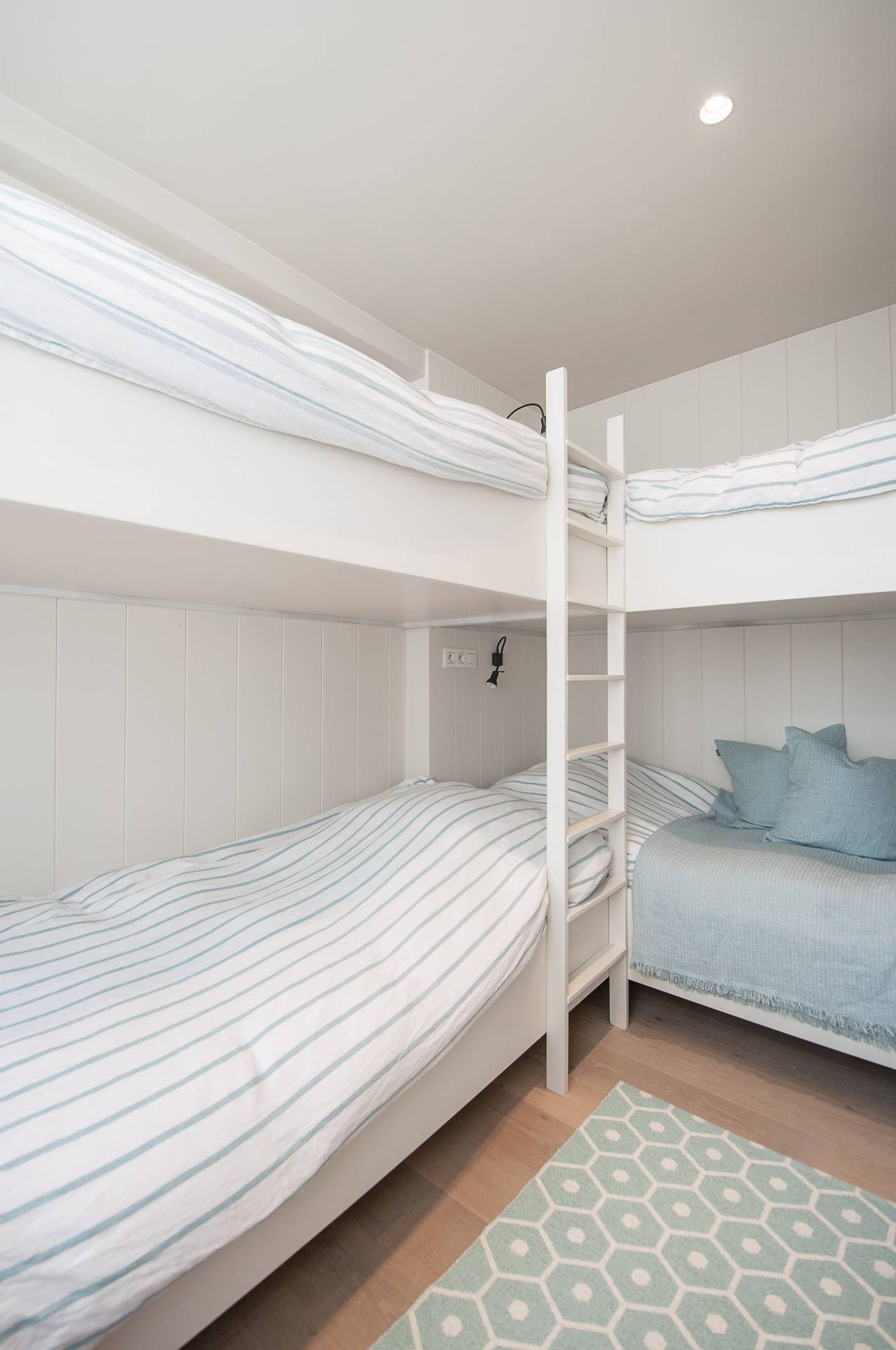 Er zijn 3 slaapkamers met tal van ingemaakte kasten. Er zijn 2 volwaardige slaapkamers voor een dubbel bed, en er is 1 slaapkamer met 2 stapelbedden (slaapplaats voor 4 personen!), met een doucheruimte. Mooi zijdelings zeezicht!!