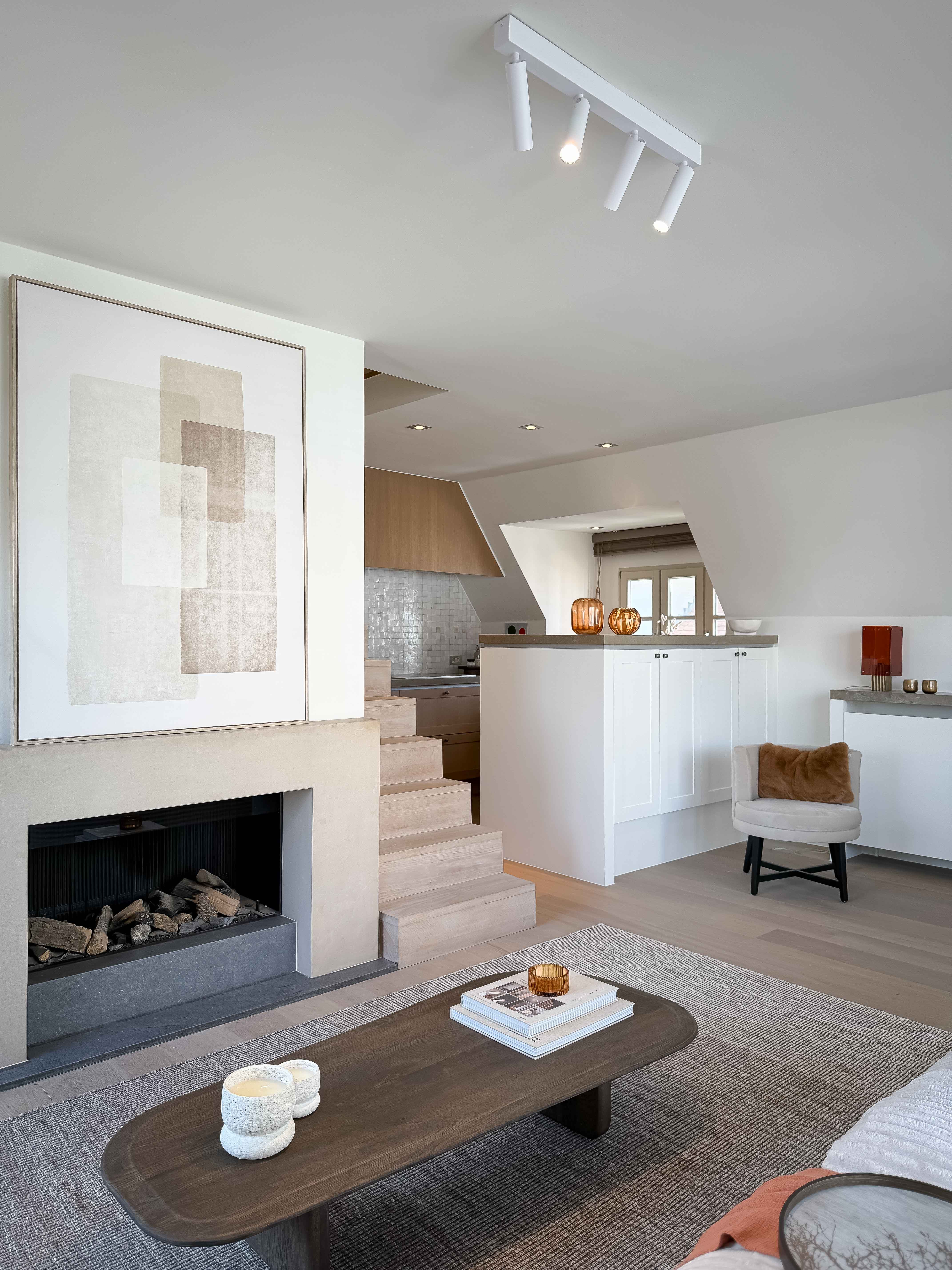 Het appartement verwelkomt u met een royale inkomhal voorzien van vestiaire en gastentoilet. De gezellige leefruimte met open haard geeft uit op een terras met panoramisch zeezicht, een perfecte plek om te genieten van de omgeving. De open keuken en de elegante eethoek in de erker bieden een adembenemend uitzicht op de zee, wat dit appartement extra karakter en lichtinval geeft.