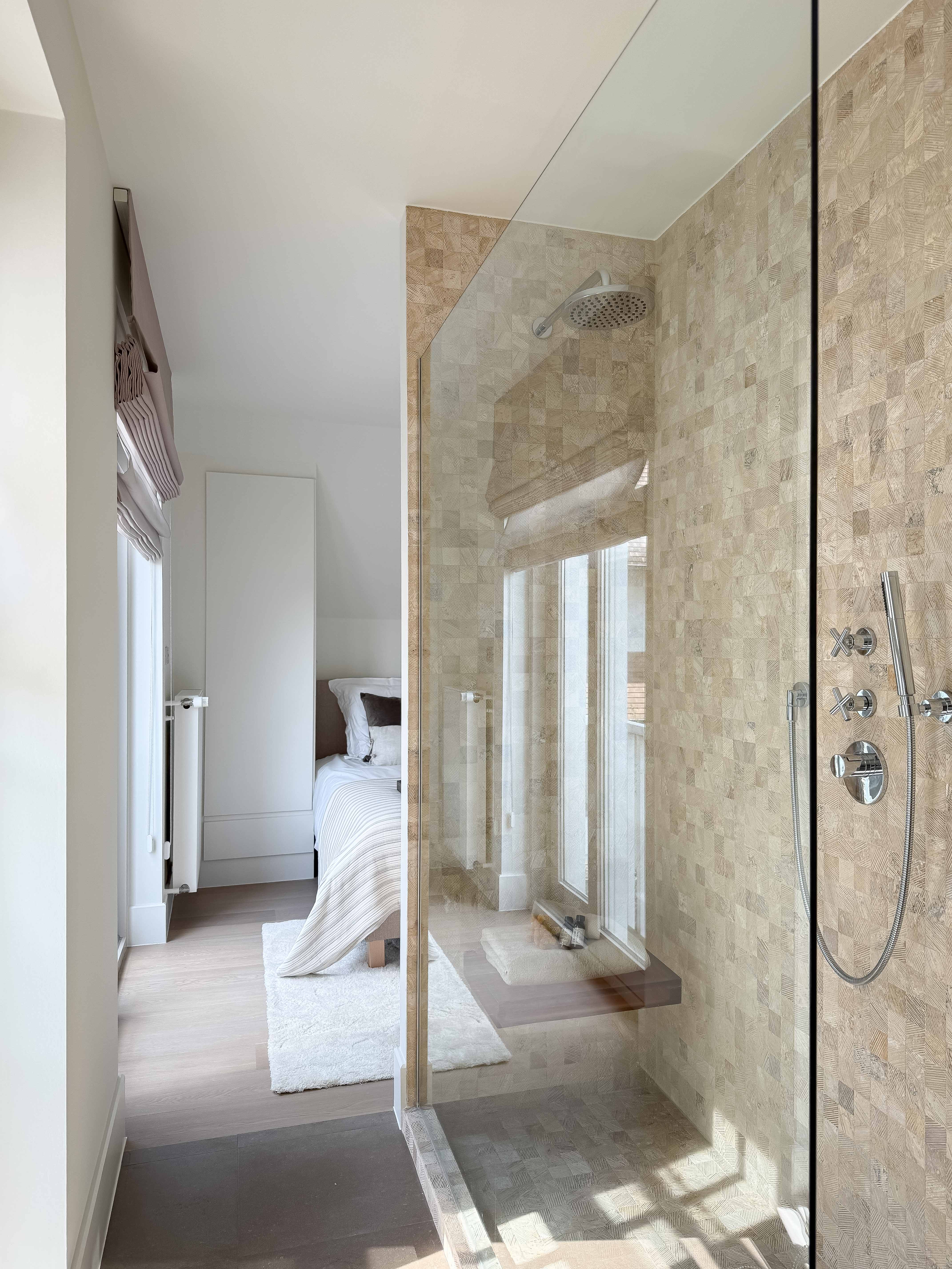 Op hetzelfde niveau bevindt zich een ruime slaapkamer met luxueus afgewerkte badkamer zich bevindt. De tweede verdieping biedt nog eens 2 slaapkamers, een aparte douchekamer en twee extra gastentoiletten, waardoor het appartement zeer geschikt is voor meerdere bewoners of gasten.