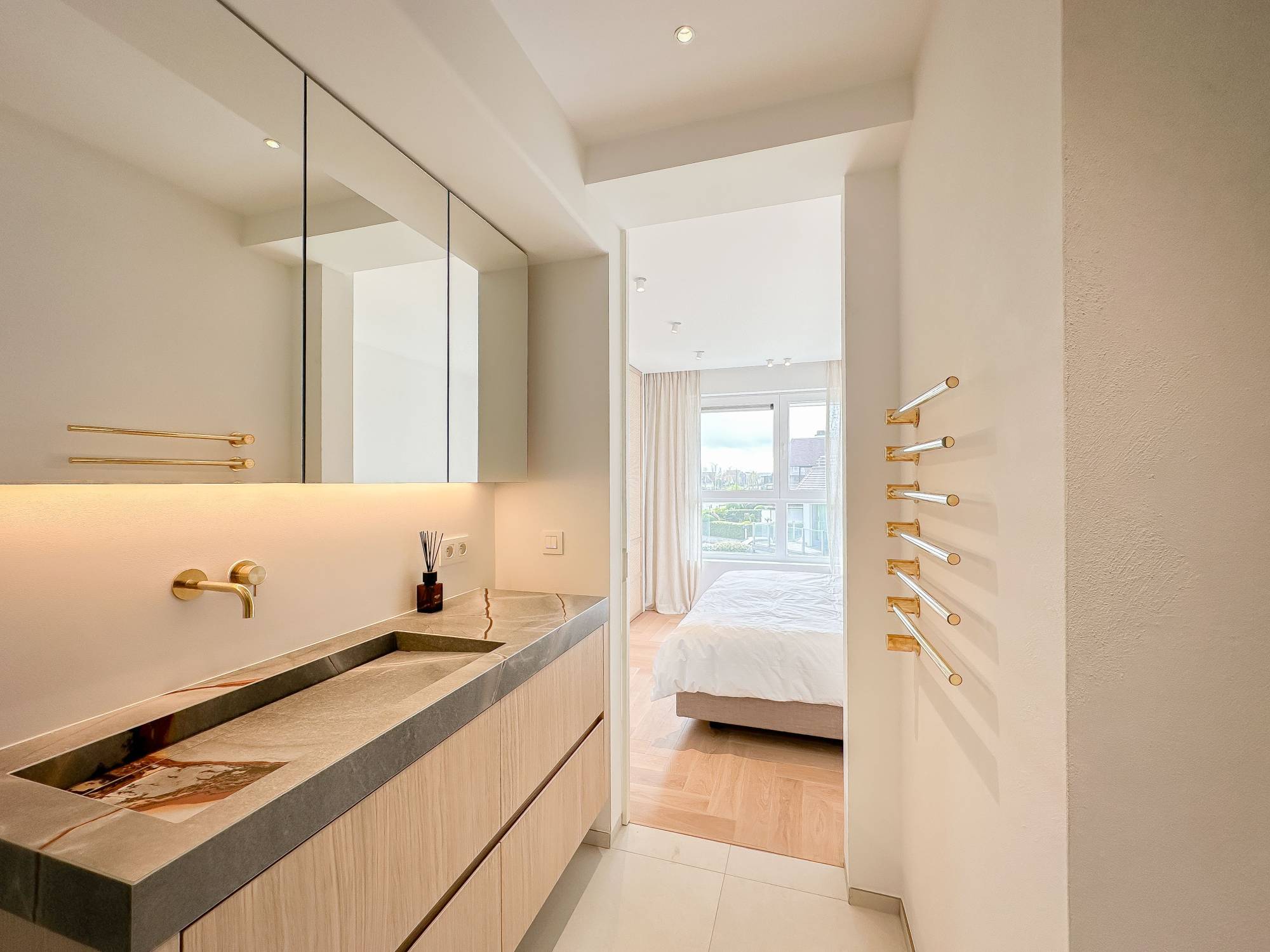 Indeling: Ruime inkomhal met vestiaire en gastentoilet. De lichtrijke woonkamer zorgt voor een gevoel van ruimte dankzij de vele ramen. De eetkamer biedt een prachtig uitzicht. De open, volledig uitgeruste keuken komt uit op een ruim terras. Er is ook een berging aanwezig. Het appartement beschikt over 3 volwaardige slaapkamers, waarvan de hoofdslaapkamer een luxueus ingerichte badkamer heeft. De andere 2 slaapkamers delen een doucheruimte.