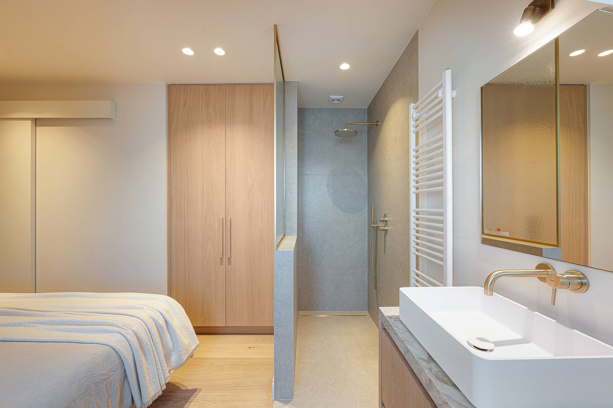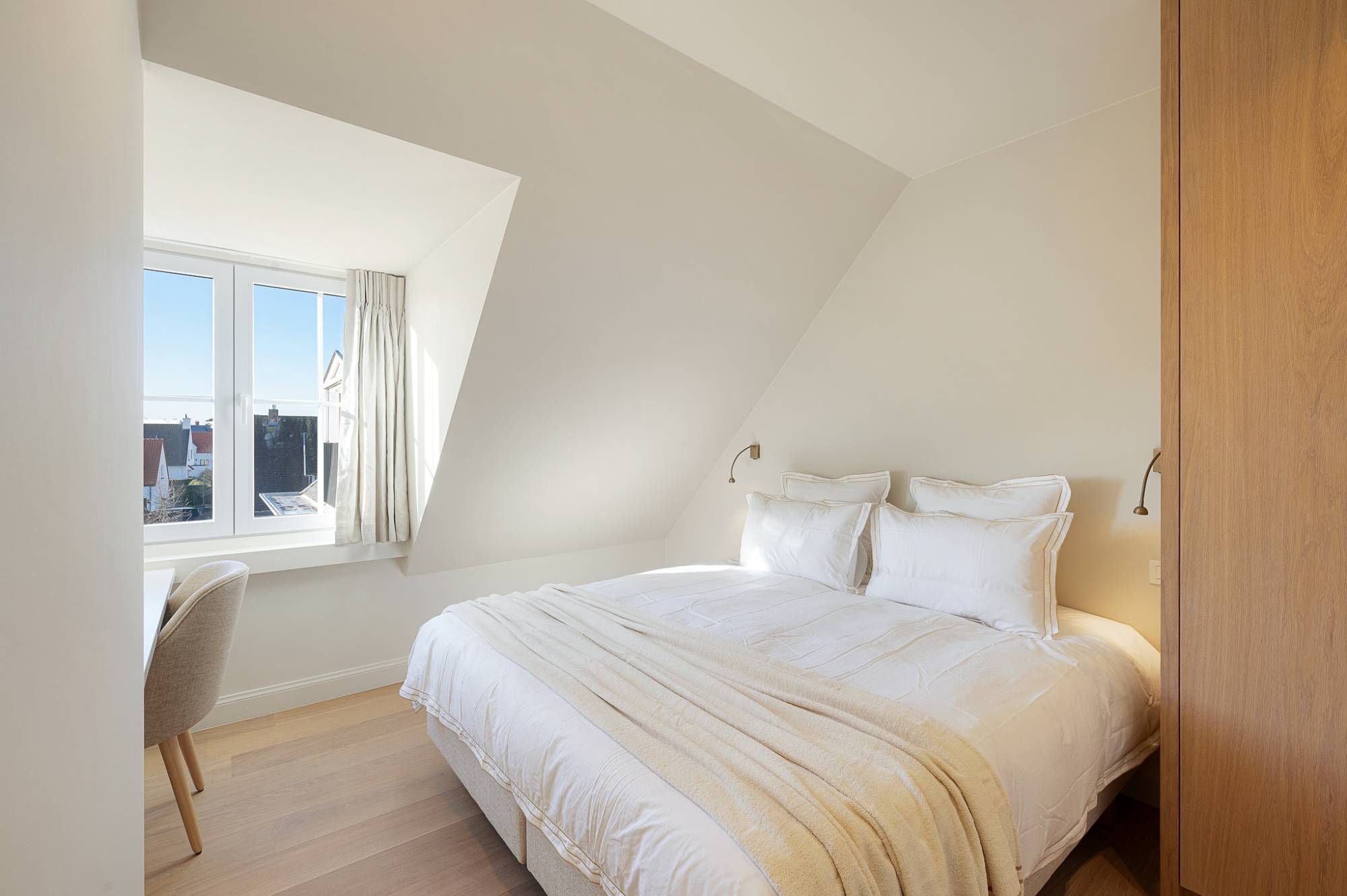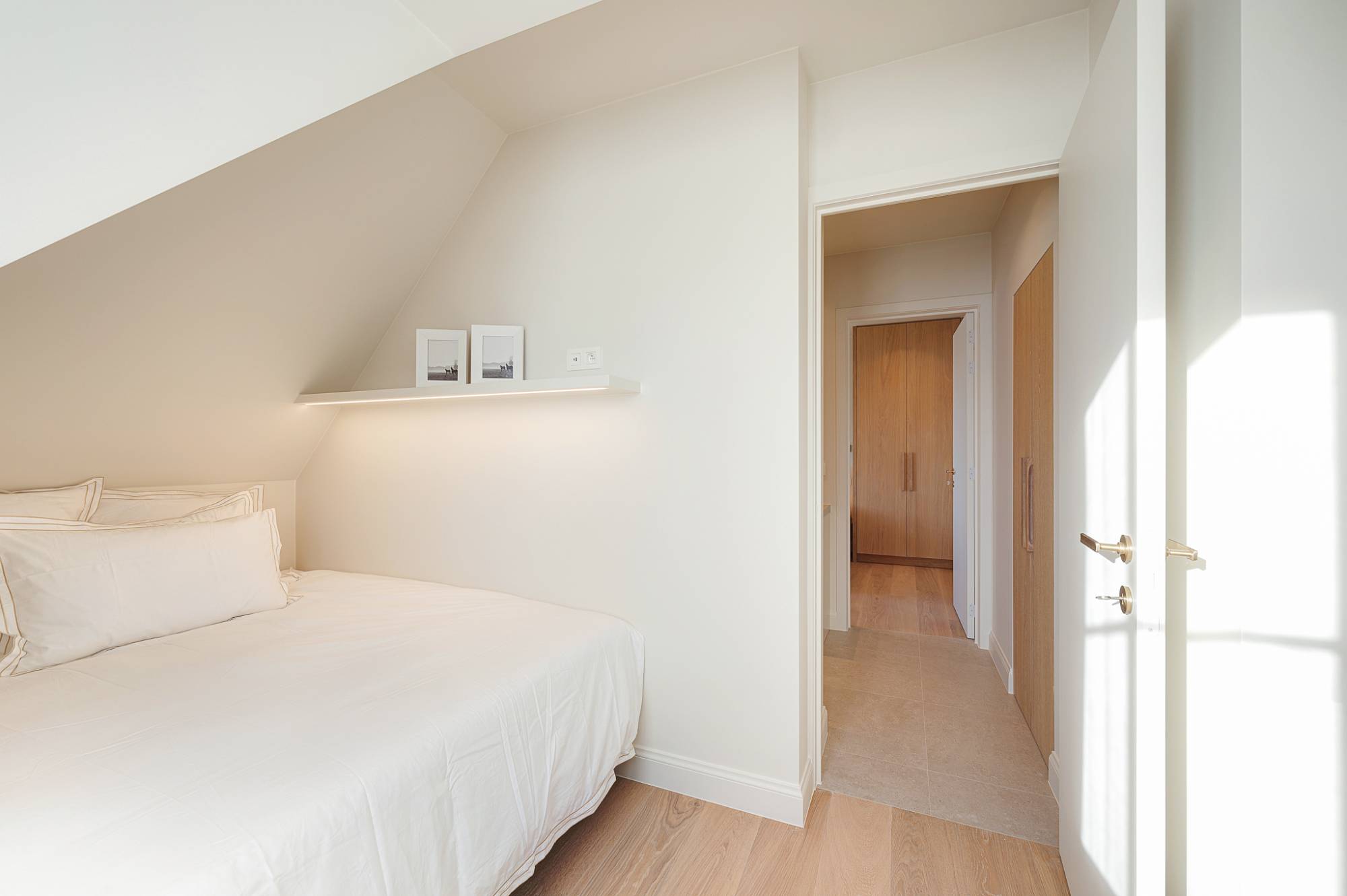 Verder beschikt het appartement over drie volwaardige slaapkamers, elk voorzien van maatwerk kasten, en twee elegant afgewerkte douchekamers.