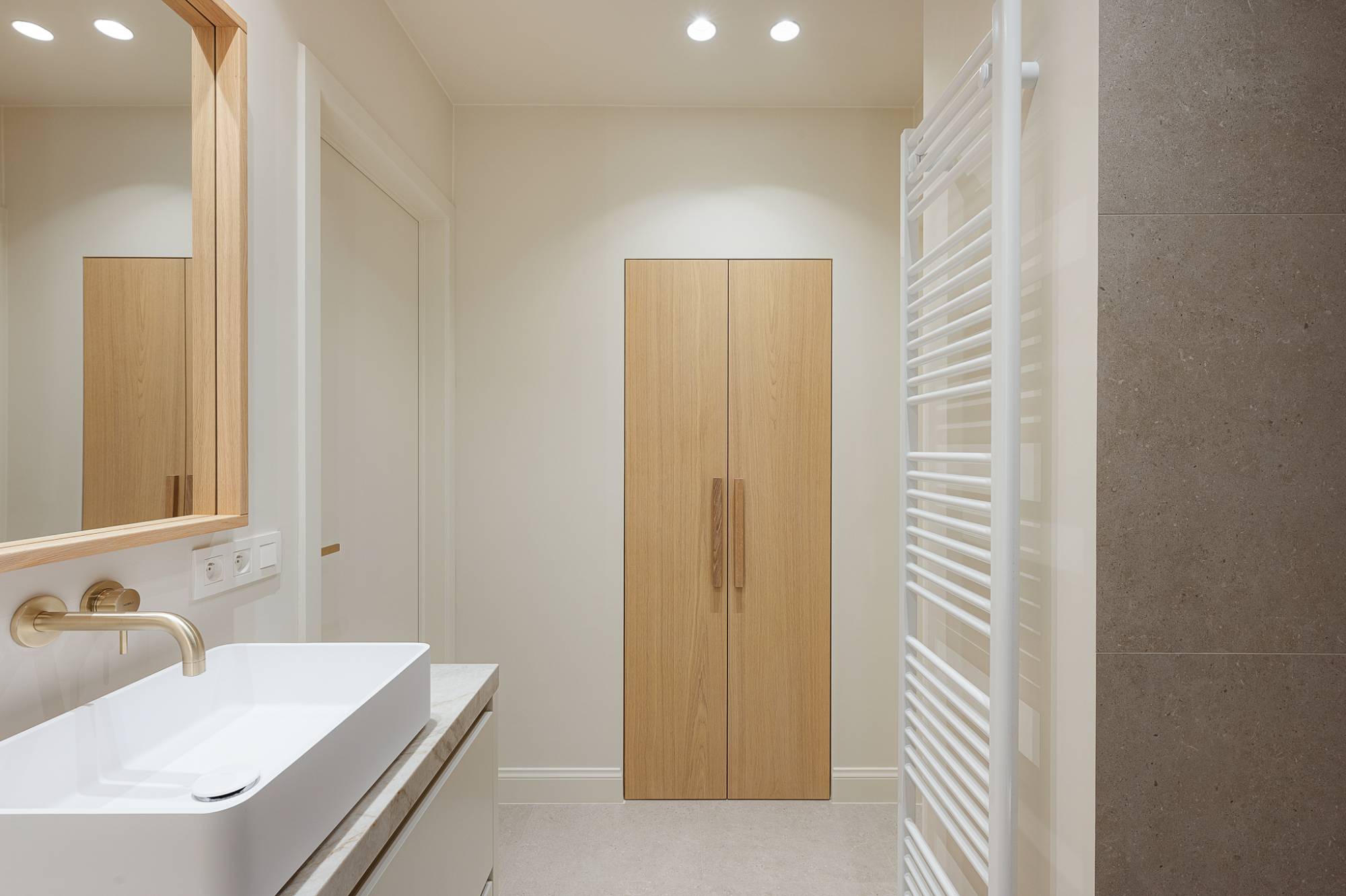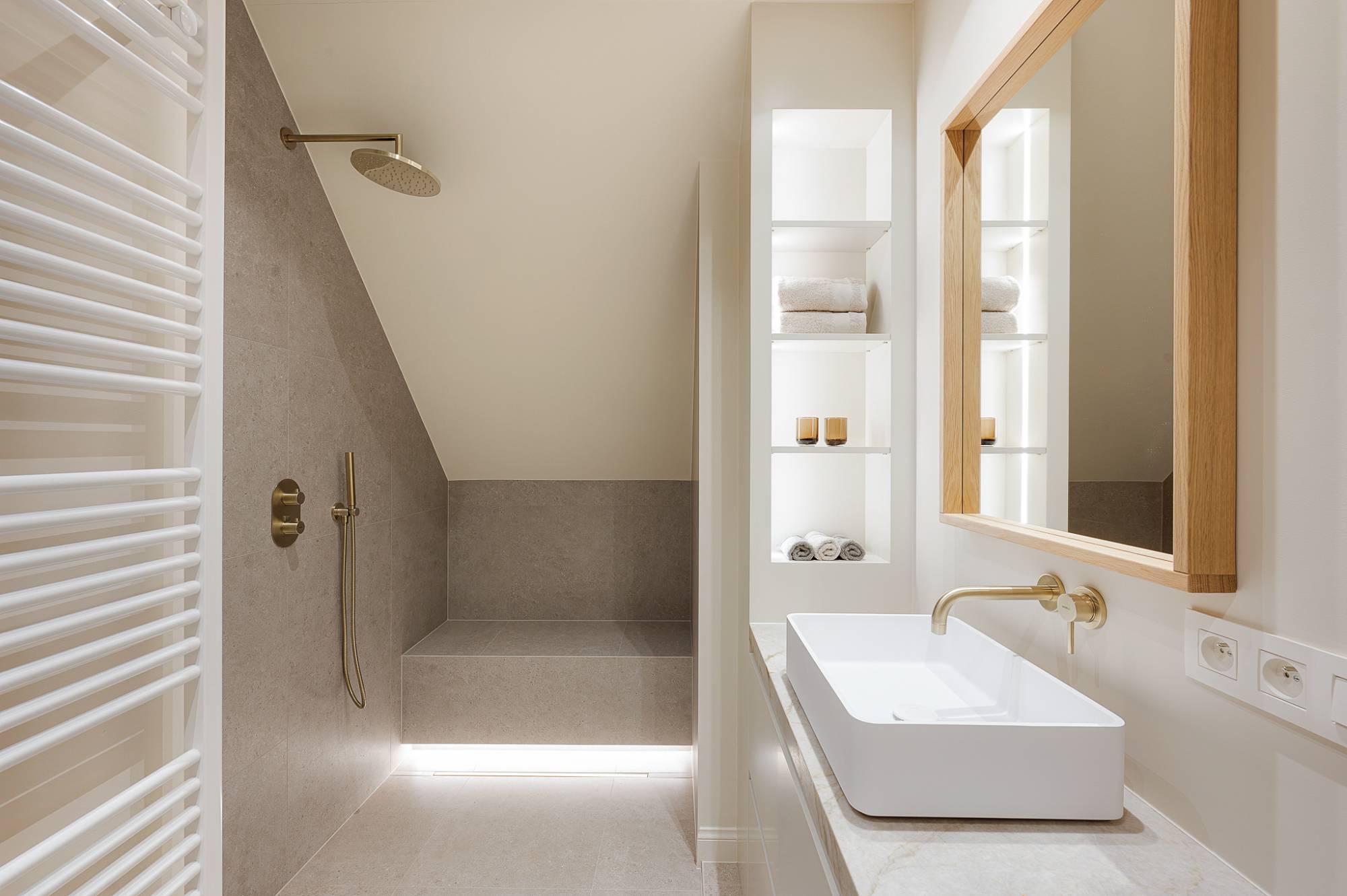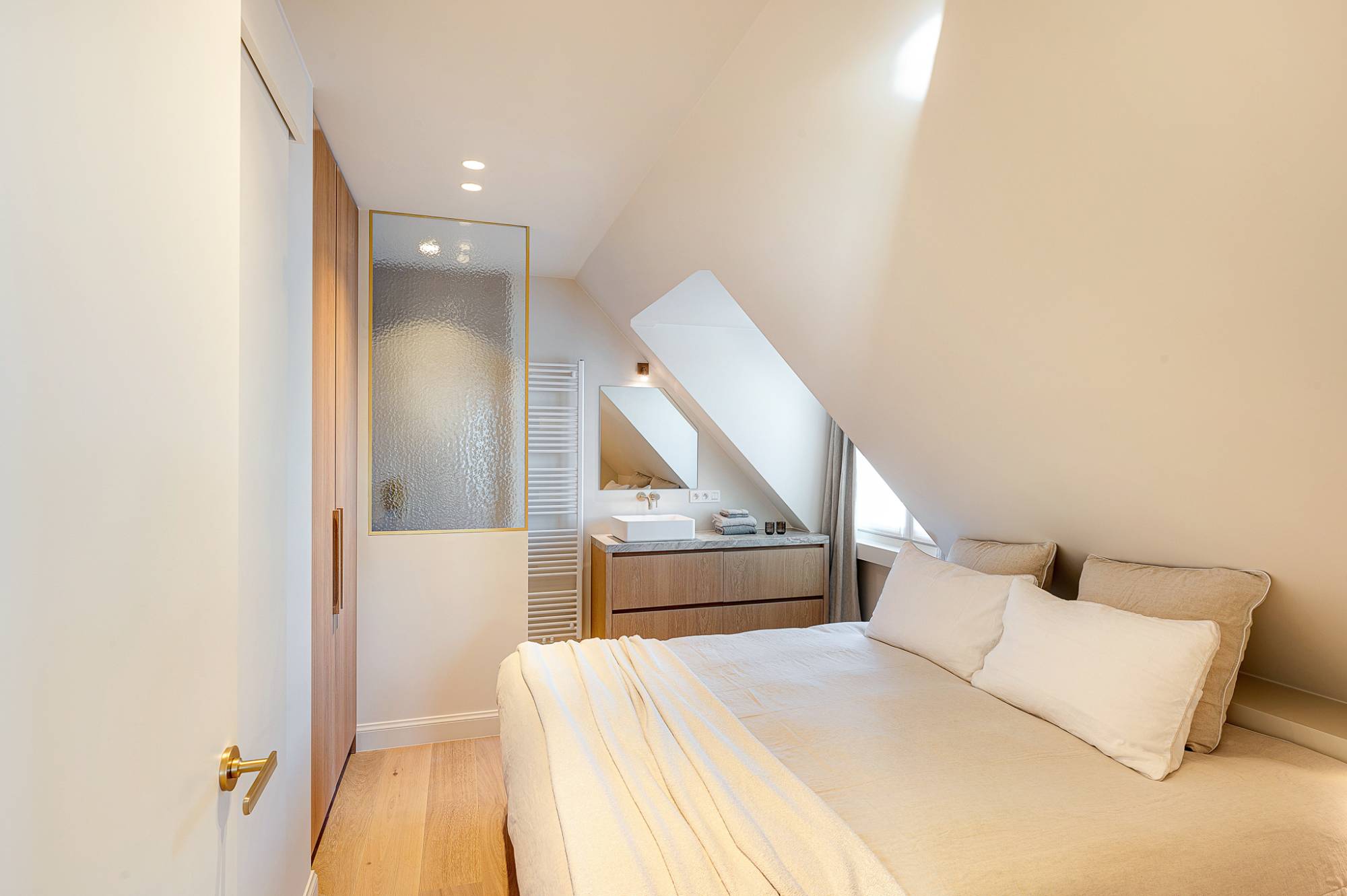 Verder beschikt het appartement over drie volwaardige slaapkamers, elk voorzien van maatwerk kasten, en twee elegant afgewerkte douchekamers.
