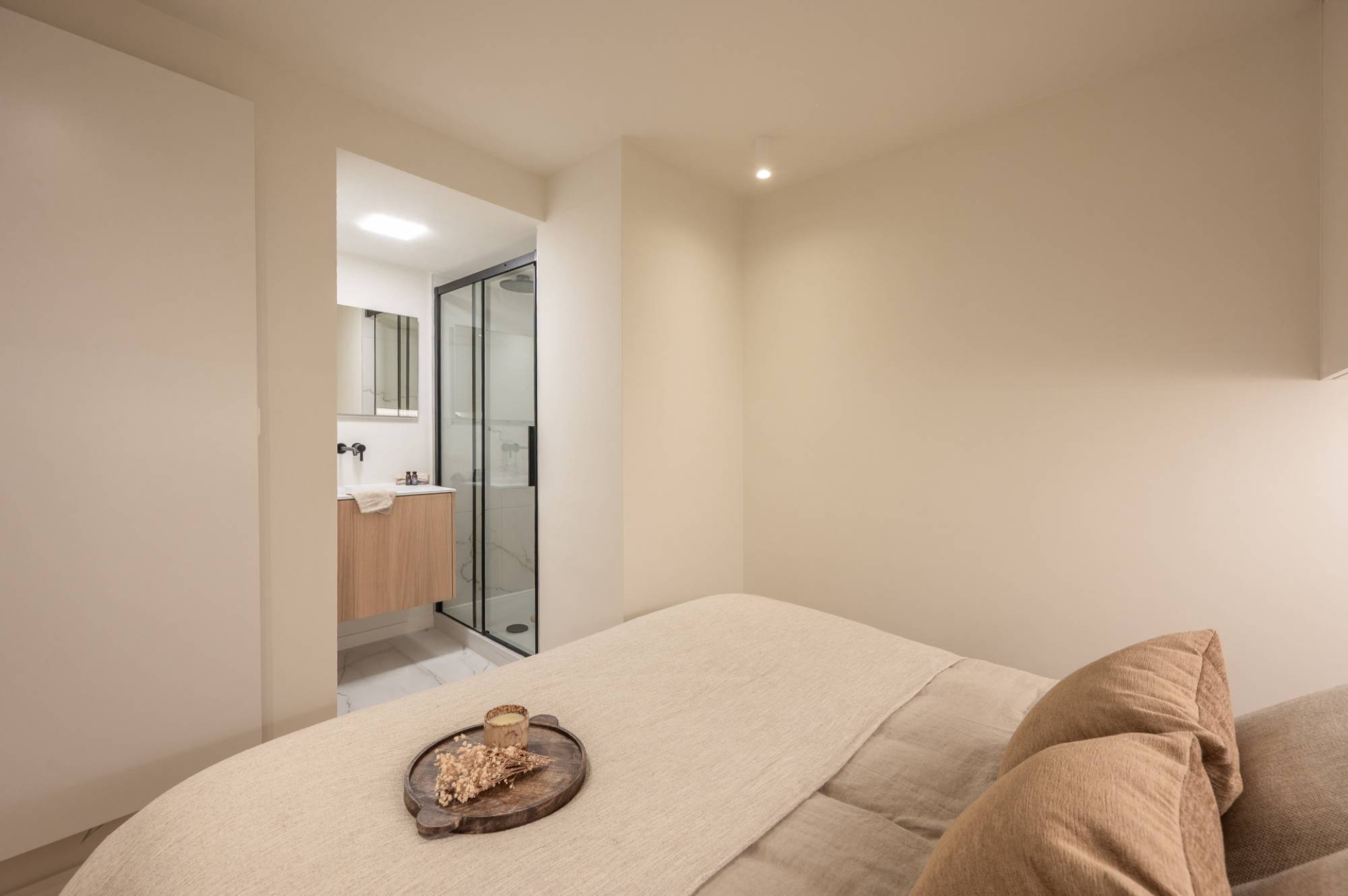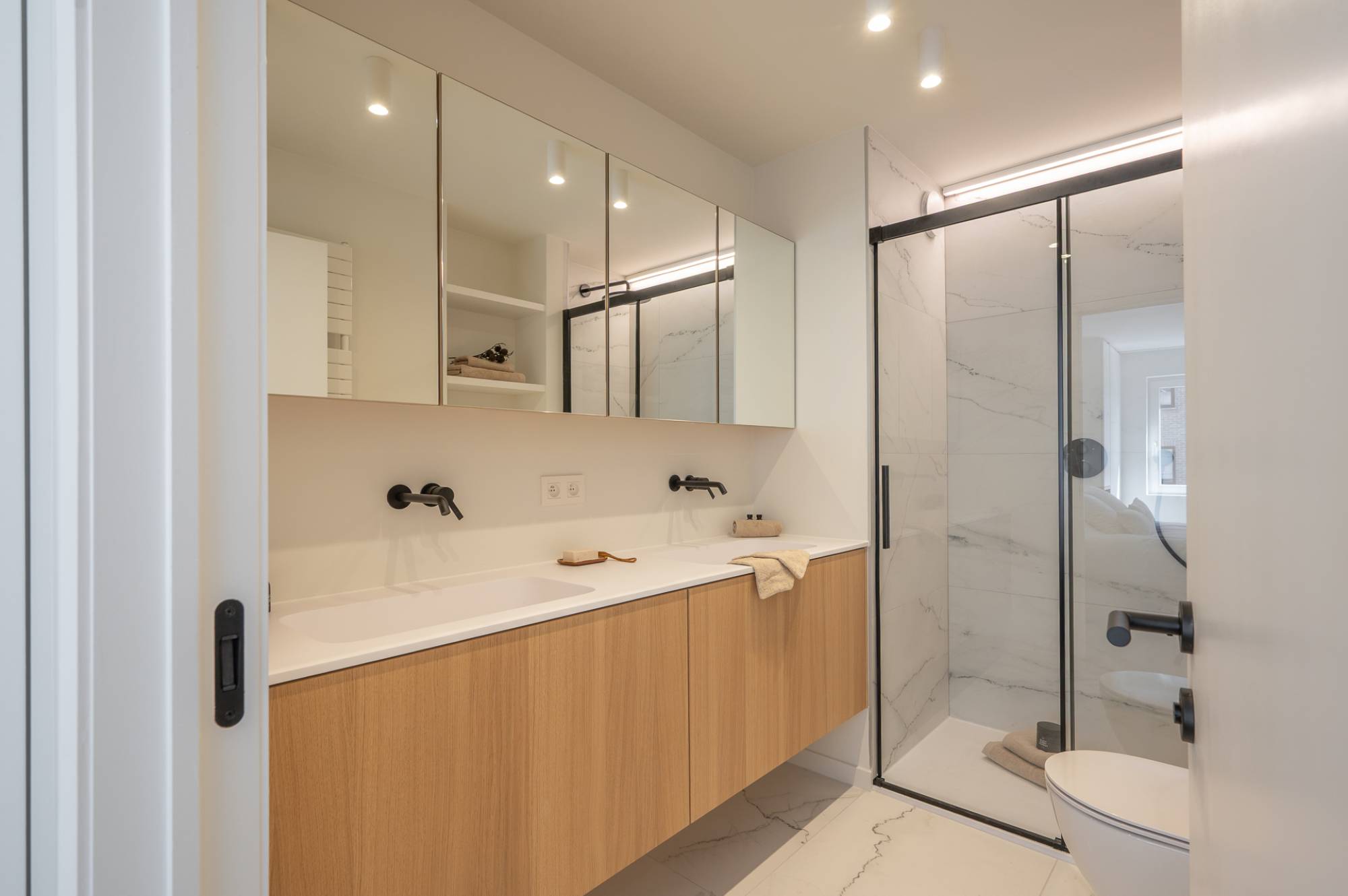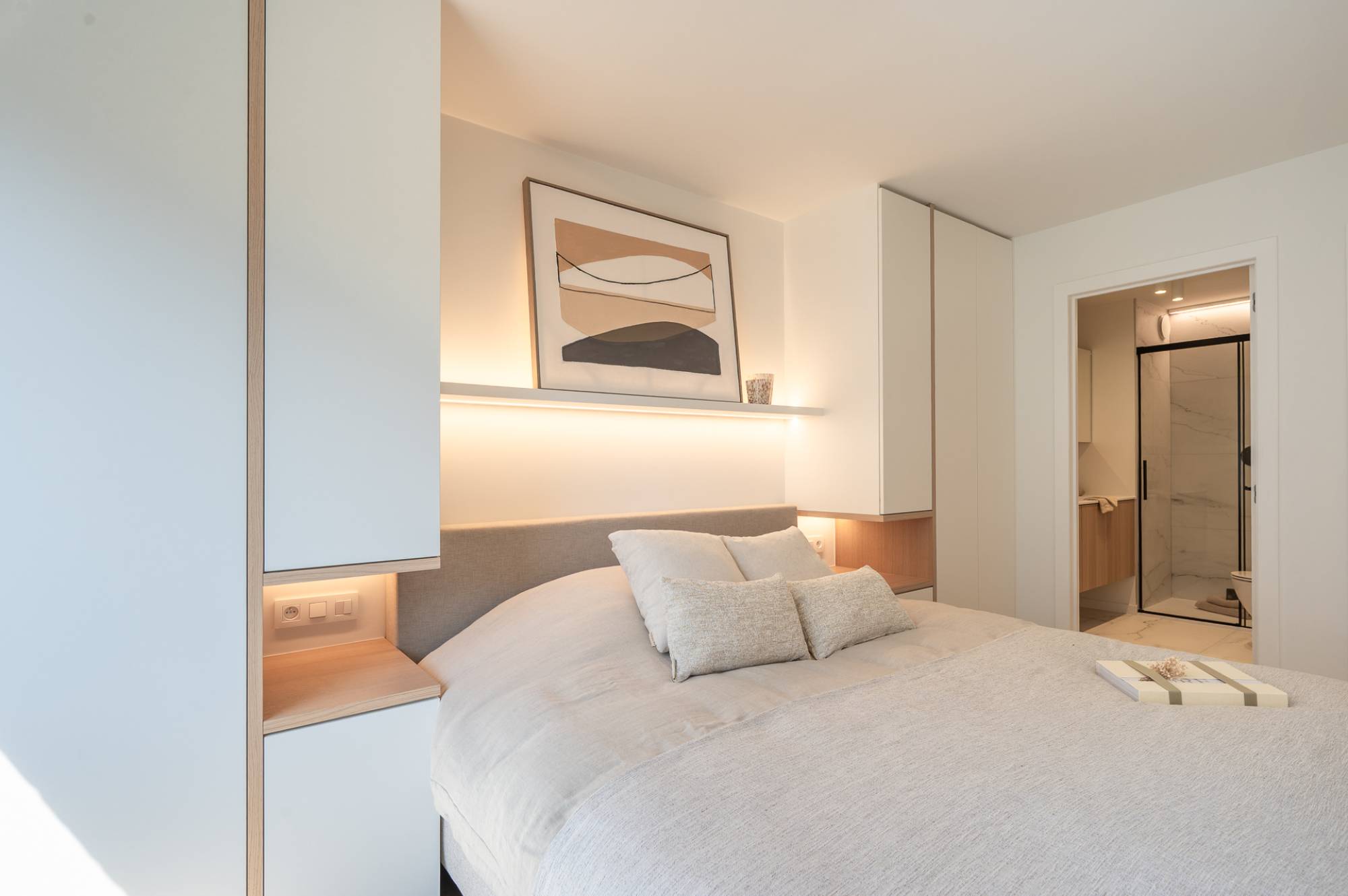 Het slaapgedeelte omvat 3 ruime slaapkamers, elk geschikt voor een dubbel bed. Elke kamer beschikt over ingemaakte kasten en een eigen douchekamer.