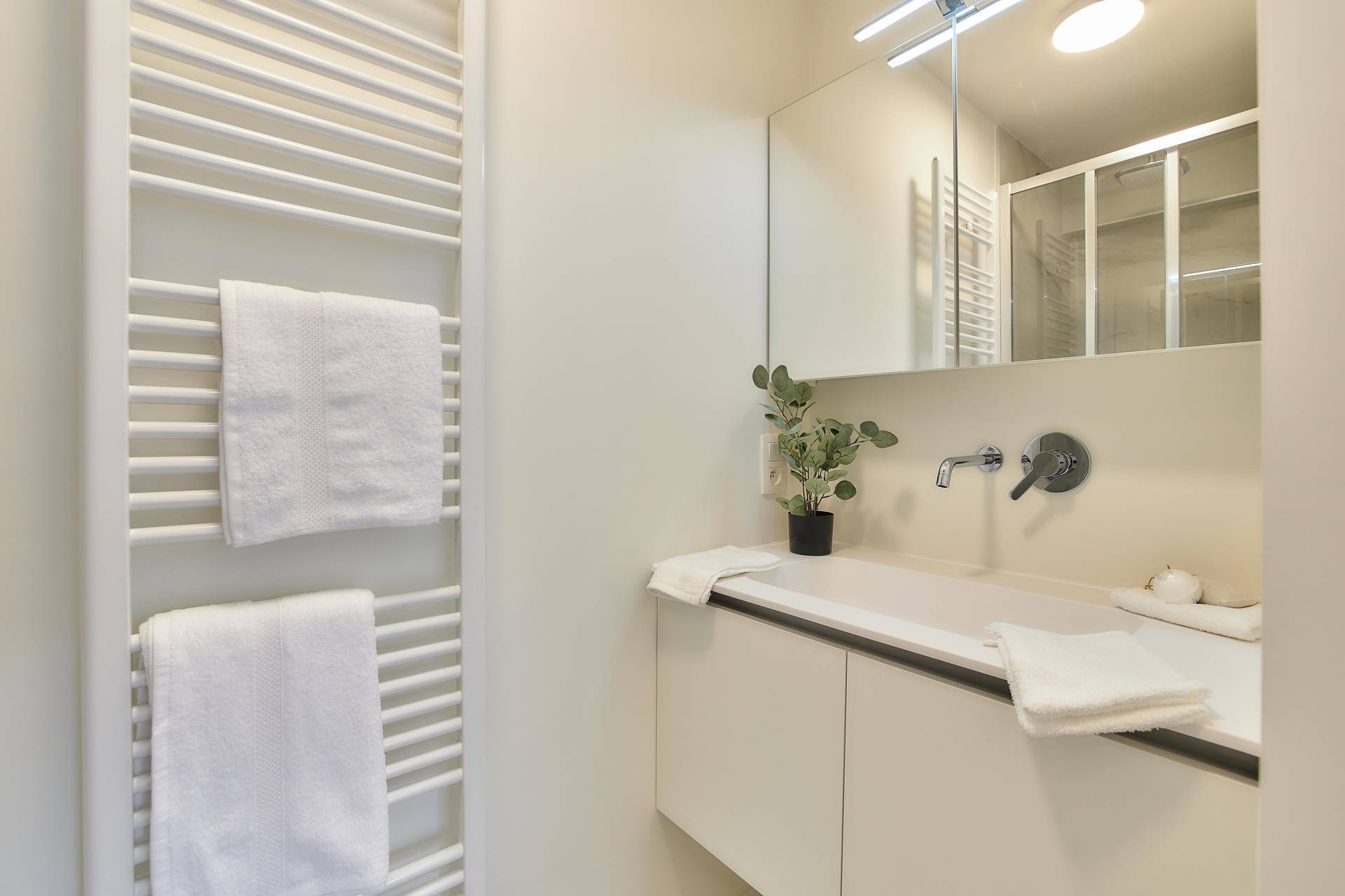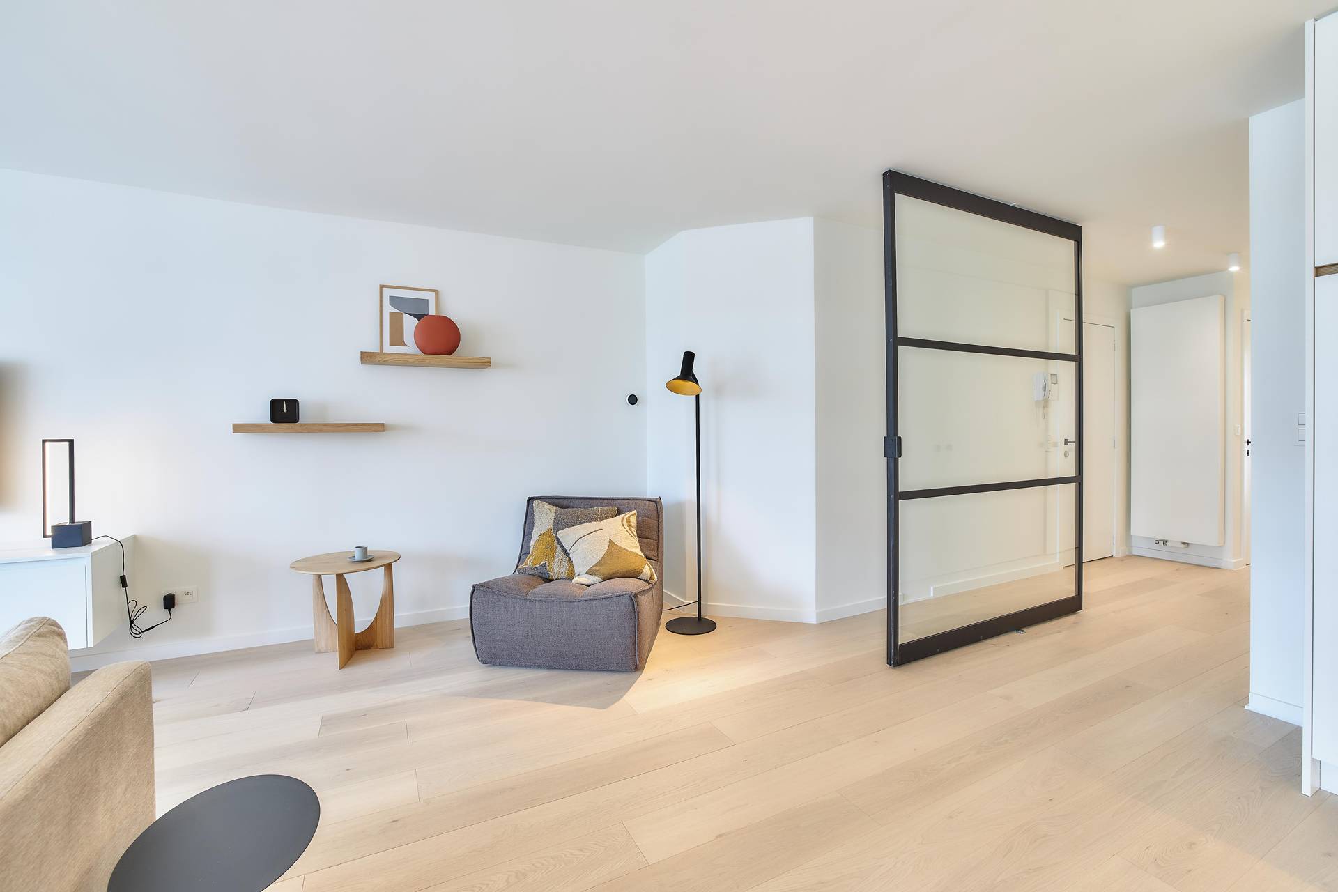 Het appartement wordt verkocht INCLUSIEF meubilair. het appartement werd voorzien van domotica (slimme thermostaat, automatische gordijnen in de woonkamer)